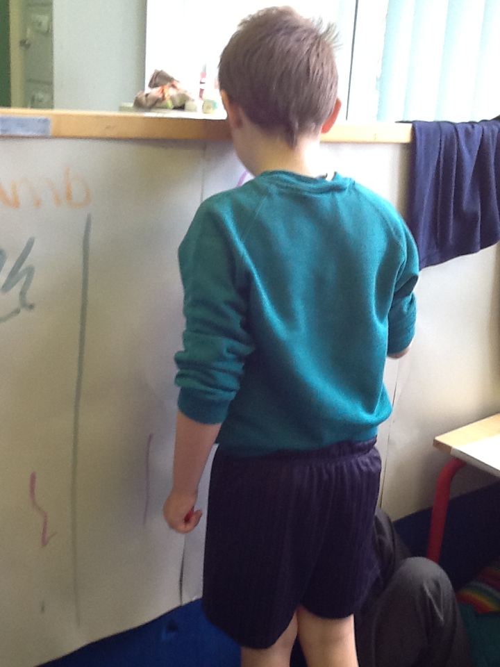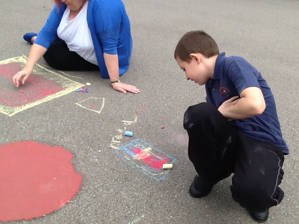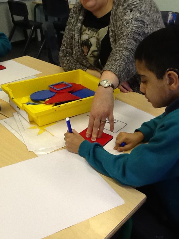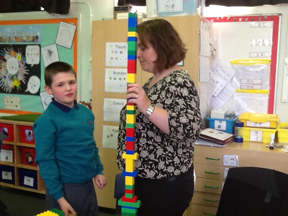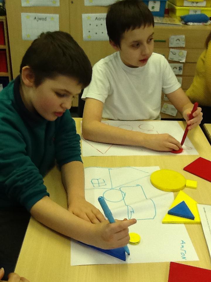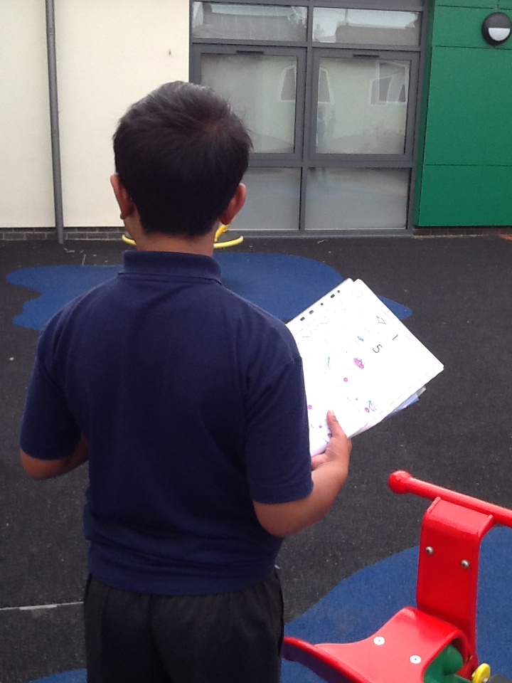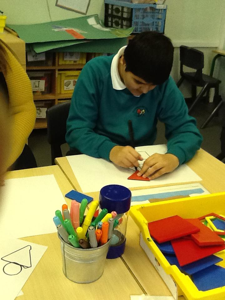 In maths we have followed a weekly schedule looking at all the areas of mathematics. The class have particularly enjoyed it when we have taken maths outside. We have counted items outside. We used the iPad and looked for shapes outside and even measured things outside comparing them to see if they are taller or shorter than a ruler.