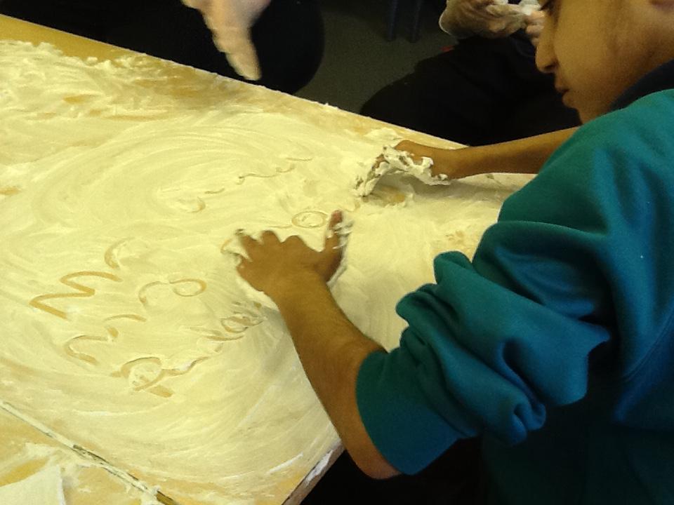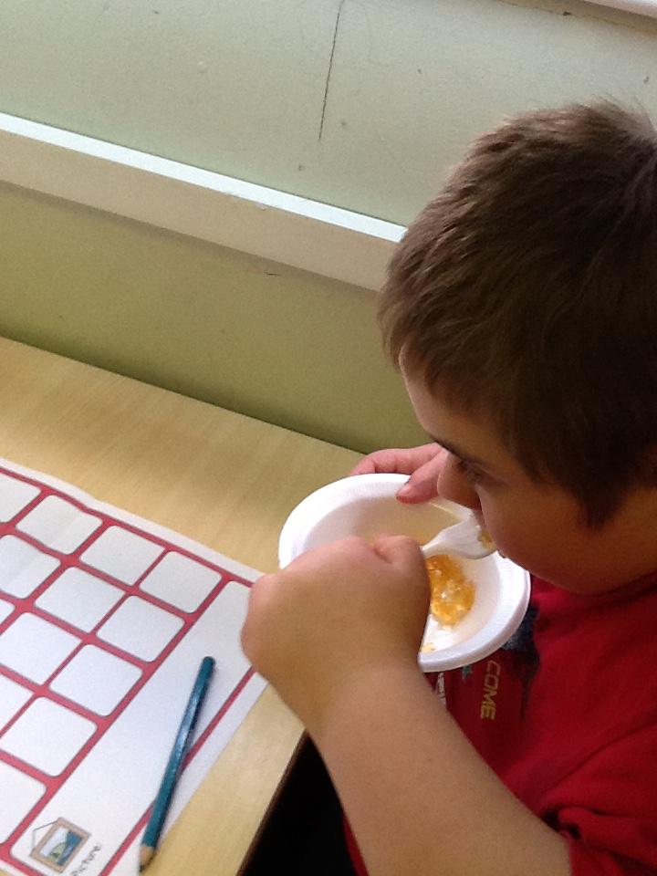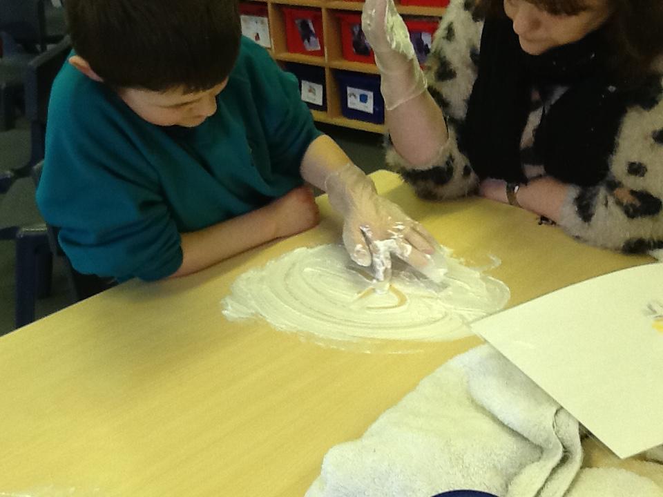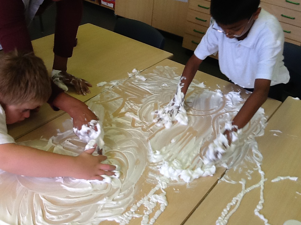 In literacy we have looked at three books: The Giant Jam Sandwich, Funny Bones, and I will not ever NEVER eat a tomato. We made bread and turned it into jam sandwiches, we wrote instructions and we went outside to draw massive giant jam sandwiches to help our gross motor skills. We have written book reviews and even tasted tomatoes and thought of words to describe them.