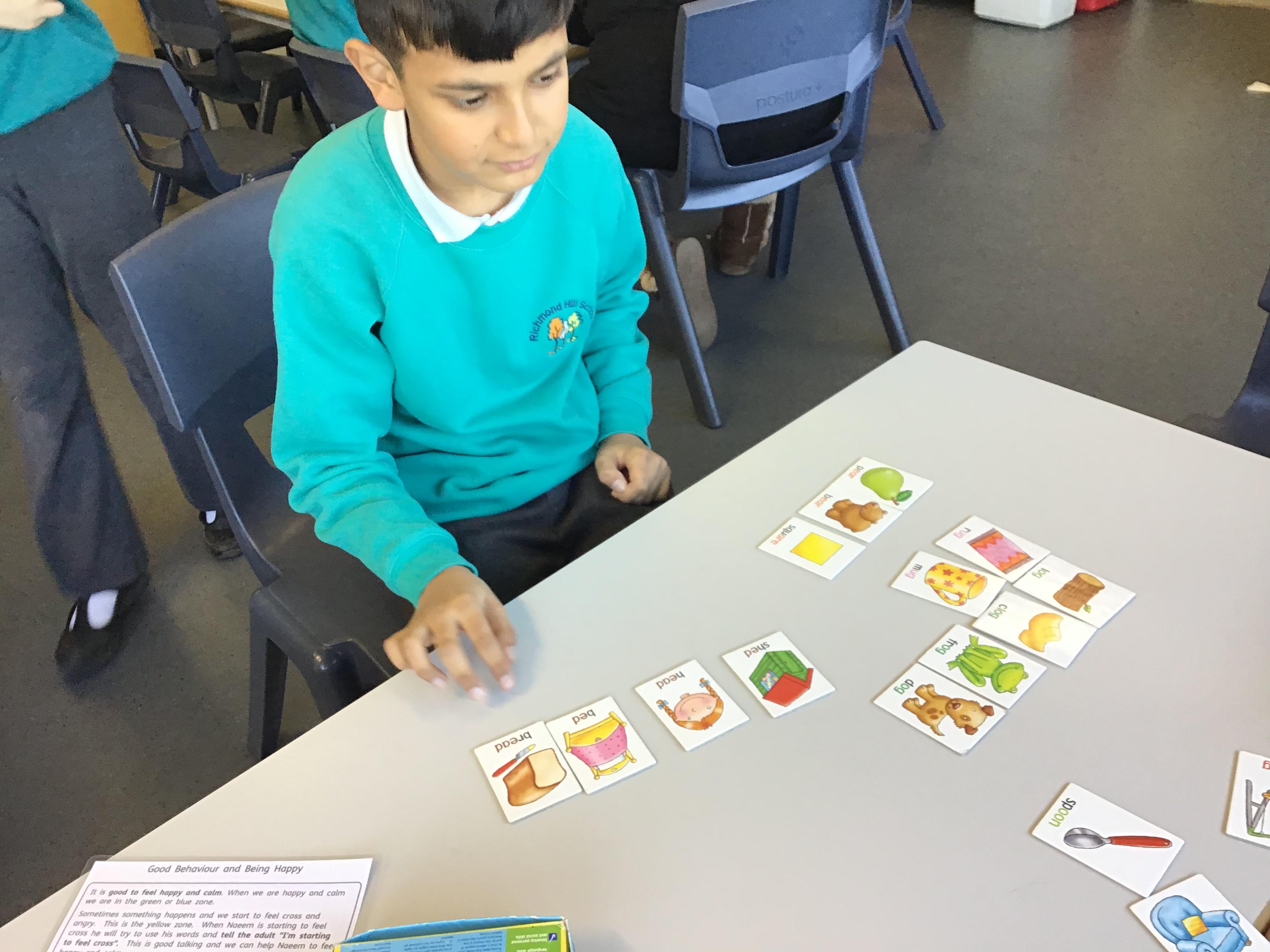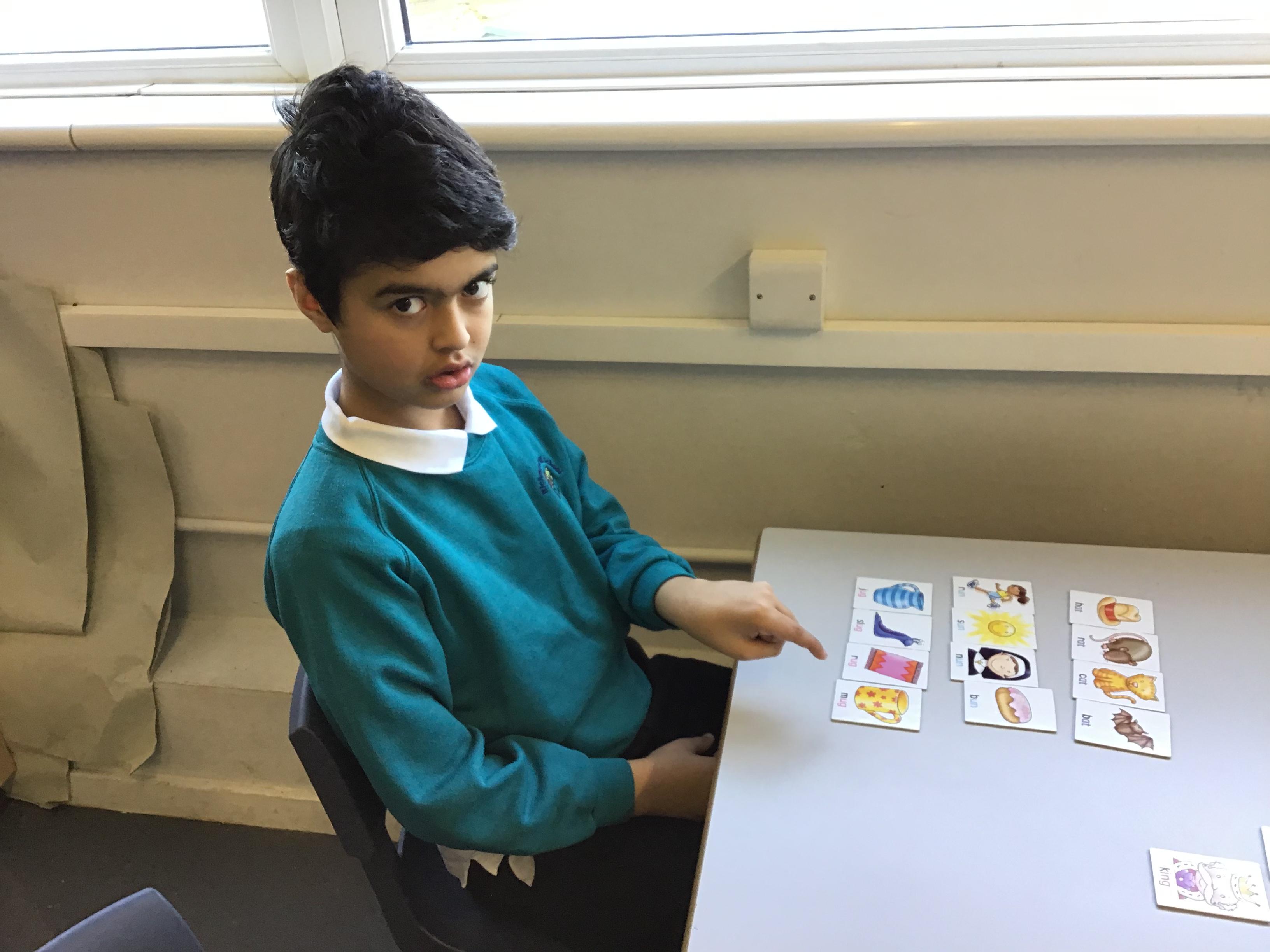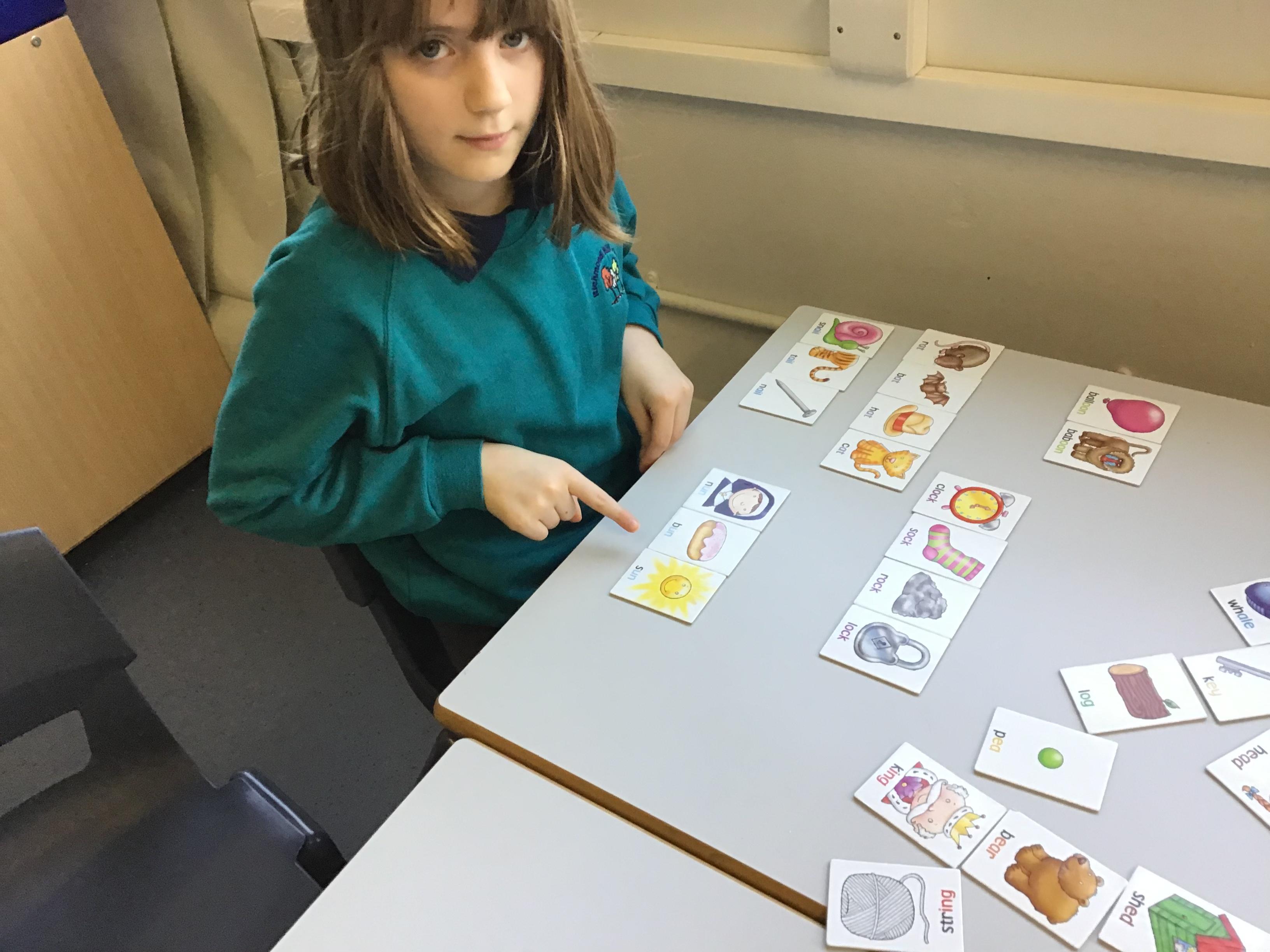 The children have been developing their understanding of rhyme. They listened carefully and looked for images of other things that rhymed with a given word.
