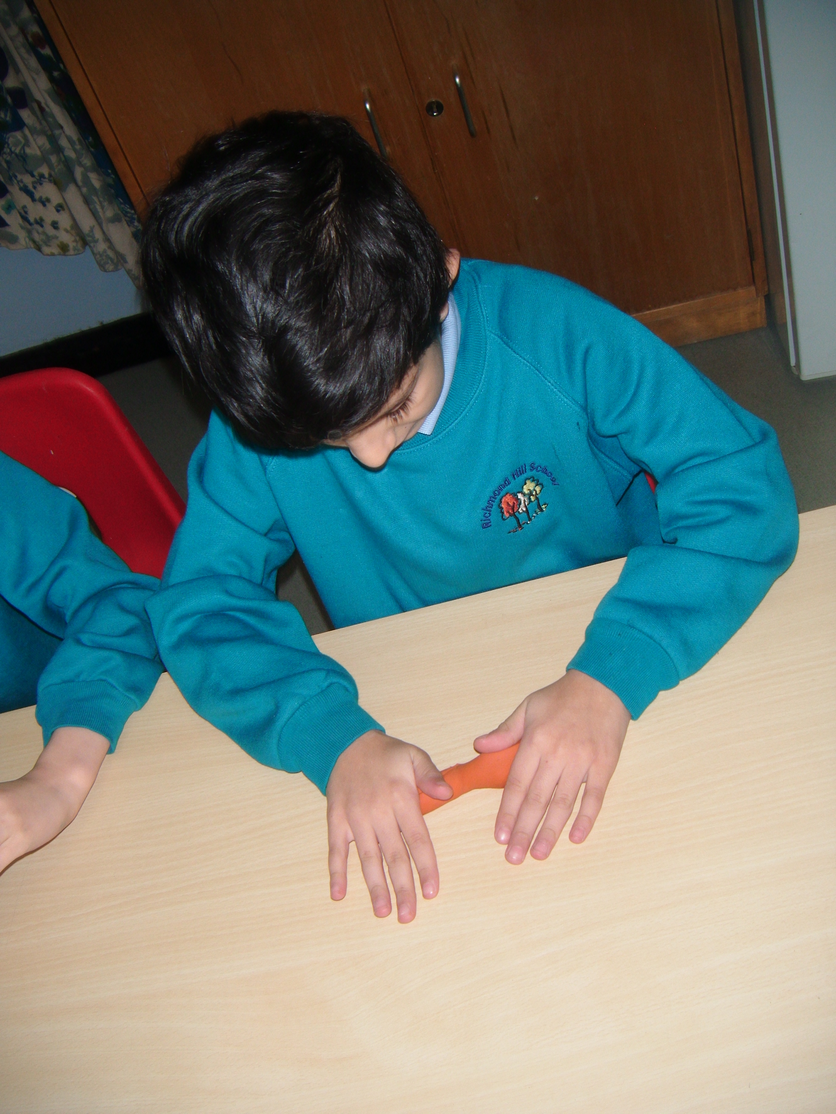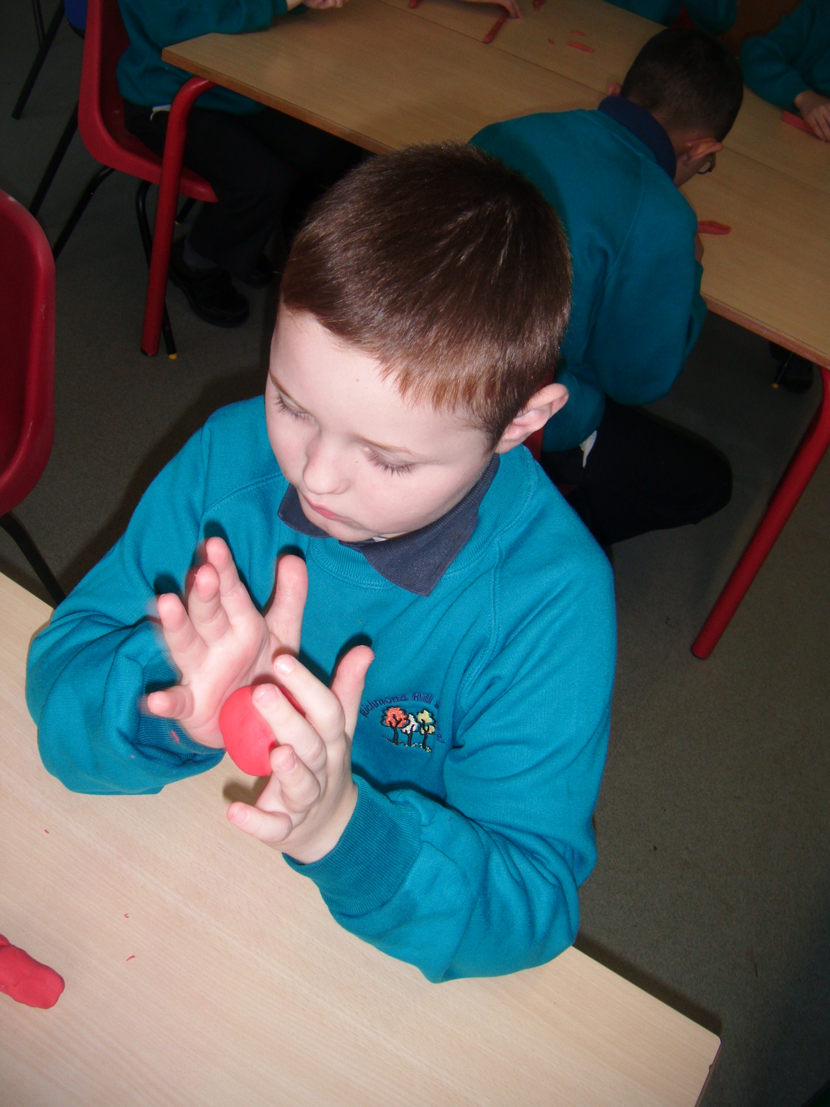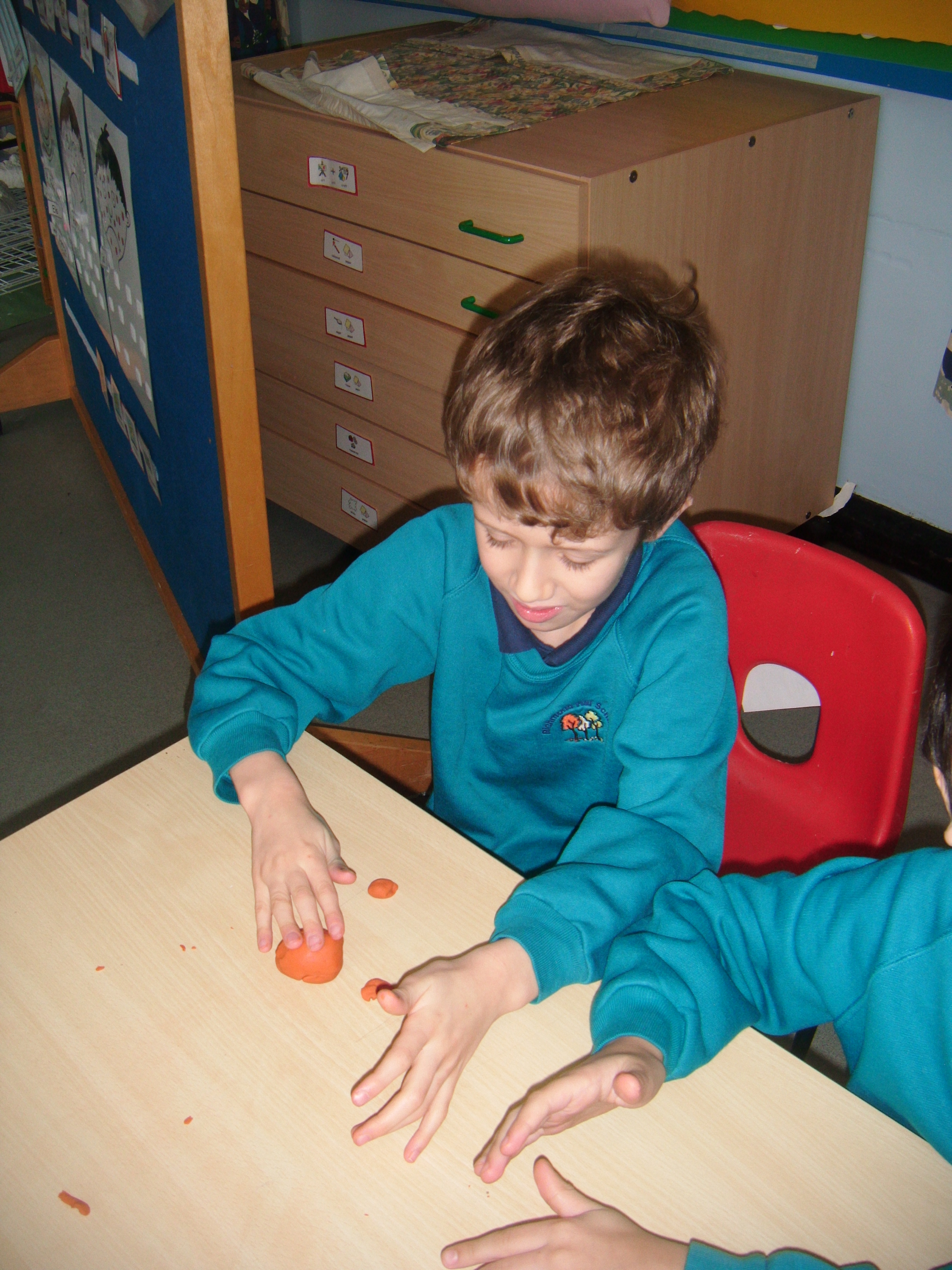 Pupils took turns wearing a range of masks, engaging in role play and looking at themselves in the mirror. They used Mud-Roc to make and decorate their own character masks.
