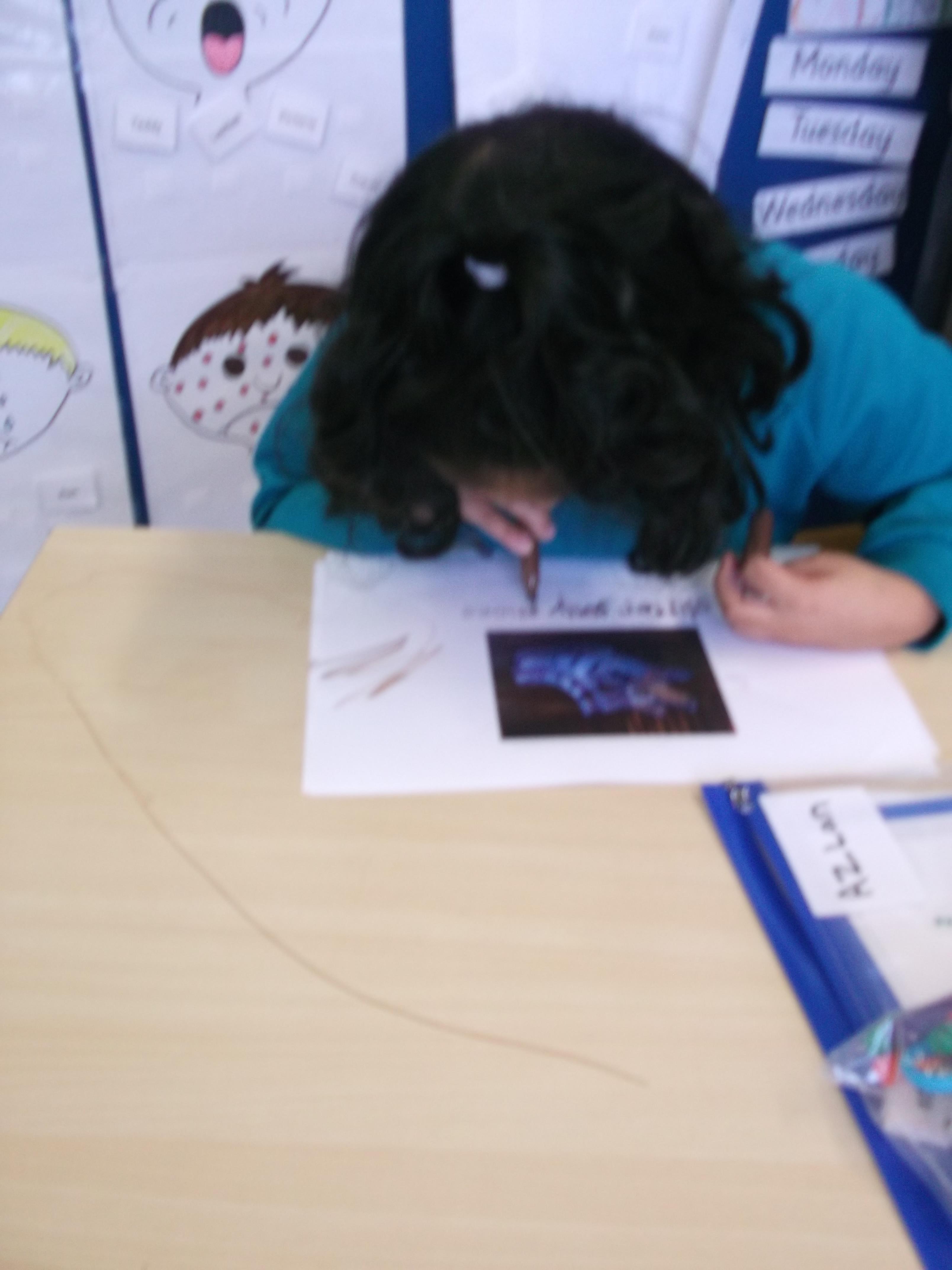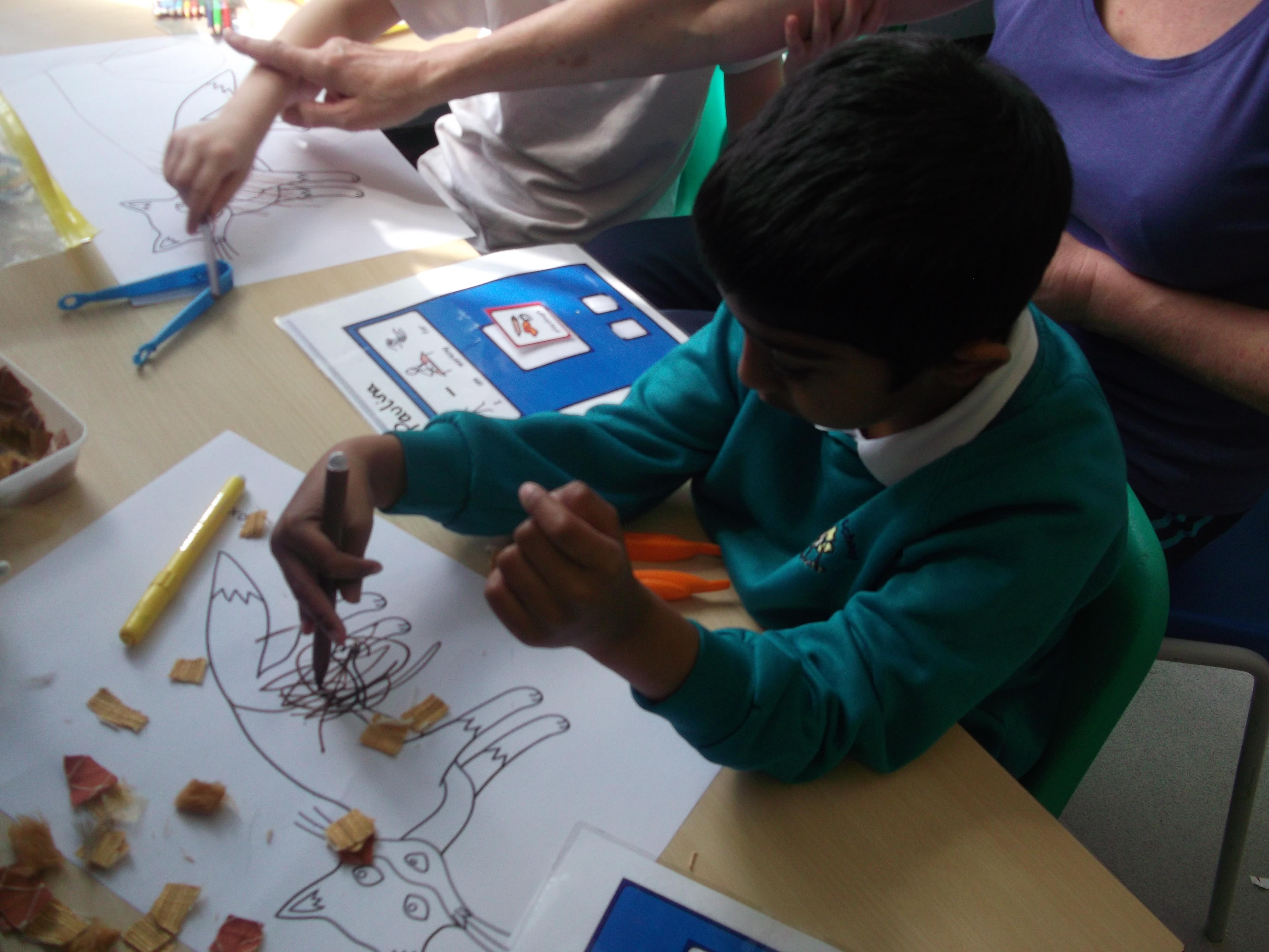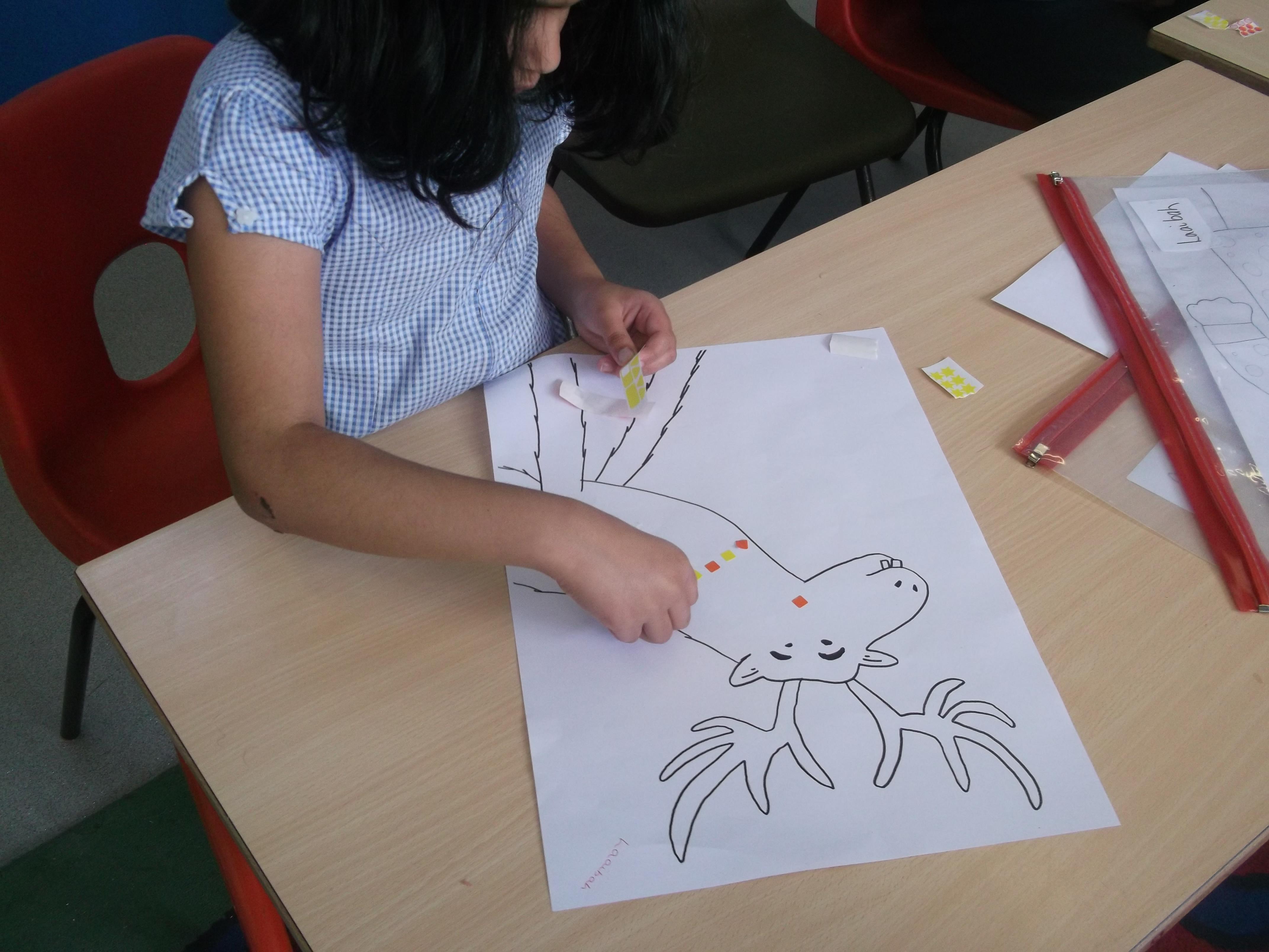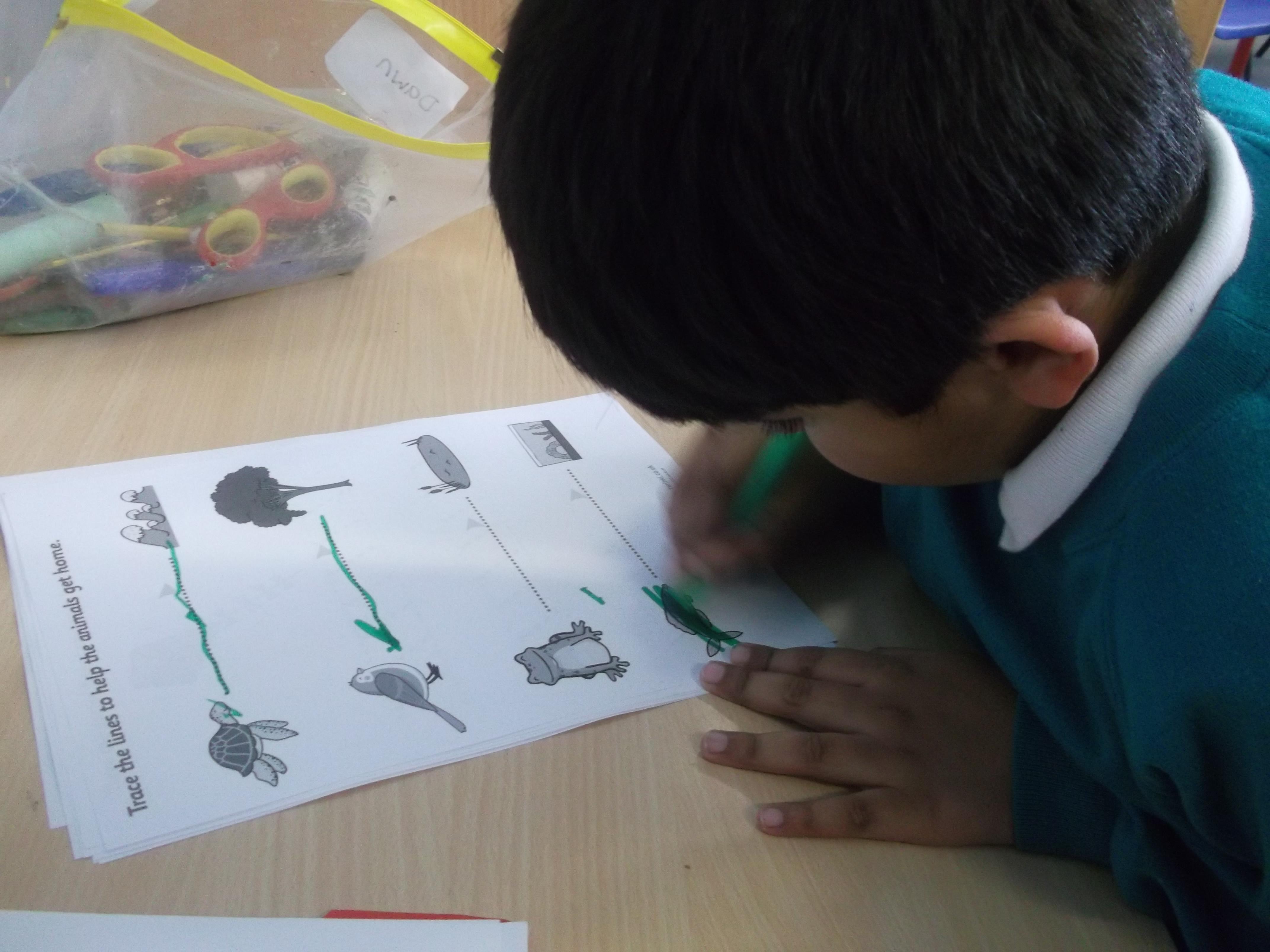 using the pictures, actions and plot as a stimulus. Pupils will move on to developing their awareness of letters and sounds. During writing lessons pupils will engage with patterns and shape formations from the story. In more formal sessions pupils will develop their skills at over writing, copy writing and early letter formation skills.