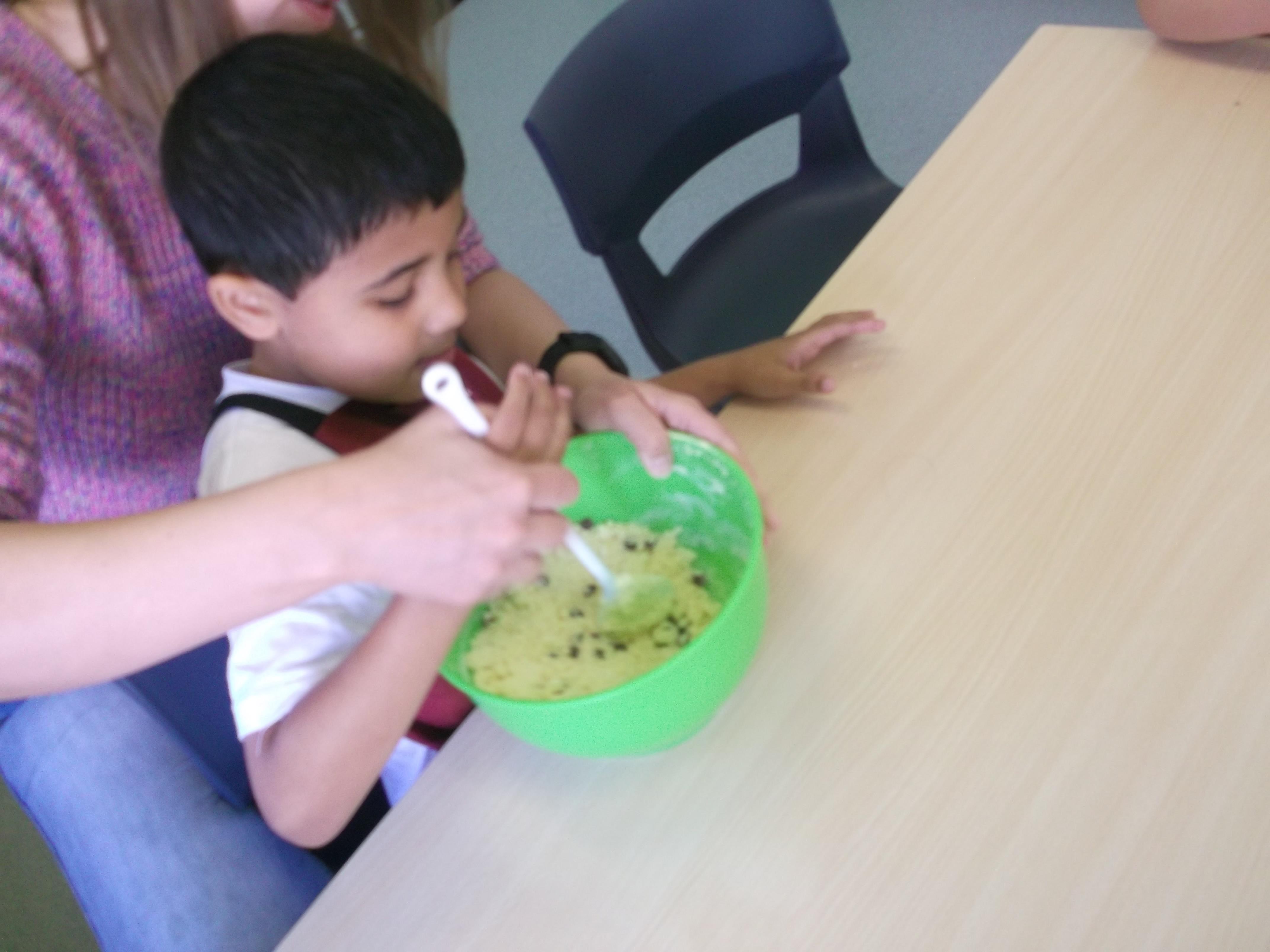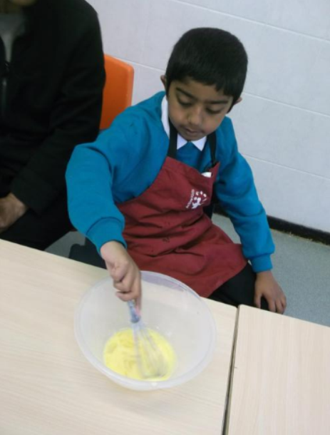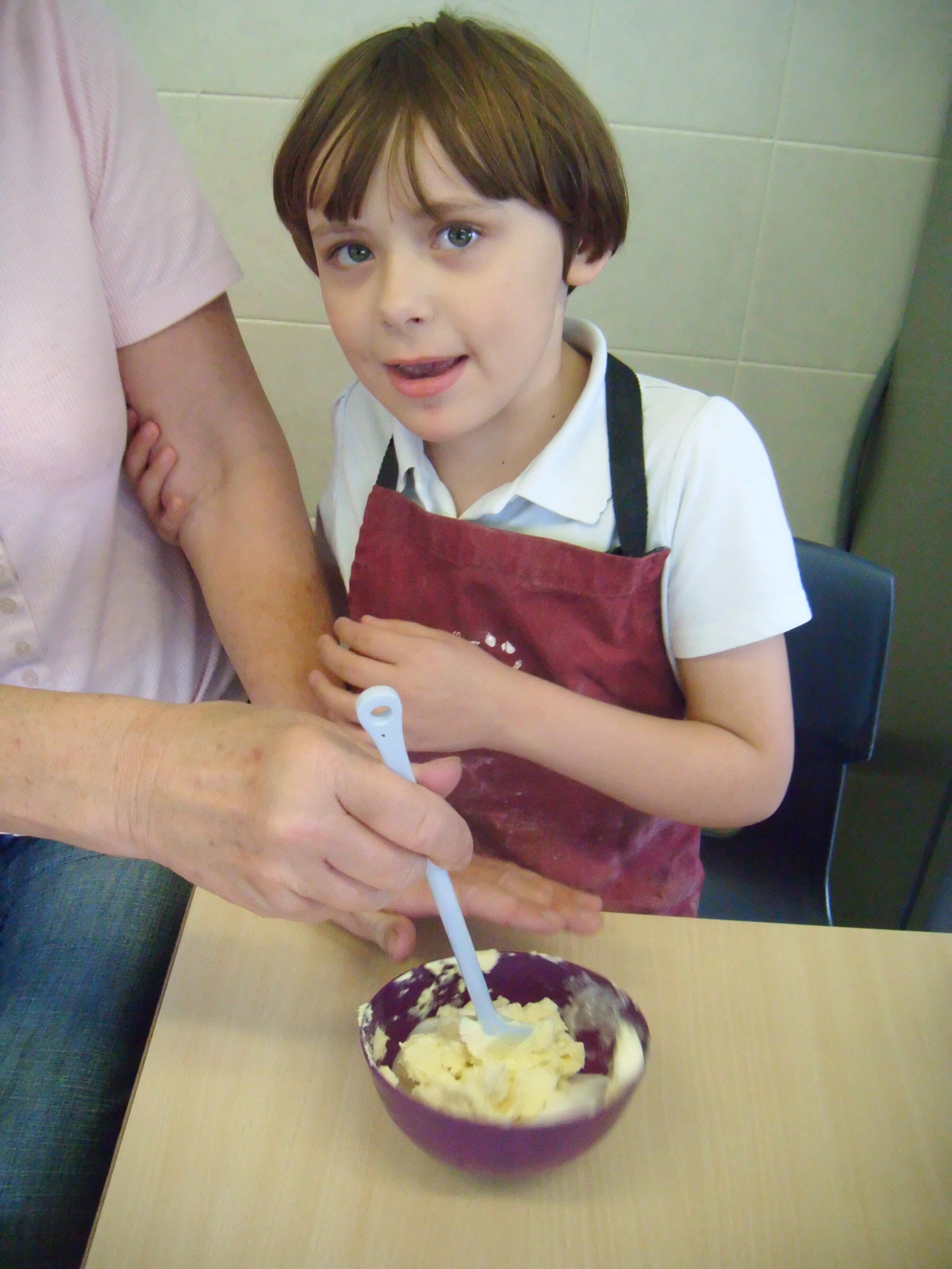 In Cookery pupils will be making cupcakes. Pupils will have opportunities to follow visually demonstrated instructions with a partner to incorporate turn taking. Pupils will develop their cooking skills as they pour, mix, spoon and twist off lids. Natural links with number, geometry and speaking and listening skills will occur during the making of sponge cupcakes.