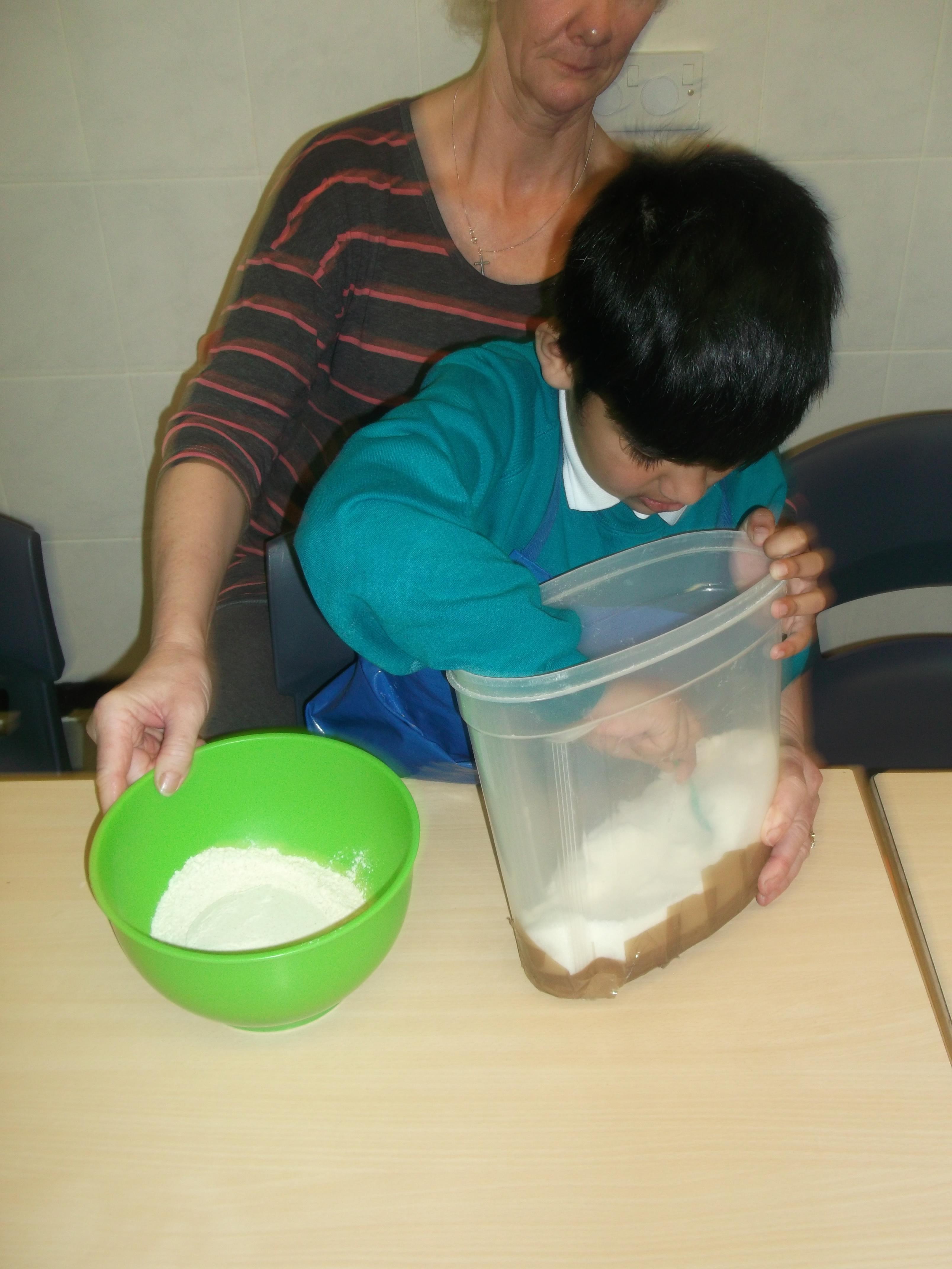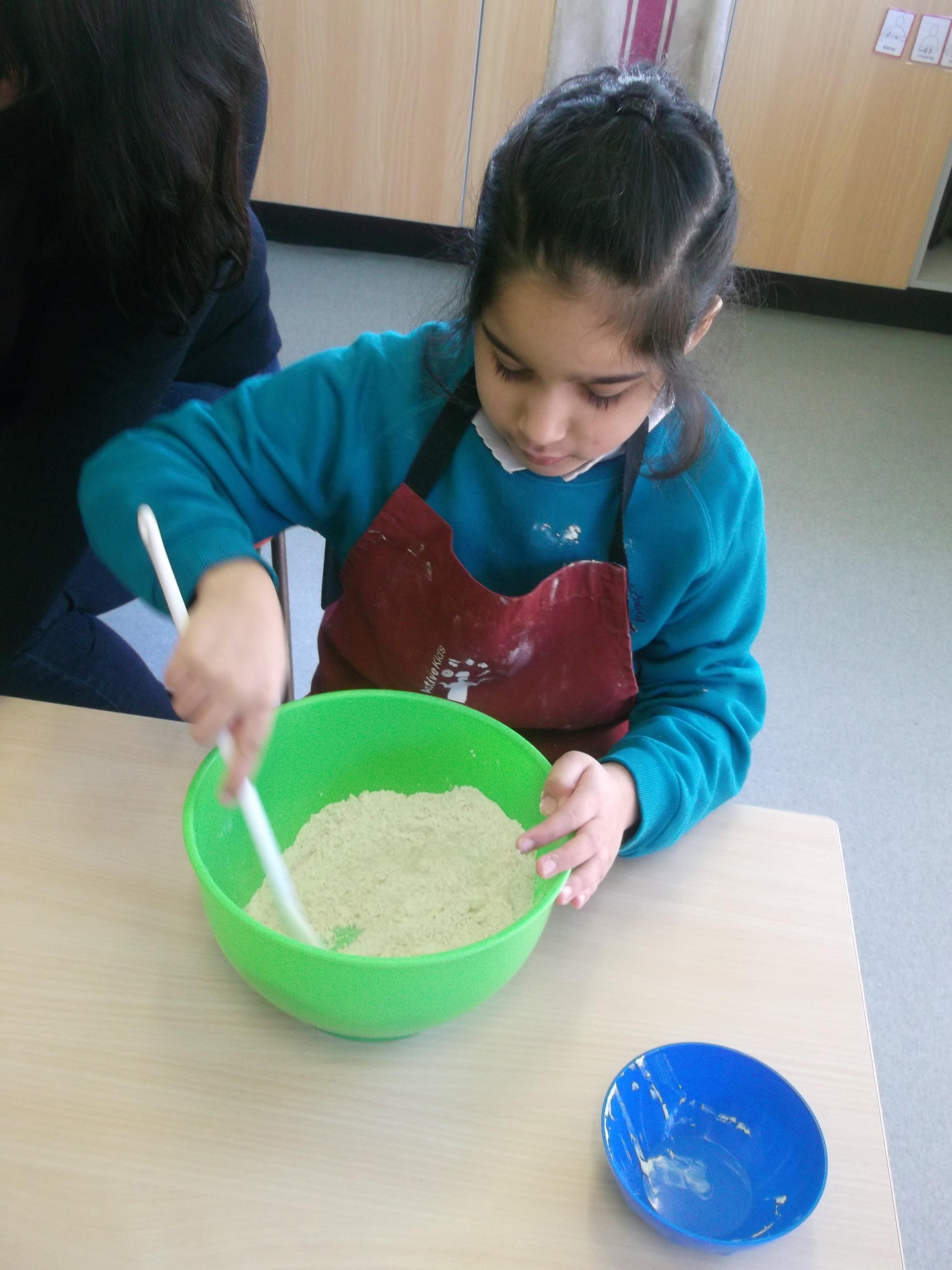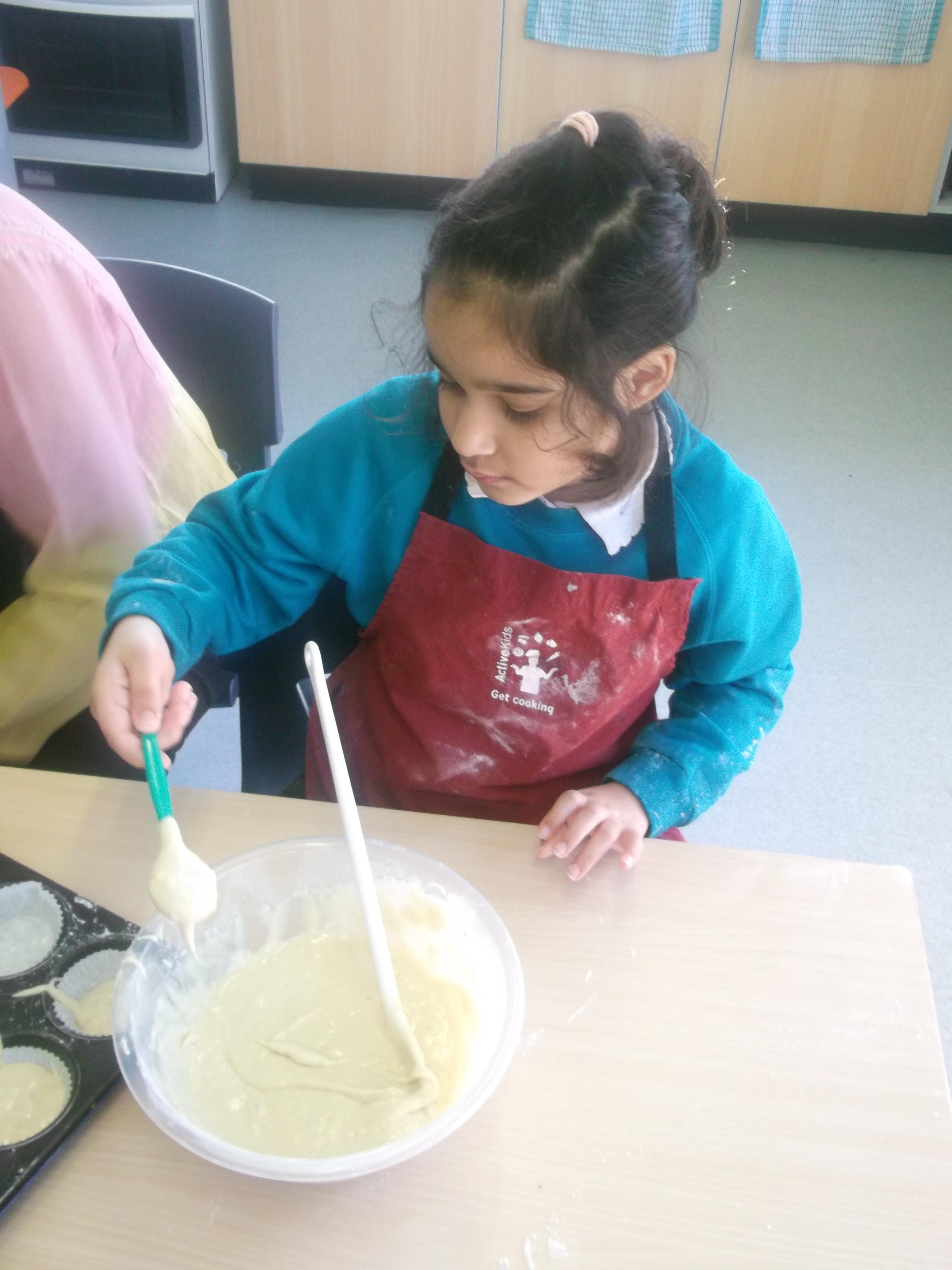 In Cookery pupils will be making cupcakes. Pupils will have opportunities to follow visually demonstrated instructions with a partner to incorporate turn taking. Pupils will develop their cooking skills as they pour, mix, spoon and twist off lids. Natural links with number, geometry and speaking and listening skills will occur during the making of sponge cupcakes.
