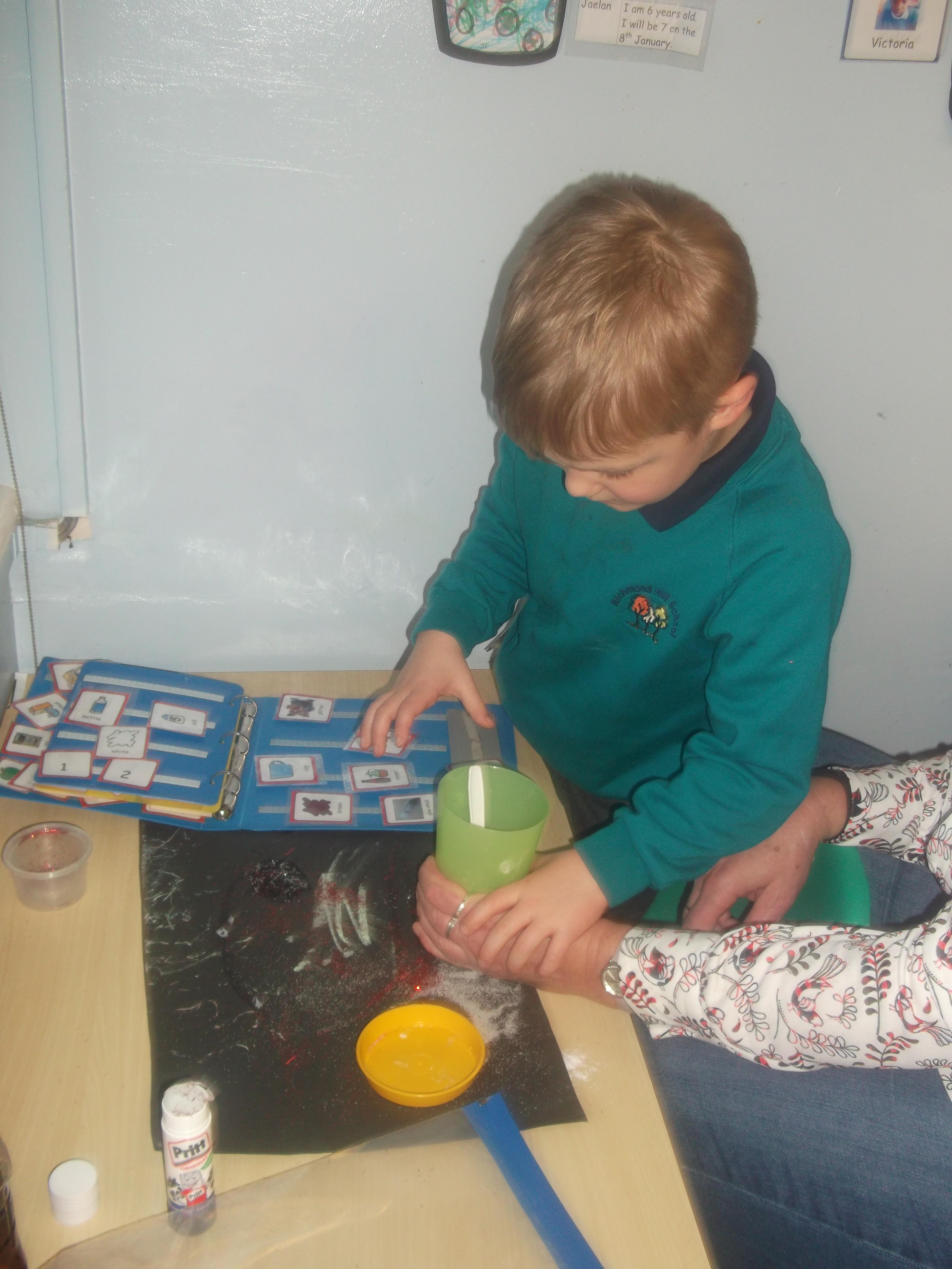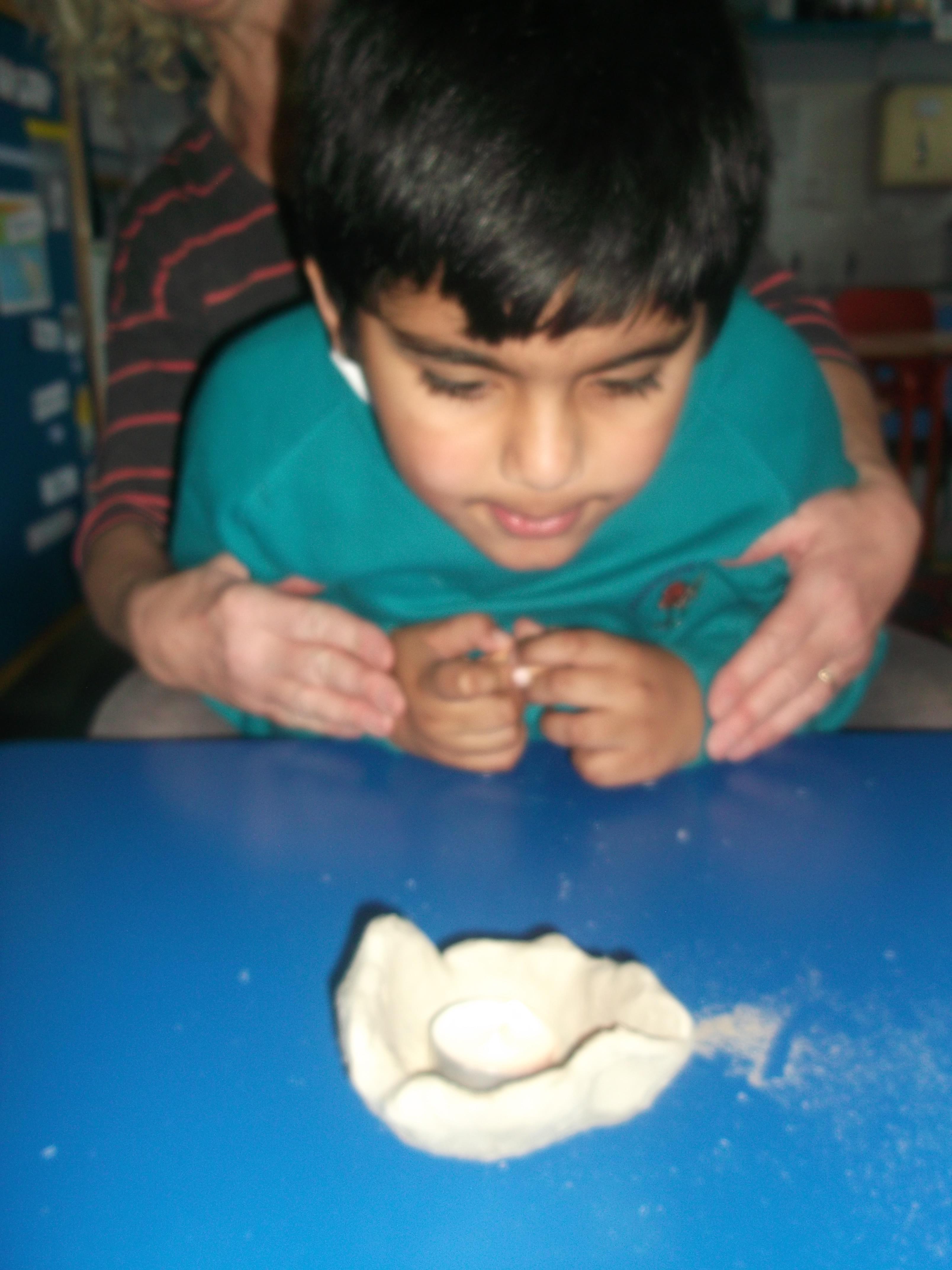During Autumn Term Two 2015 the overarching Topic is ‘Whizz Bang’. There will be many opportunities to develop skills of scientific enquiry and understanding of physical processes. Bonfire Night and Guy Fawke’s will provide opportunities to explore safety around fire and candles. Pupils will make divas, mendhi candles and explore patterns in conjunction with the Hindu story of Diwali. Pupils will make their own fireworks using a range of exciting resources e.g. bicarbonate of soda and vinegar! A multi-sensory approach will be adopted as pupils create and respond to ‘light’ activities i.e. mixing coloured sand, rice and pasta. Opportunities to classify, understand and label using the opposite terms ‘light’ and ‘dark’ will be exploited. Using the equipment in the light sensory room and the overhead projector, pupils will create their own shadows and silhouettes. To mark the Jewish festival of Hanukah, pupils will handle a menorah during the festival of light. Christmas gives rise to the Christmas story and seasonal light and dark art and craft activities.