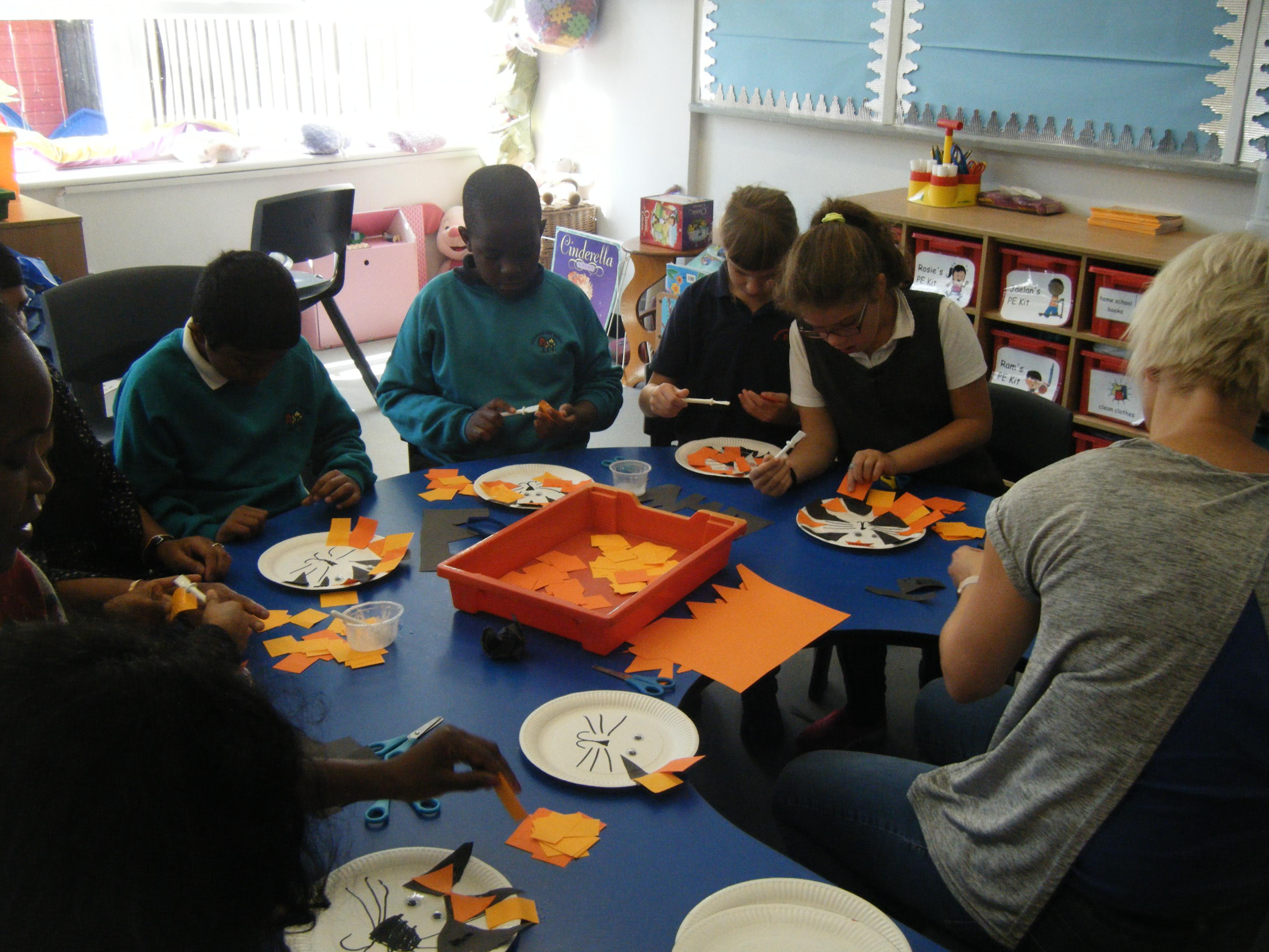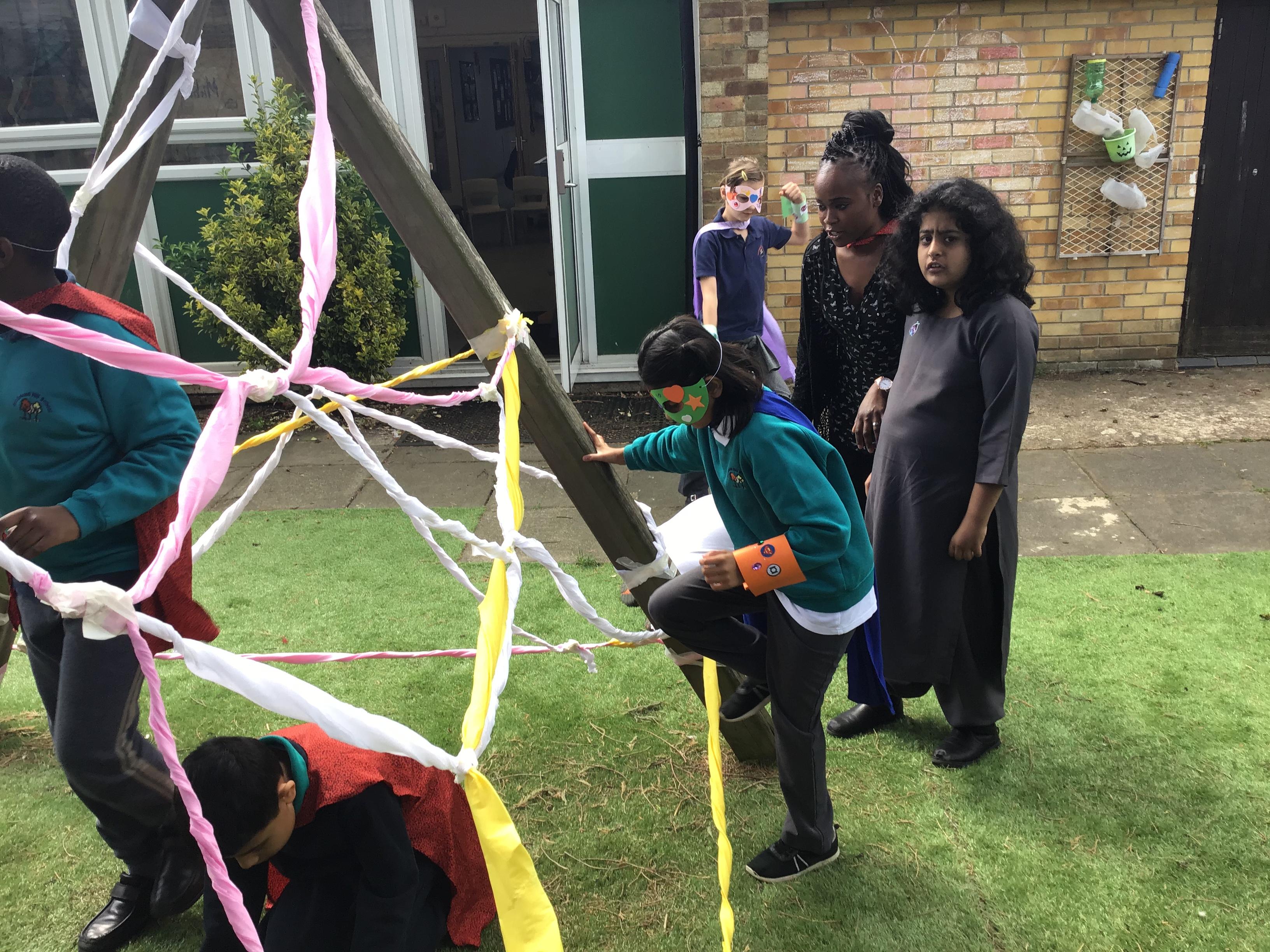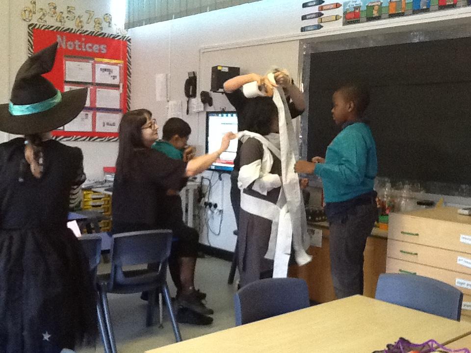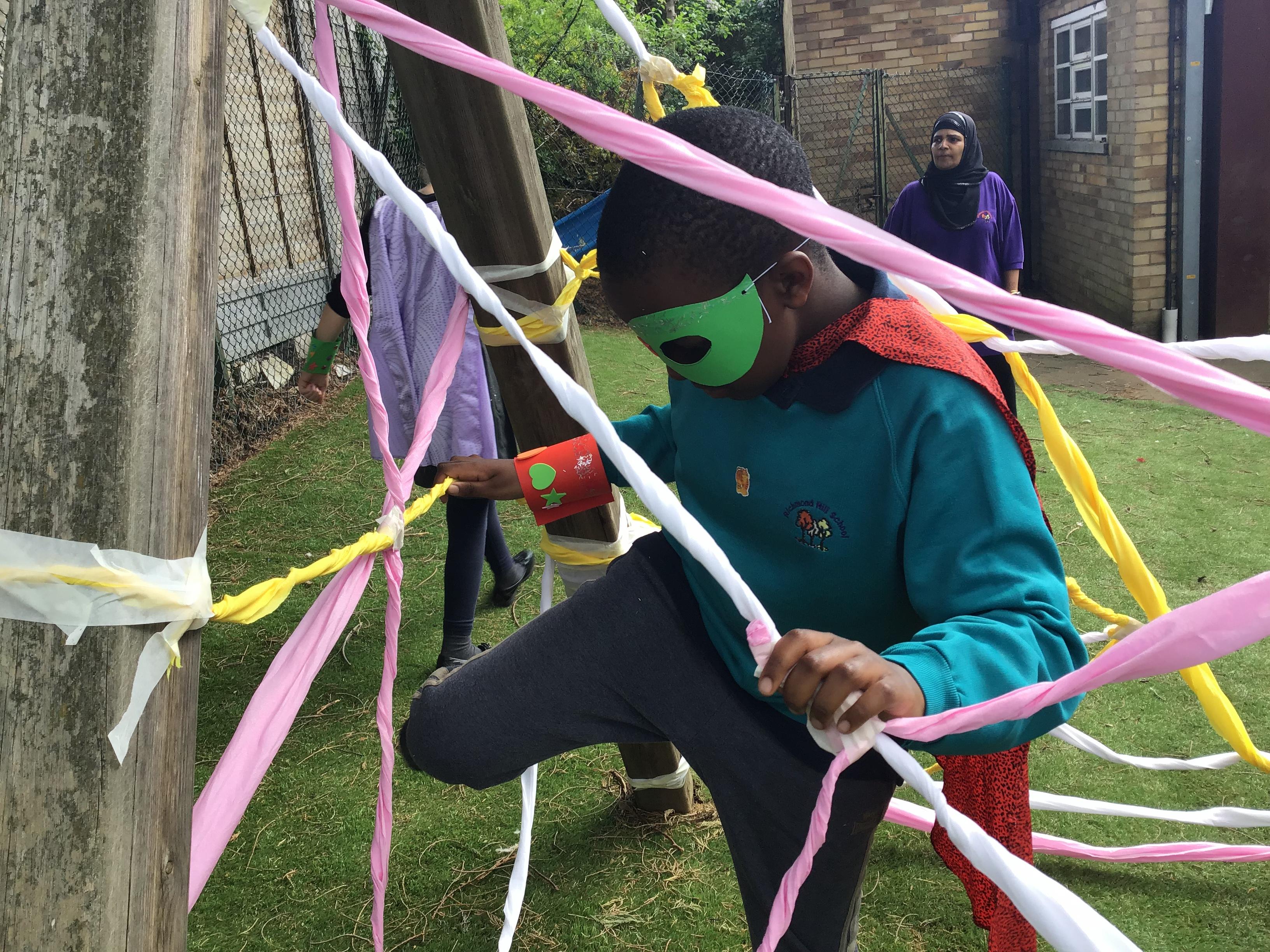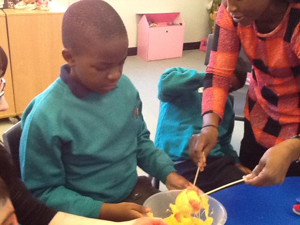 We made Cameras and binoculars and went exploring. We made Mexican burgers in cookery and tiger masks in Topic.
