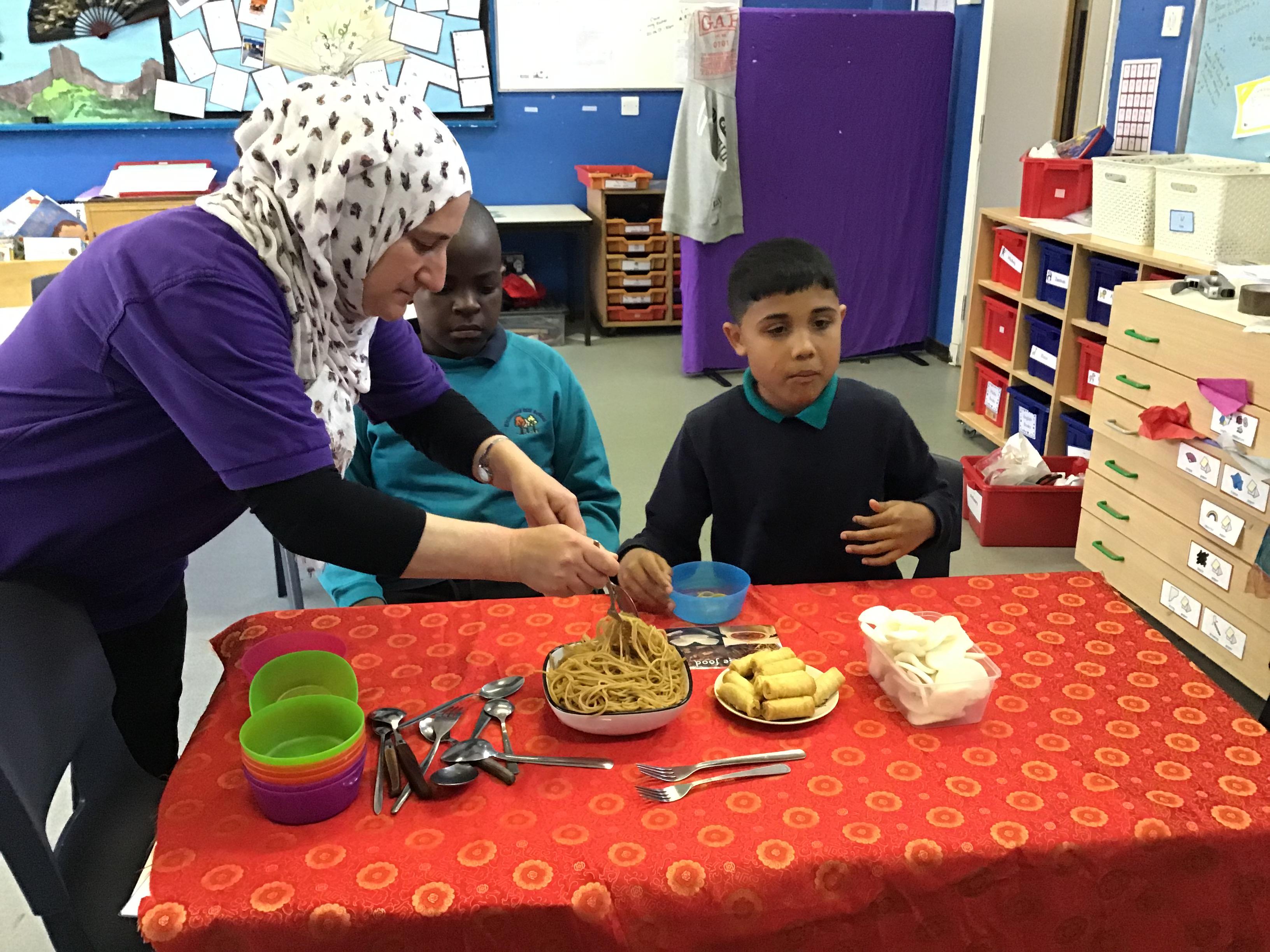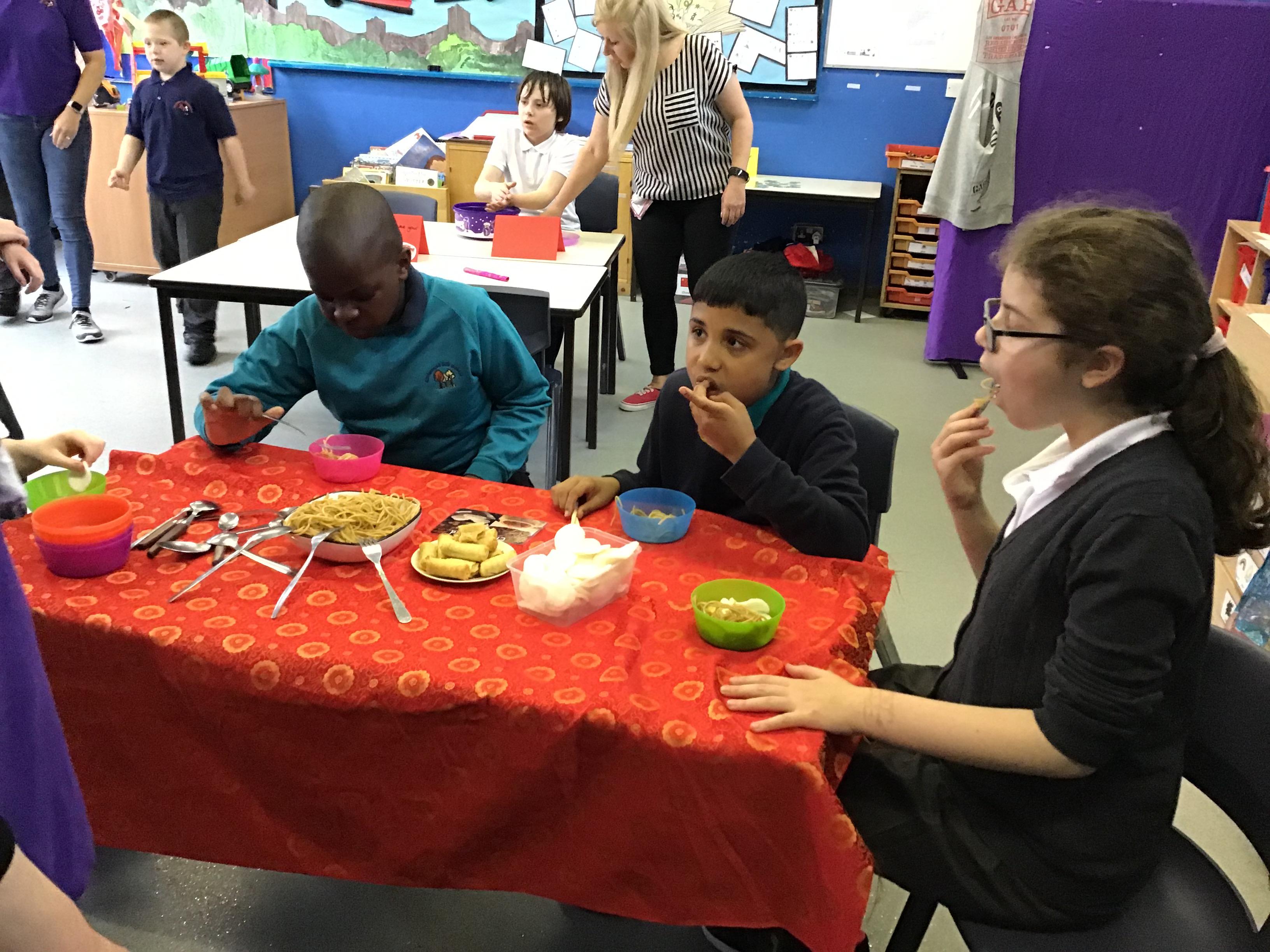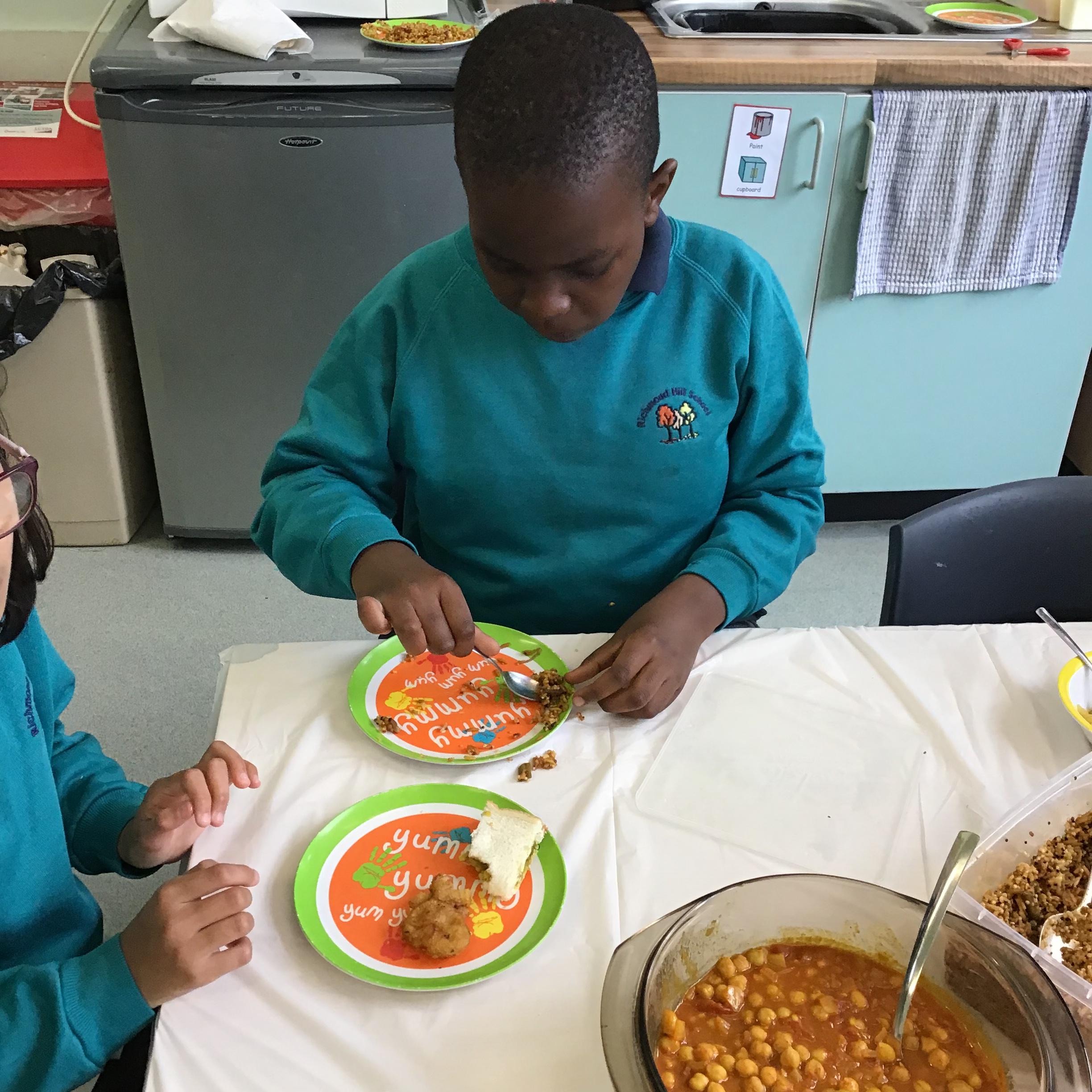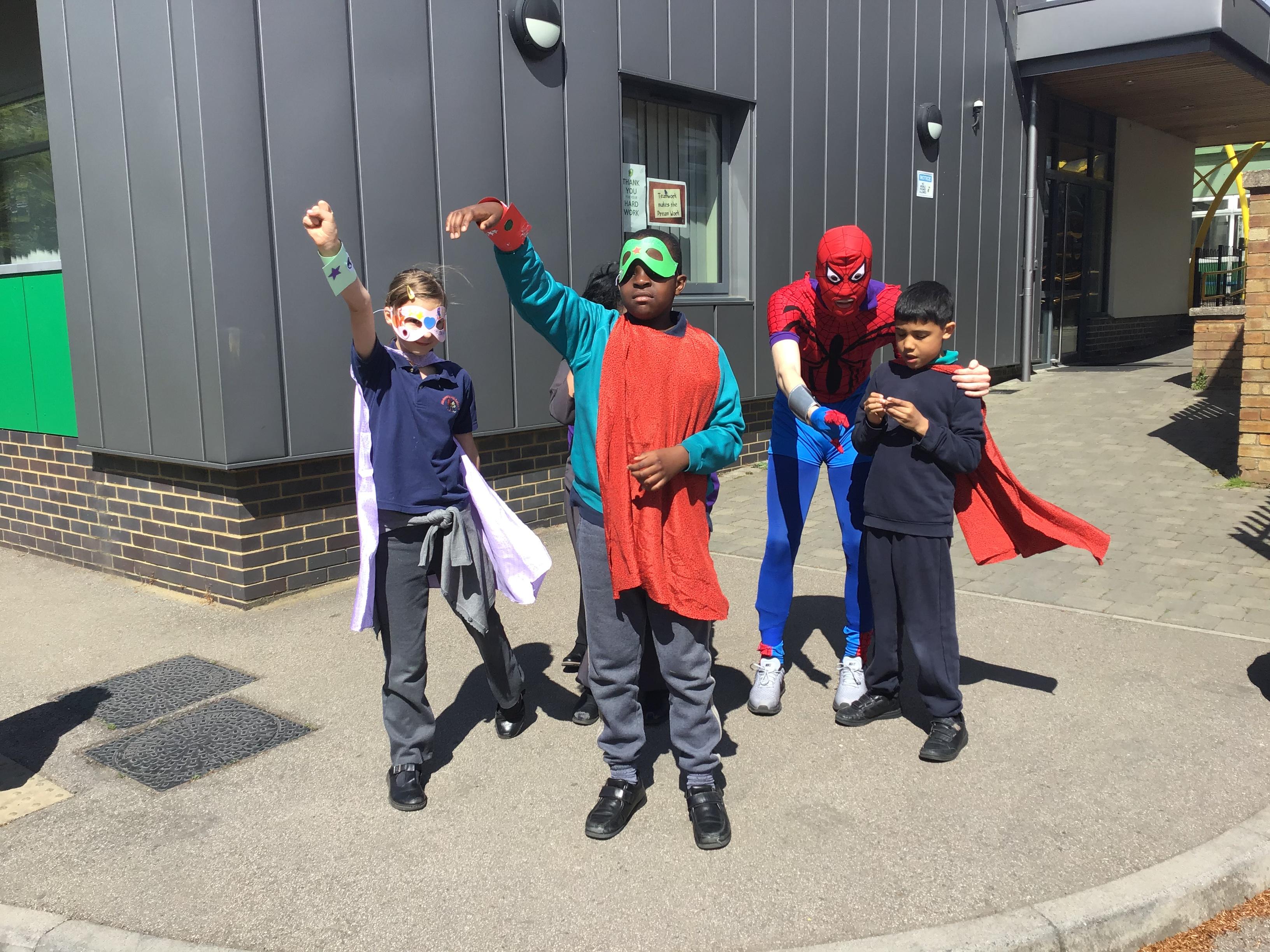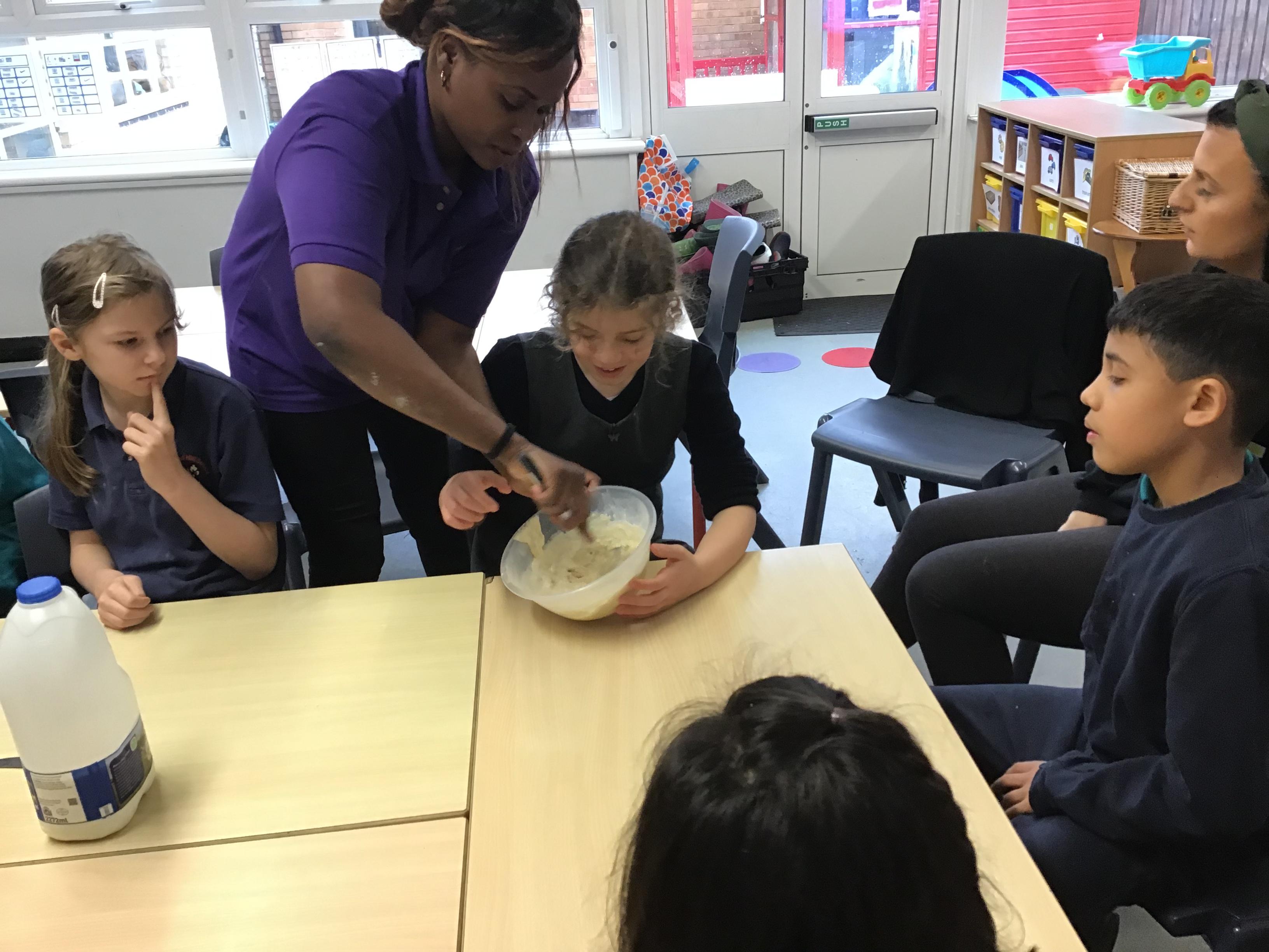 We made Cameras and binoculars and went exploring. We made Mexican burgers in cookery and tiger masks in Topic.