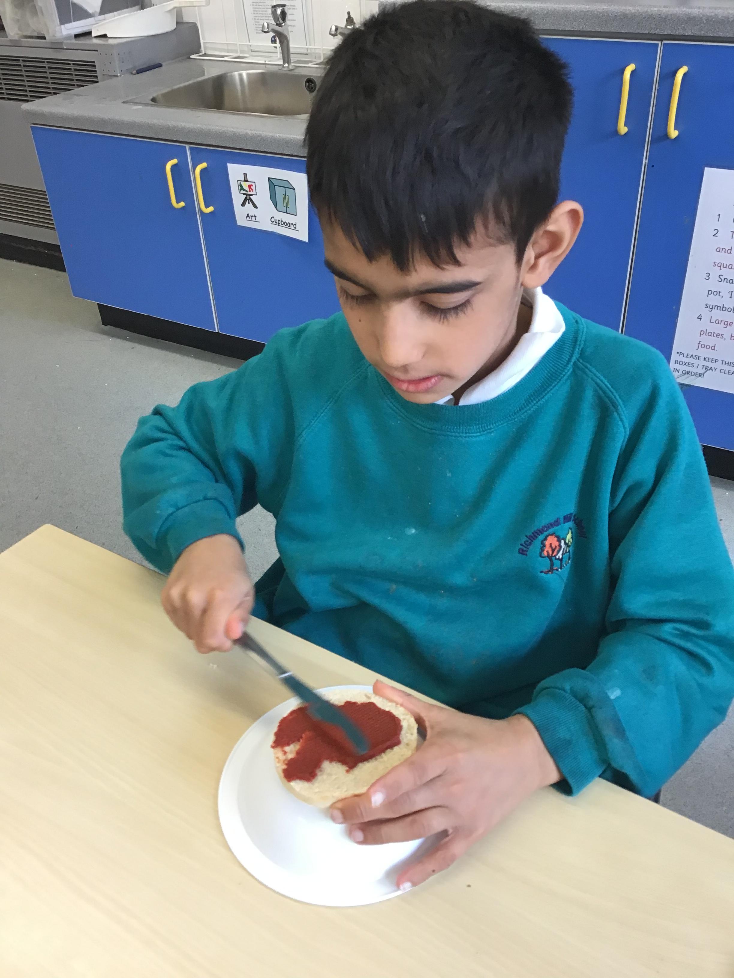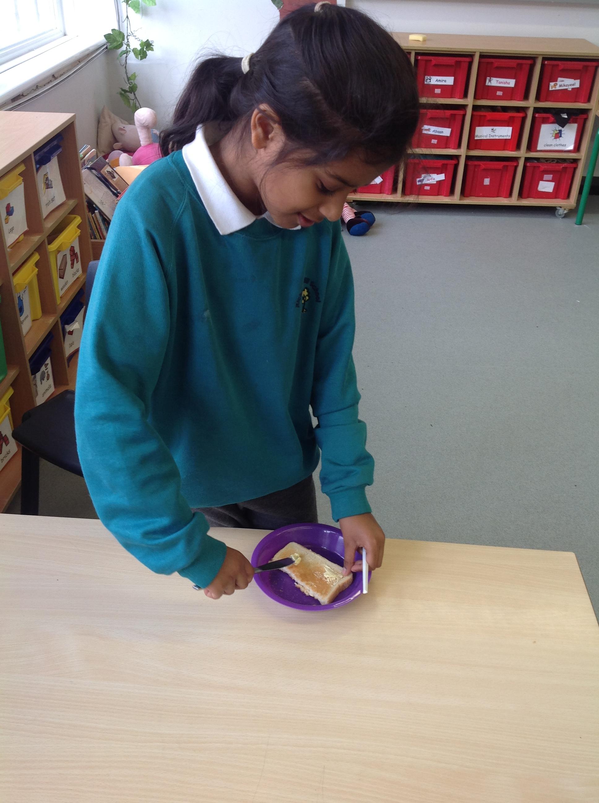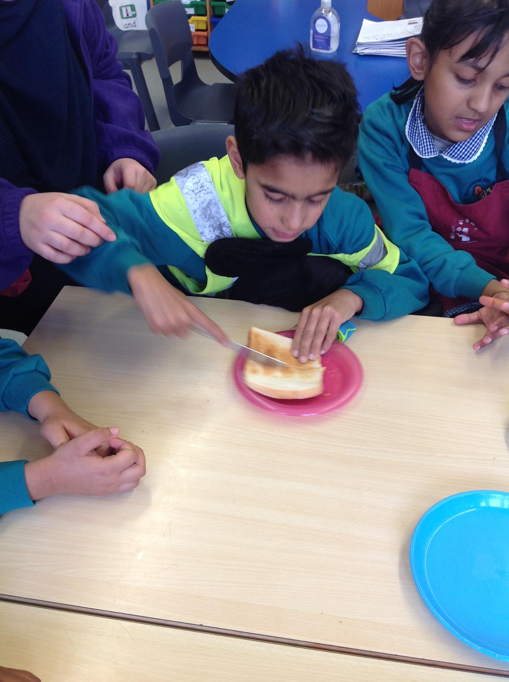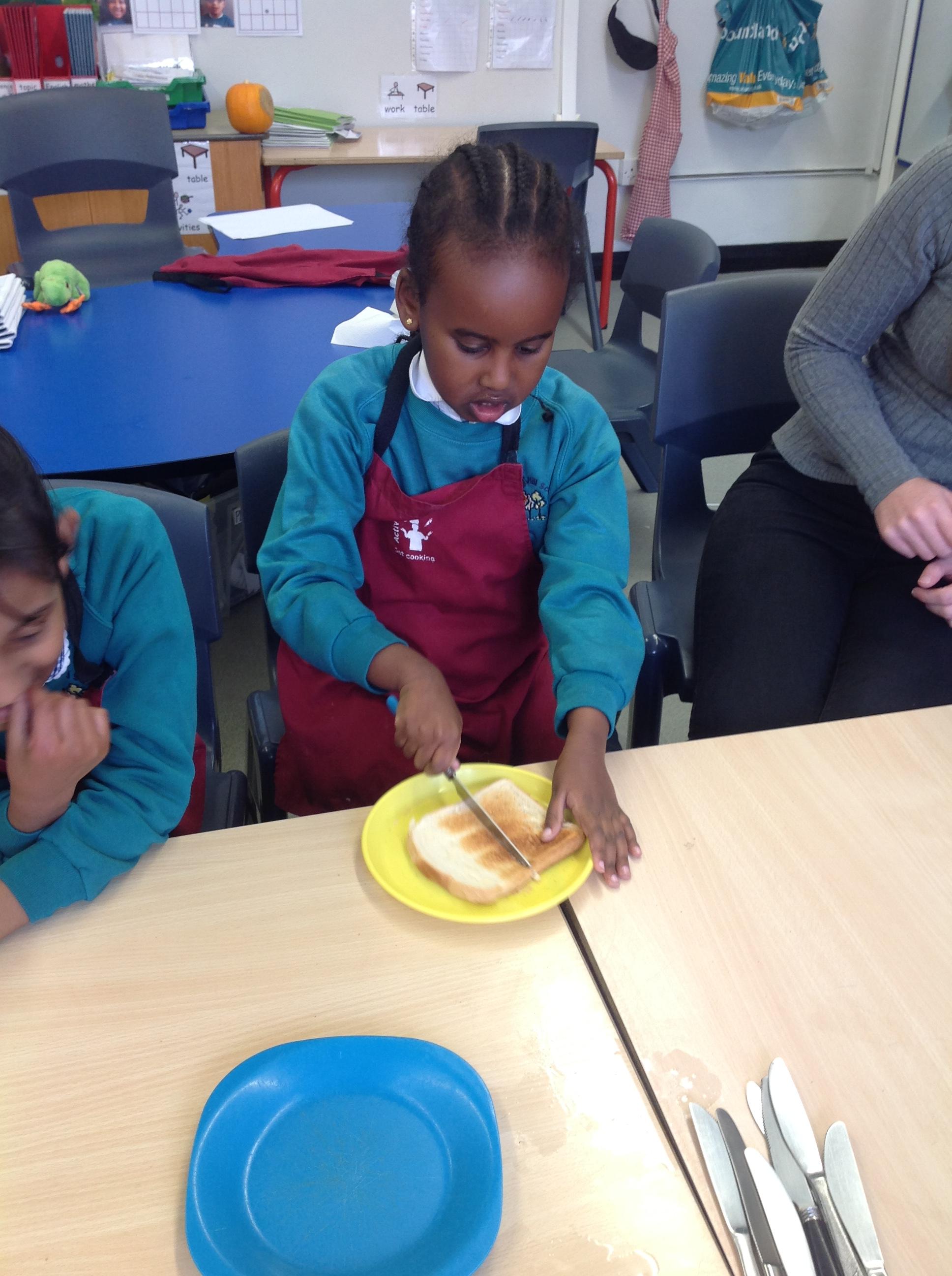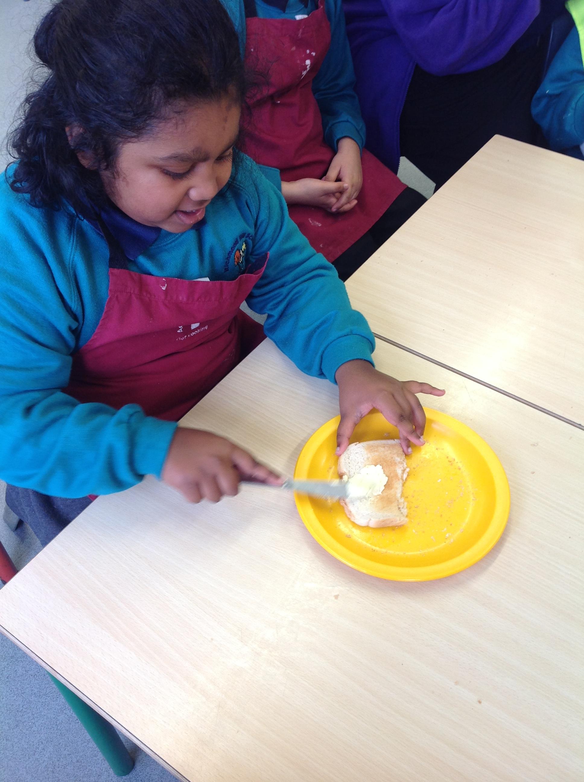 Cookery challenge for this week: TOAST! Can you support your child to safely make toast? The children of blue class are familiar with using the toaster and can identify that it is hot and dangerous. They can also slice and spread with a little support.