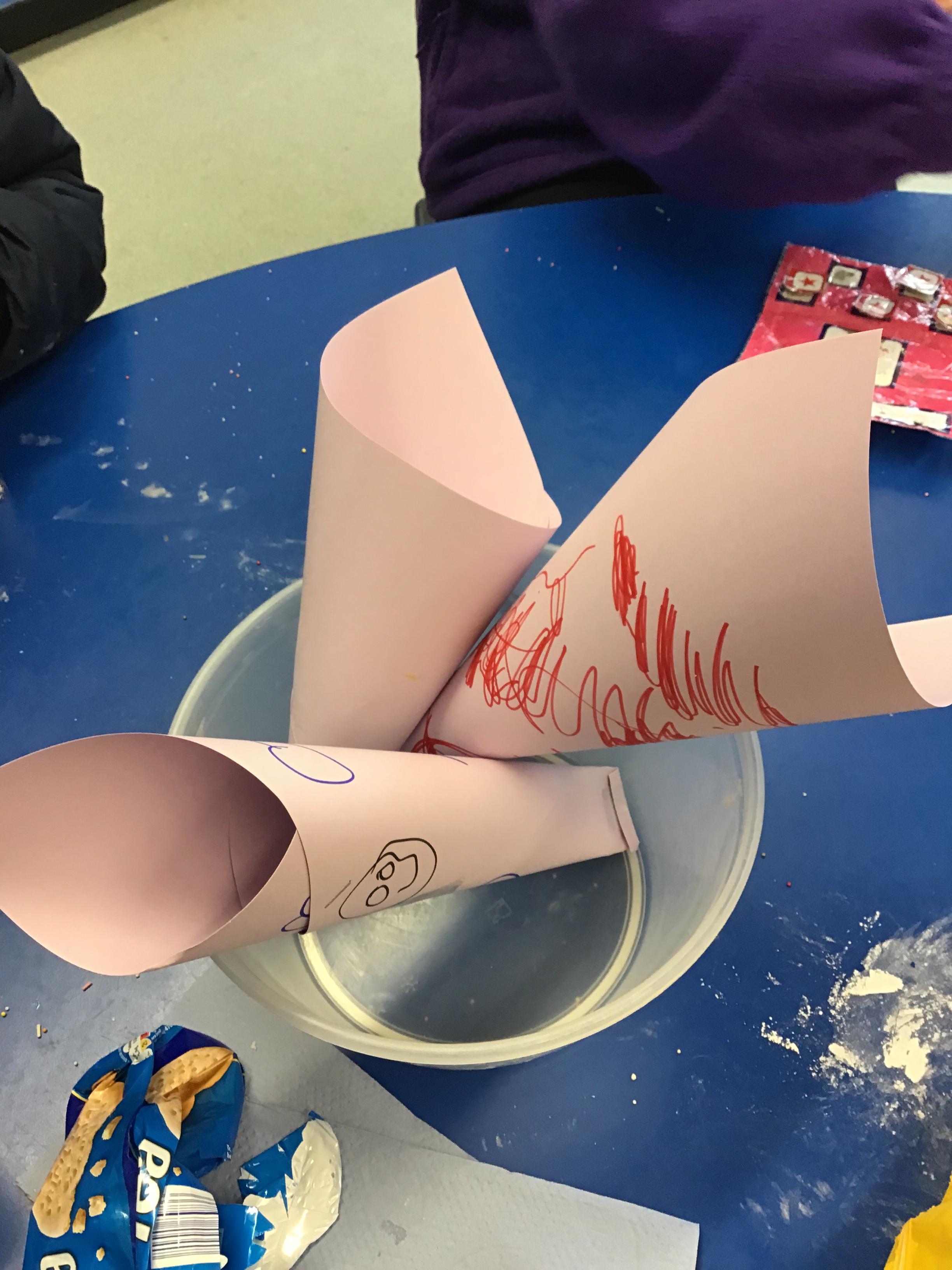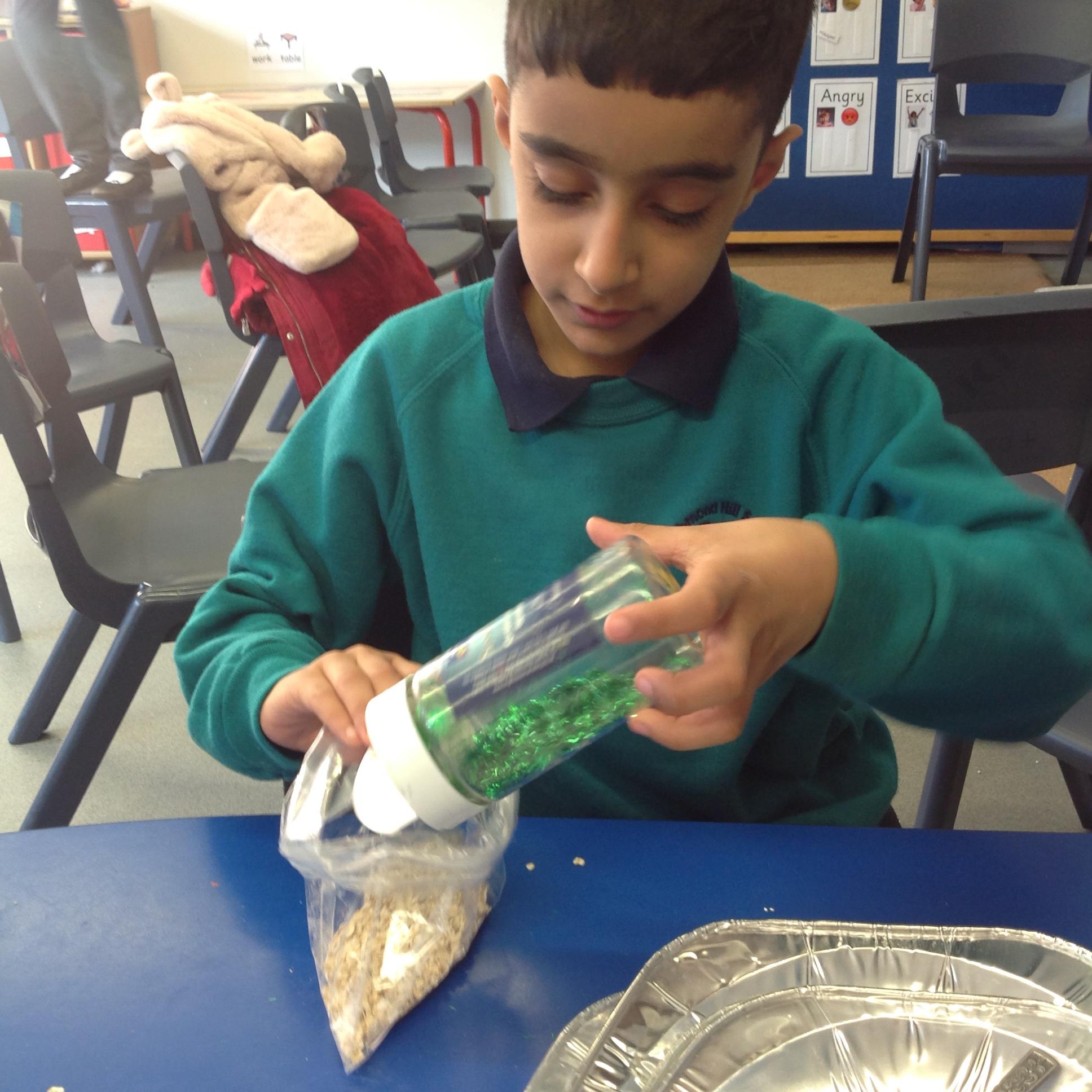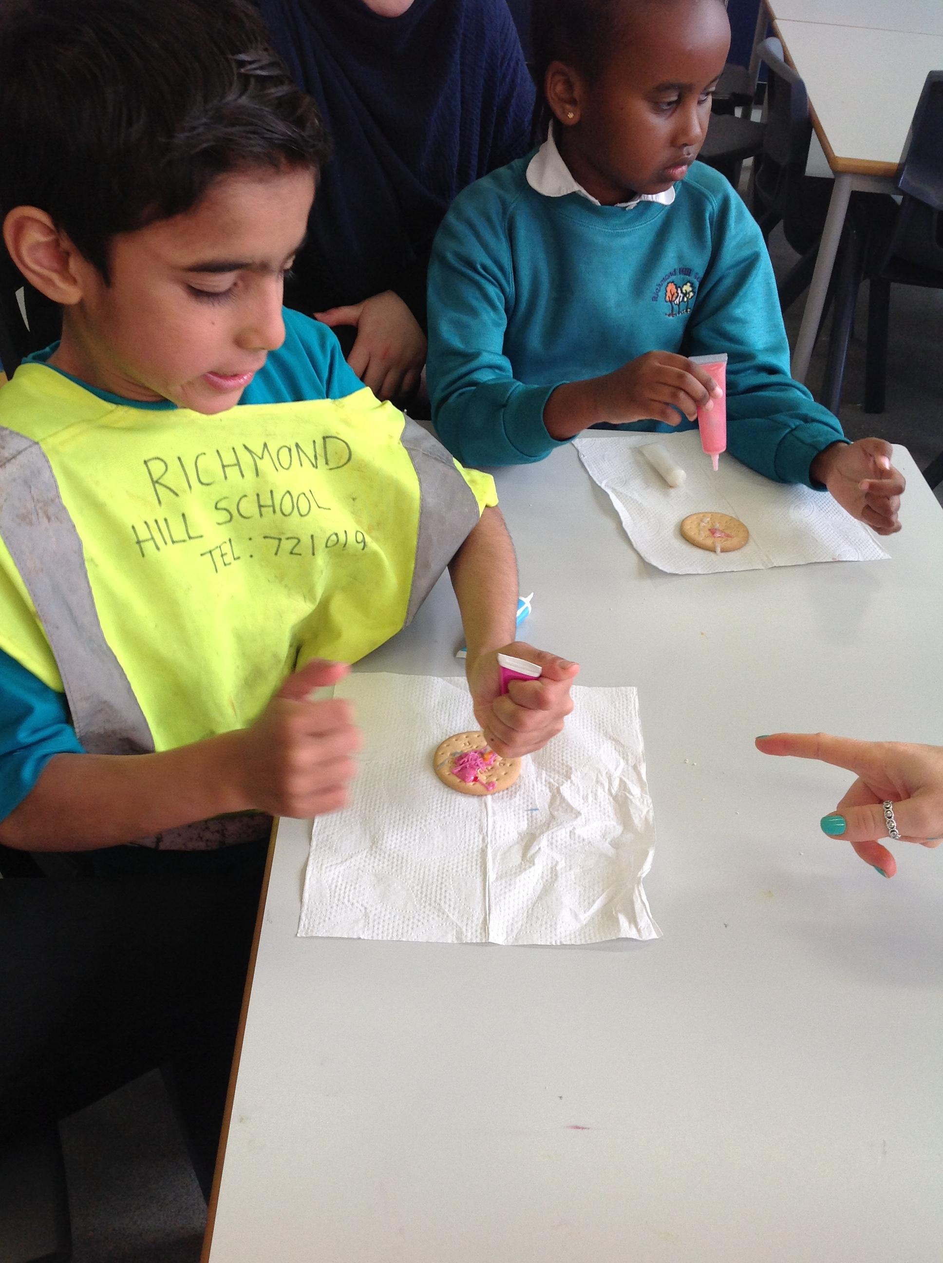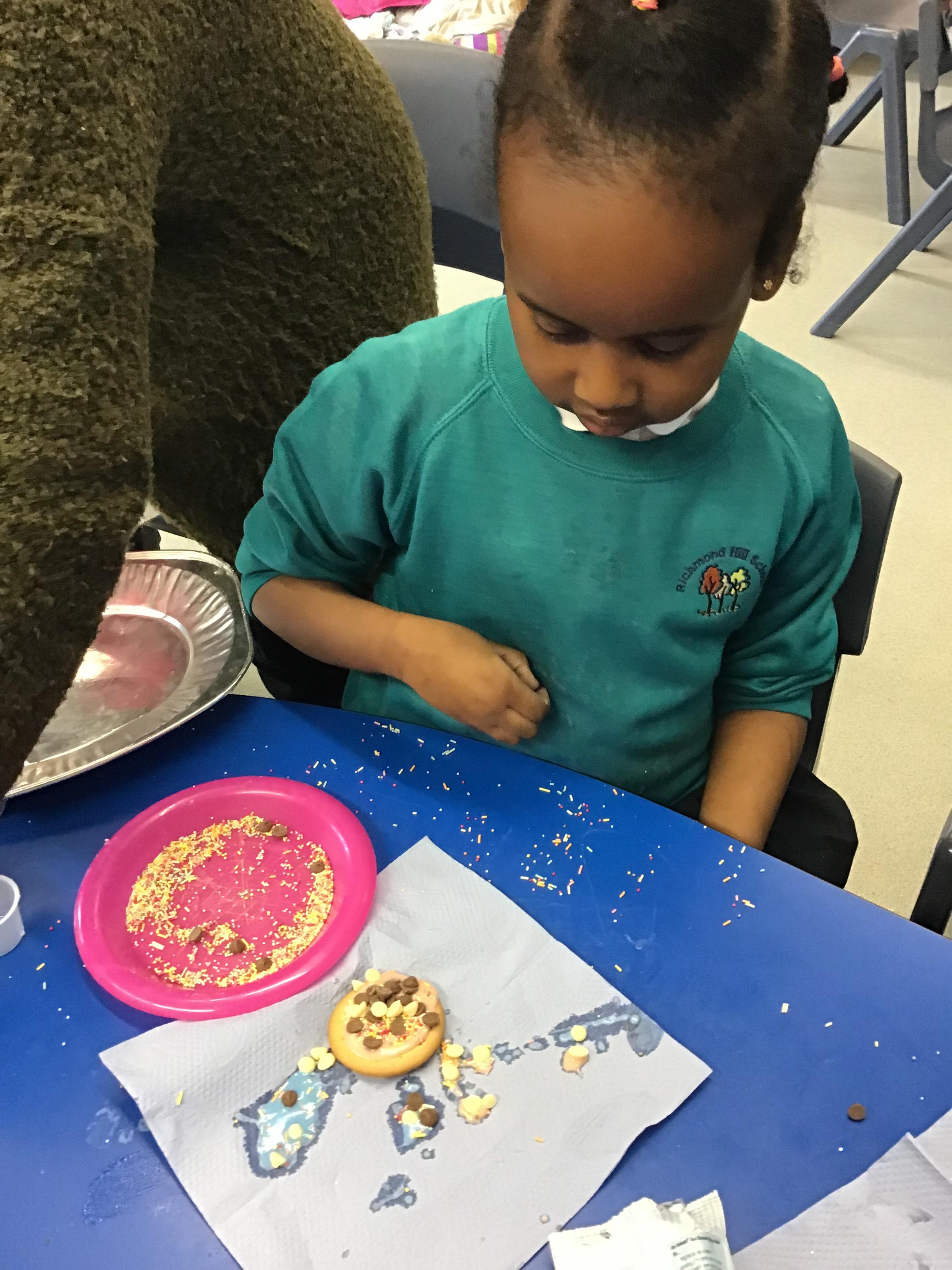 Blue class prepared posters for this year's Enterprise Fair - they posted them around school. The children decorated biscuits with icing and sweet toppings. This formed part of our science lesson with a focus on colour changing. Blue class also made popcorn cones and filled them with sweet popcorn. Our total profit was £13.74!!!