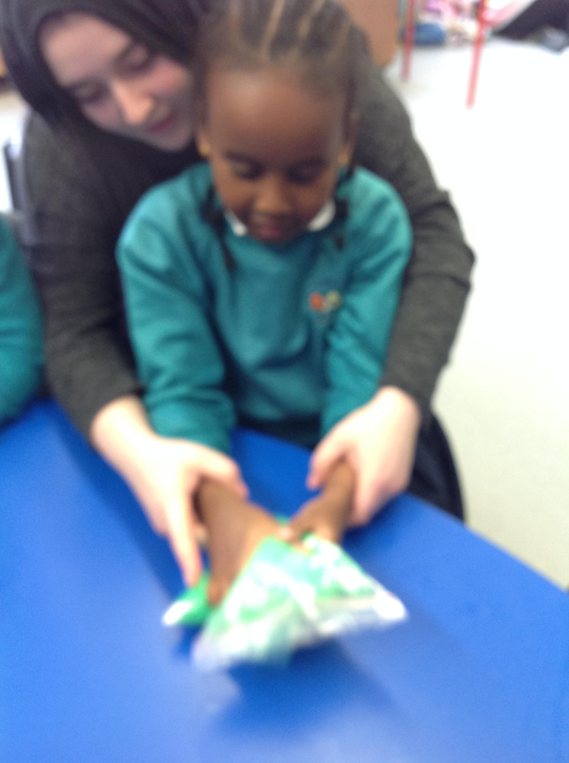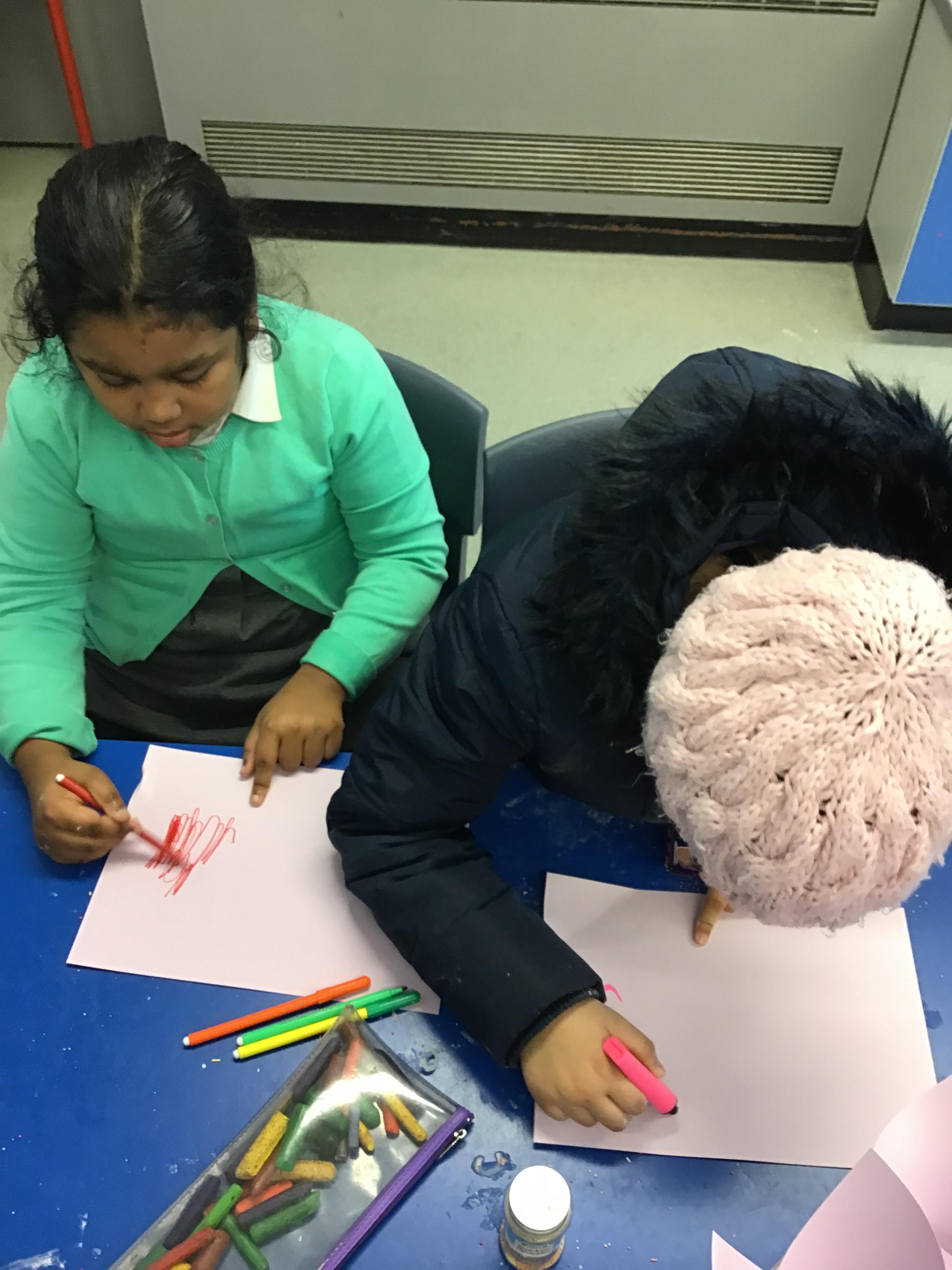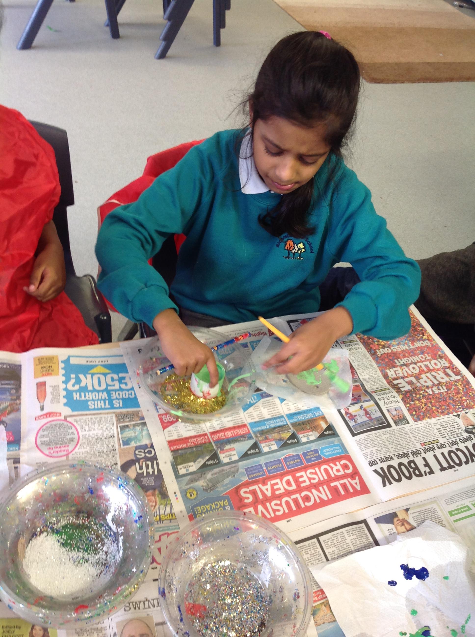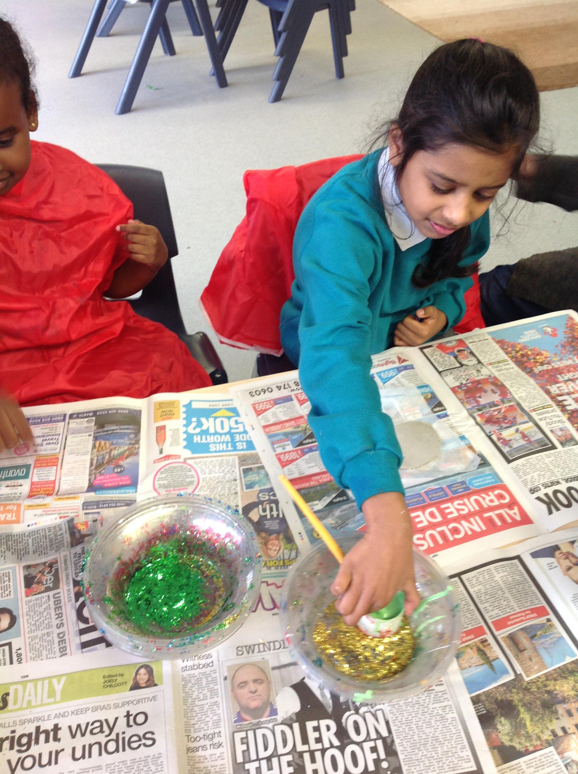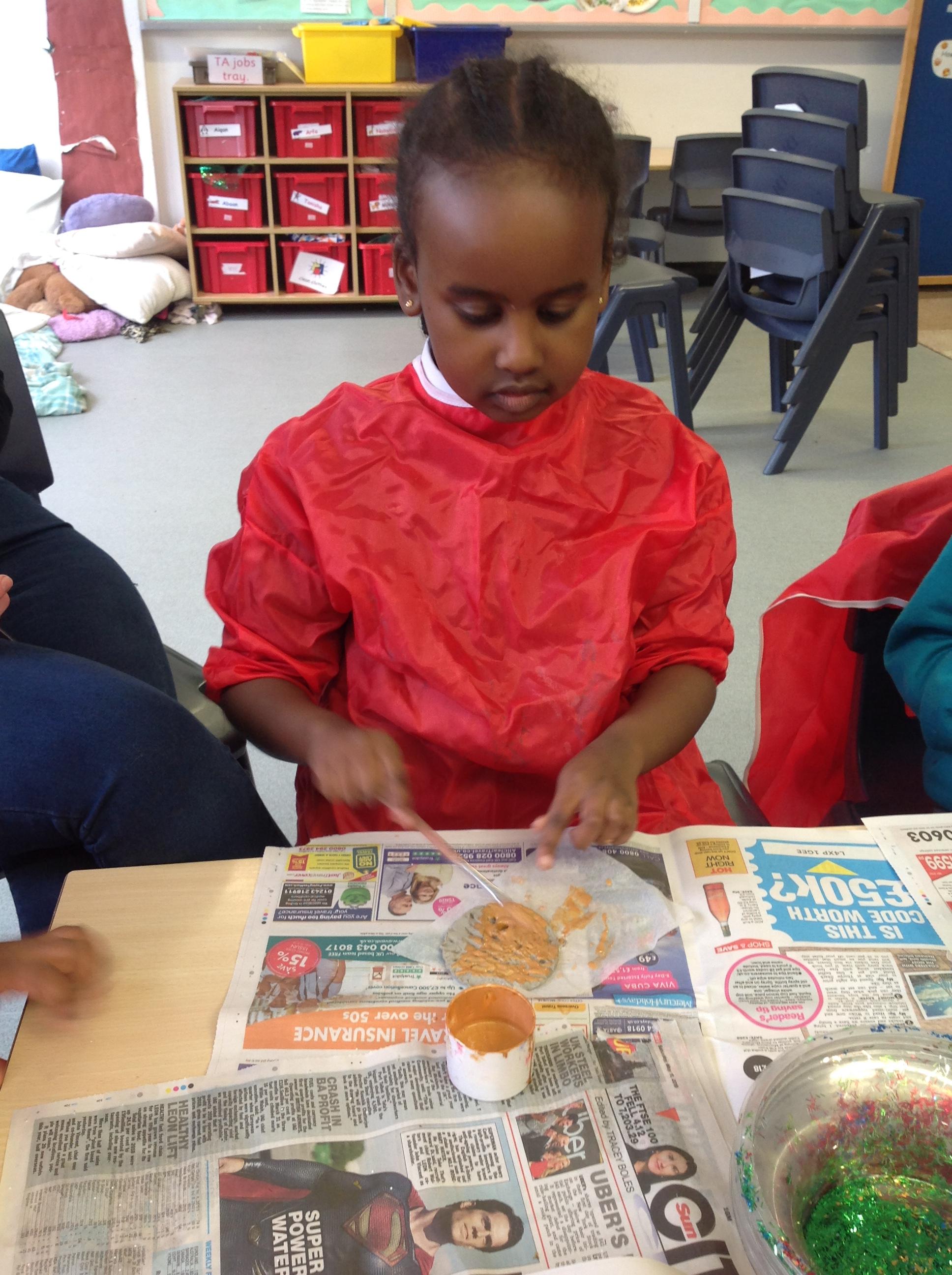 Blue class have been developing their fine motor skills and art skills by applying mehndi/henna to their hands. The children LOVED doing this. They used squeezy icing to apply their patterns to their arms / hands. They had to sit very still to allow it to dry!