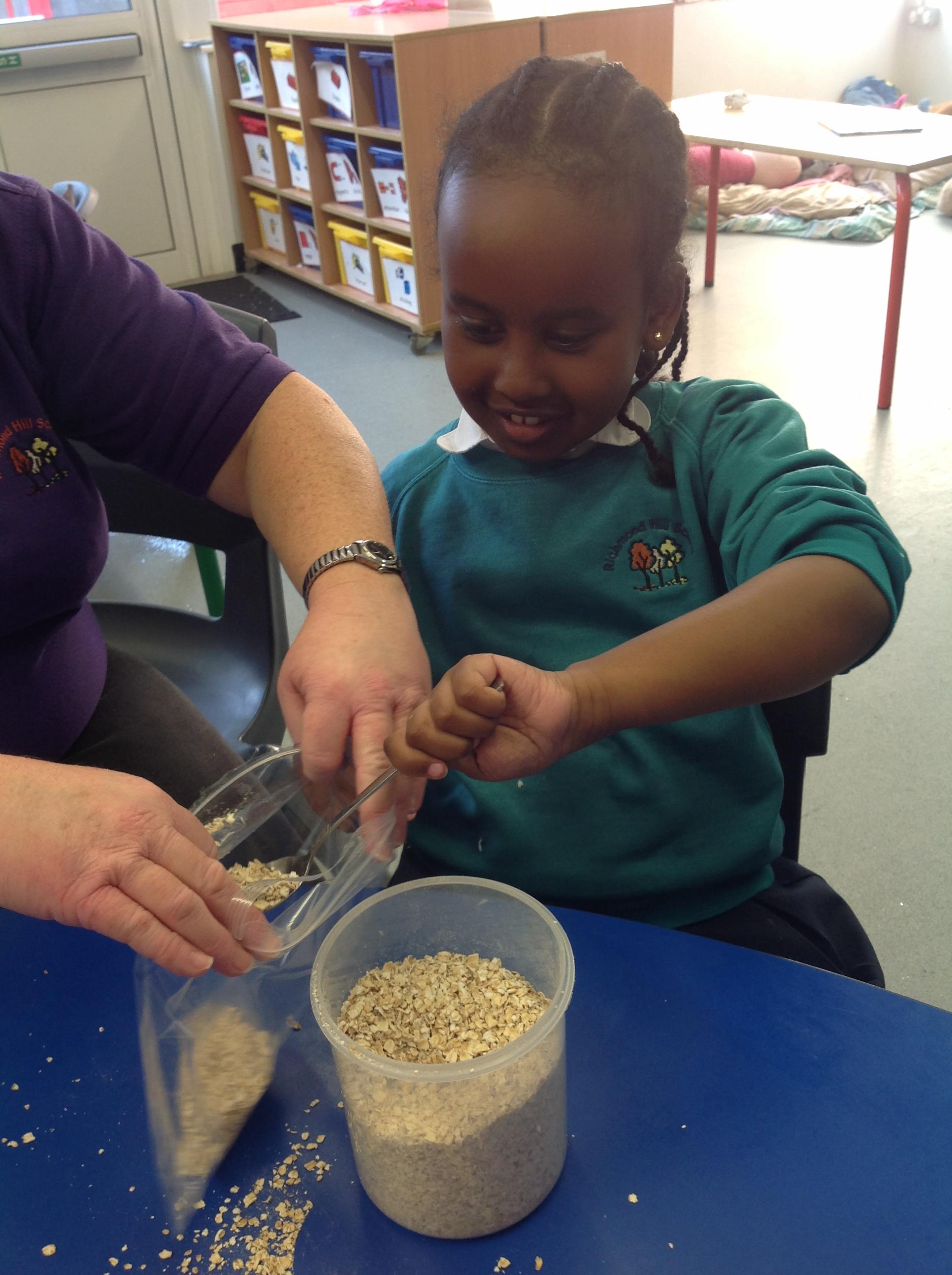 The children will visit Blue class’s snack shop every snack time. They have each been given given a purse / wallet with real money in – they will ‘buy’ their snack each day to develop their real life skills and independence with shopping.