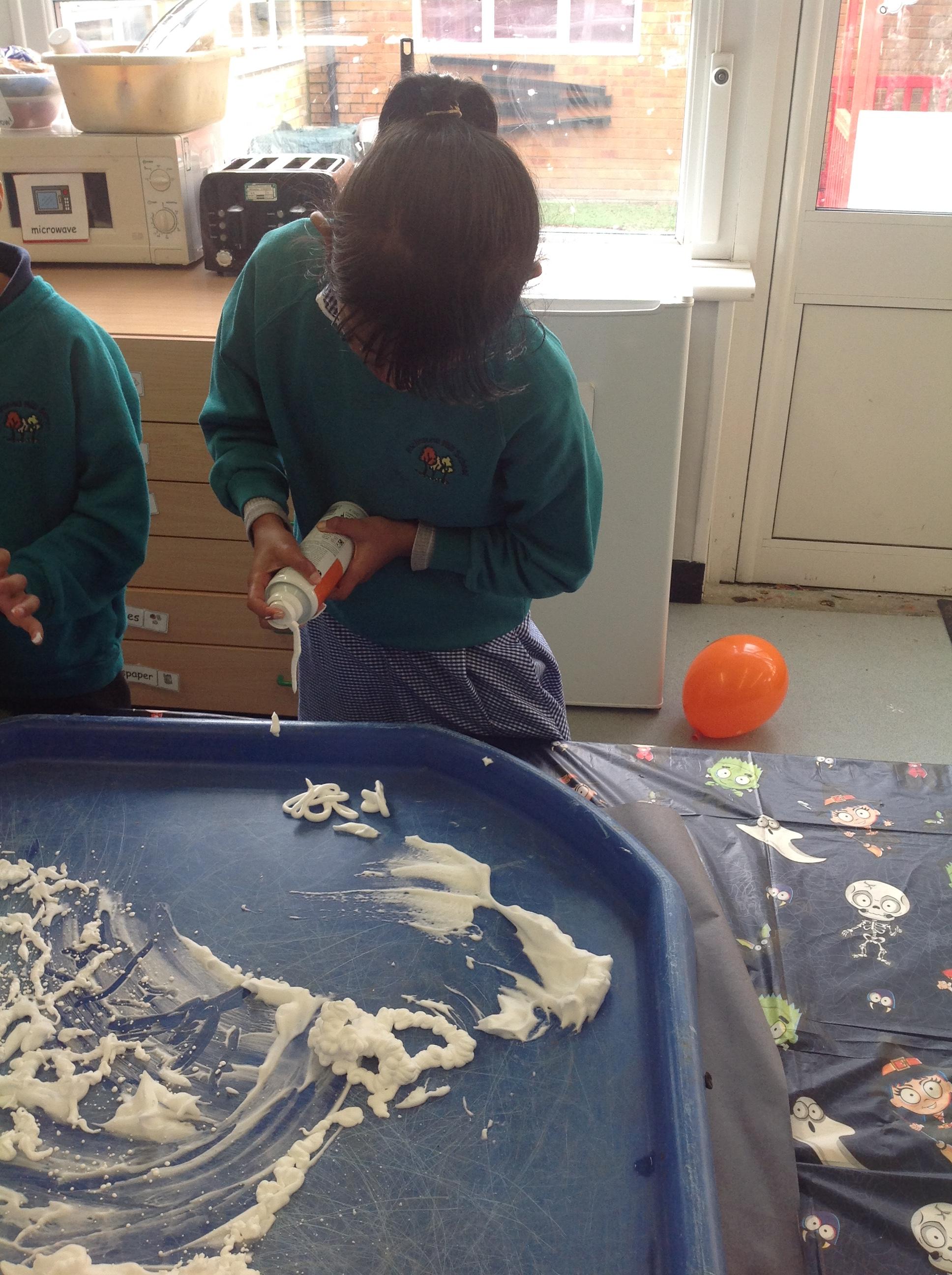 Blue class celebrated halloween and bonfire night - everyone had a spooktacular time! The children used all of their senses to explore different materials, foods and activities - they described each sense using WOW words (adjectives!)
