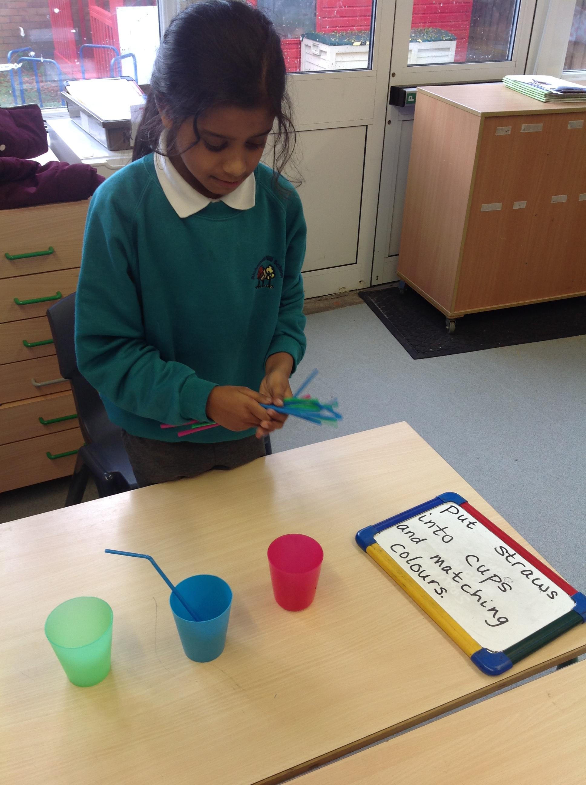 Describing, continuing and copying patterns are all targets which the children in blue class are currently working on.