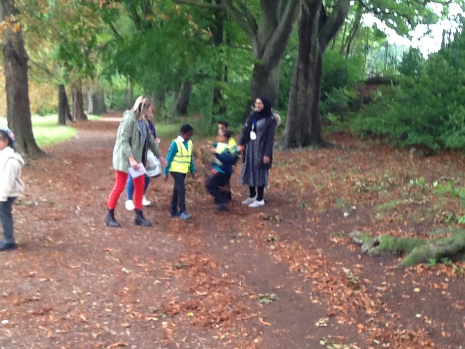 Walking in the park and collecting natural materials for a picture