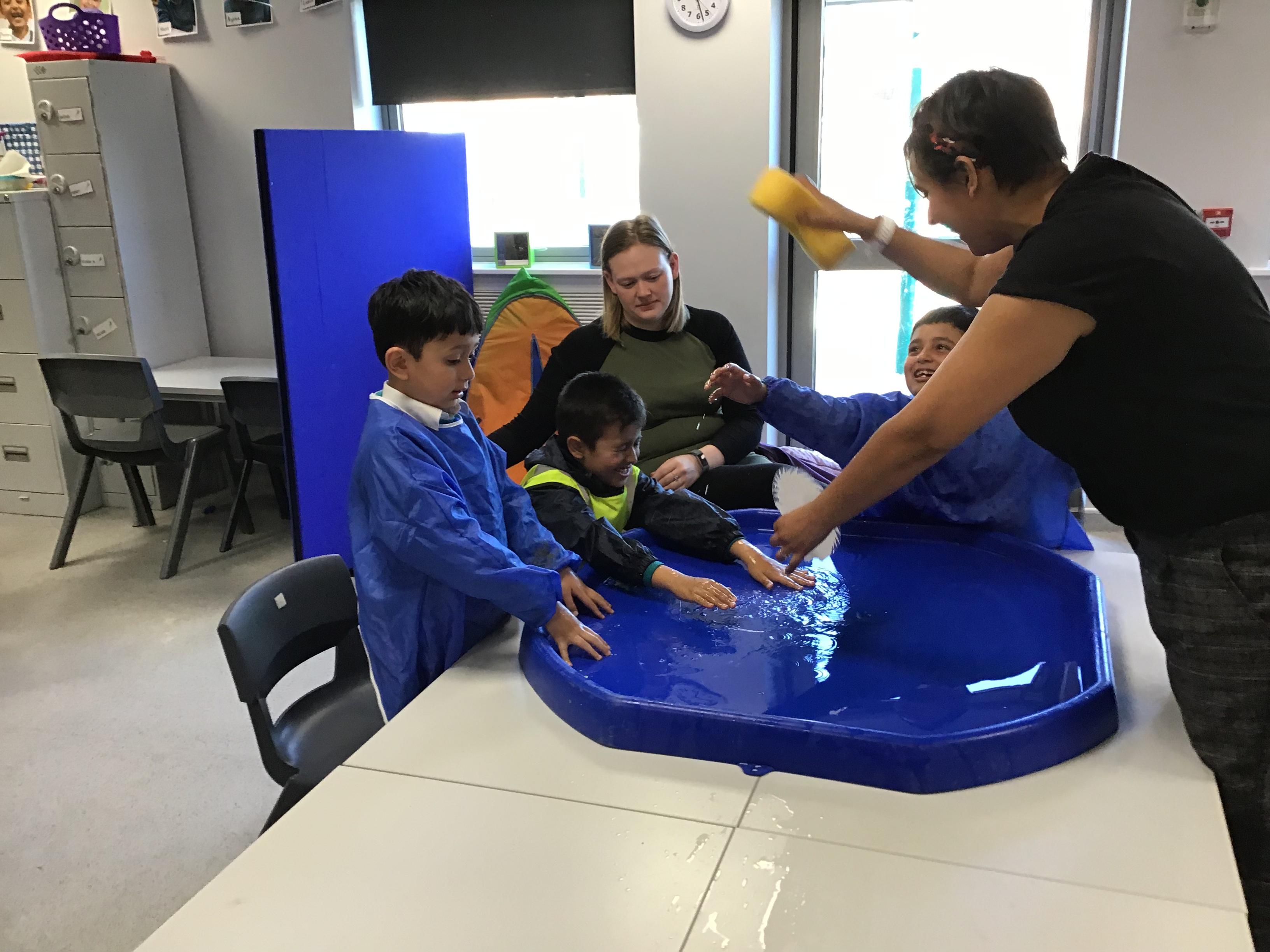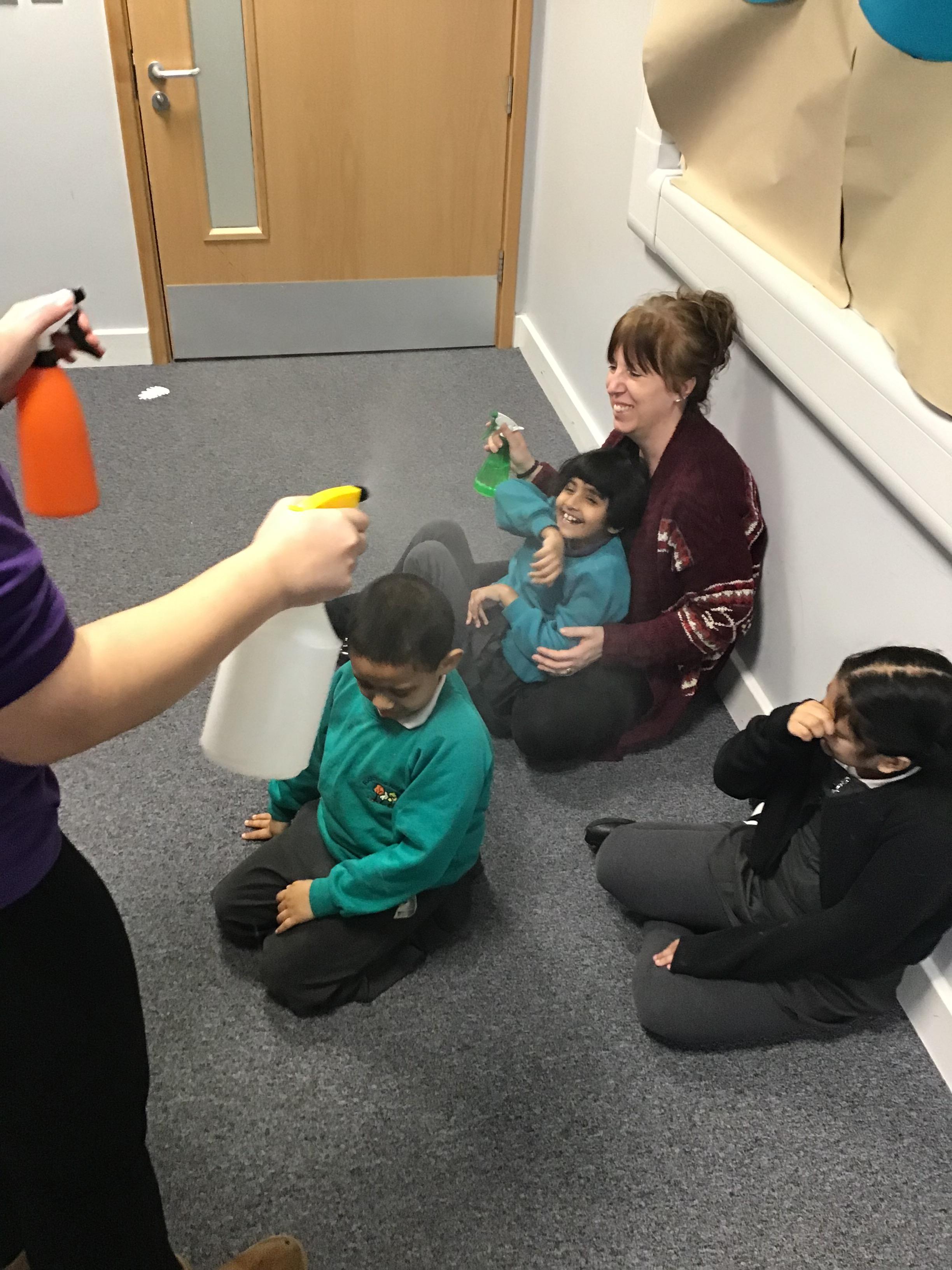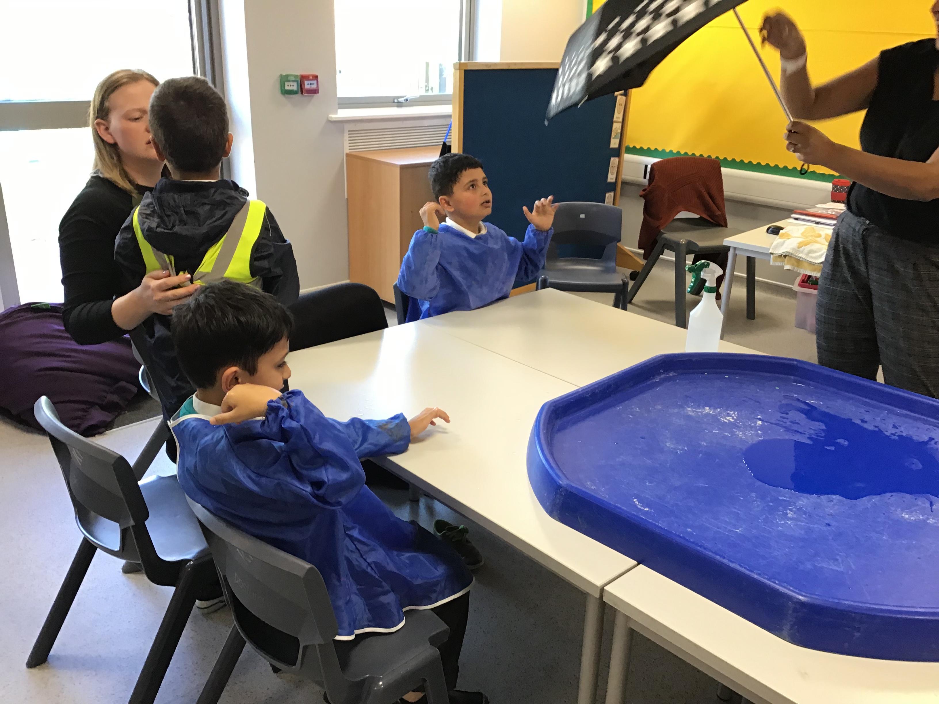 Our sensory story has been a real hit and the children have loved the story of Kipper "Splosh." They have been really engaged in the changing wet weather in the story.