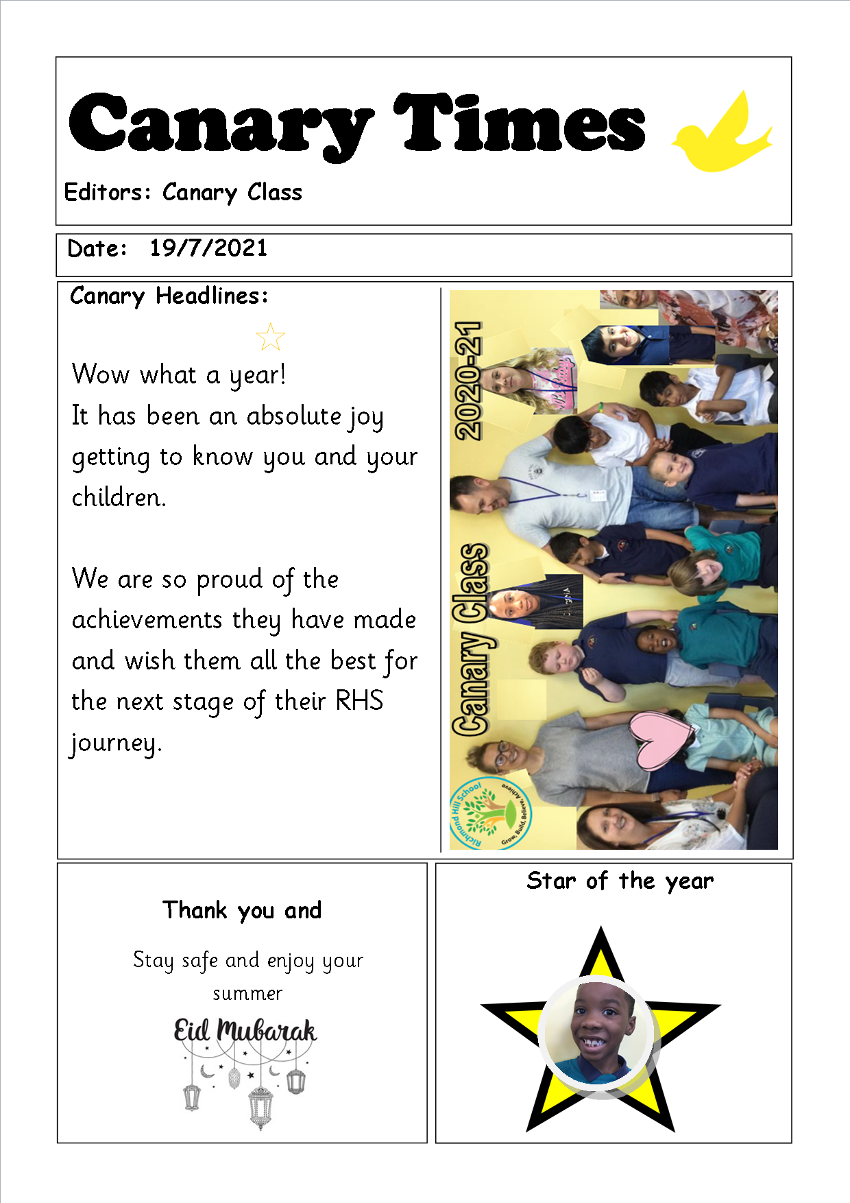 I really look forward to sharing with you news about the class each week on this page over the coming year. I also look forward to working alongside you all as parents to support the children during their RHS journey. I am certain we will have a year of lots of smiles and progress and I cannot wait to watch the children achieve their own unique goals.