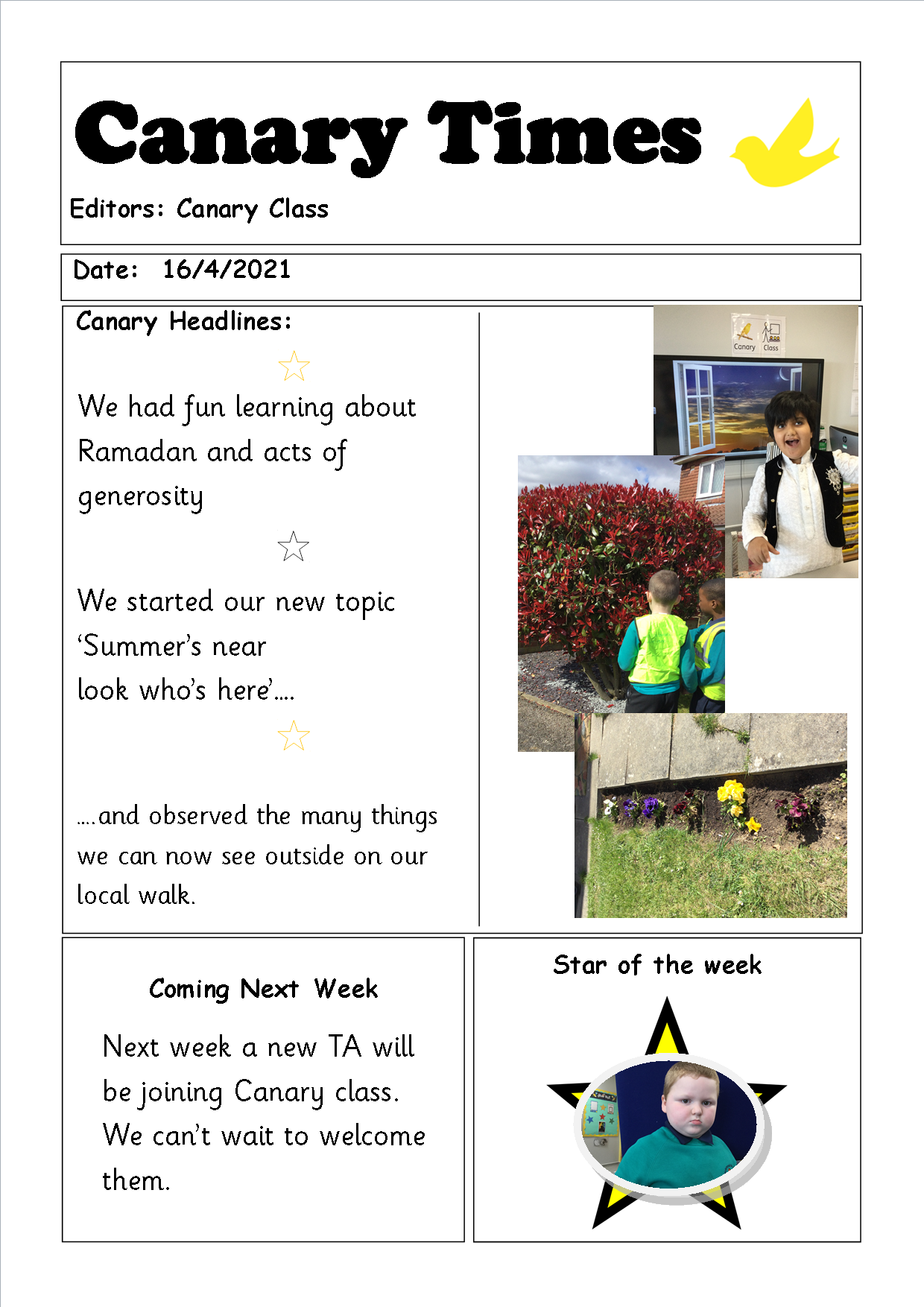 My name is David and I am the class teacher. Marie is our TA3 and Sian, Libby and Syeda are our TAs. Jemma also teaches the class during my planning time.