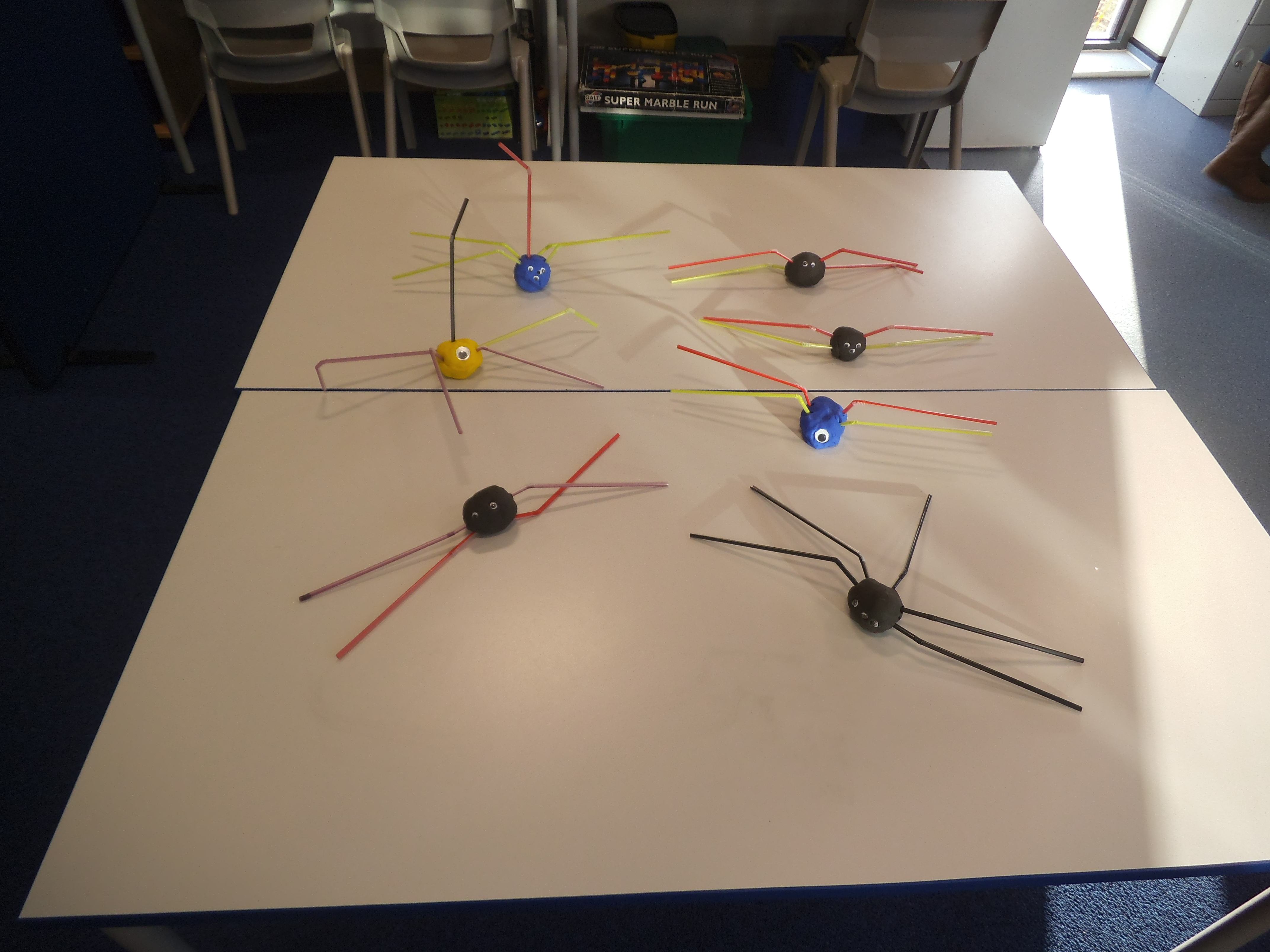 The children enjoyed reading The Very Busy Spider and have produced some wonderful work linked to the book. To start with we focused on becoming familiar with the story and its characters. Our main activities were creative and the children used threading with wool across paper plates to make webs and spiders from polystyrene balls and pipe cleaners. Colourful spiders were made from play dough and straws and we linked in the nursery rhyme Incy Wincy Spider and the class made spiders and drainpipes