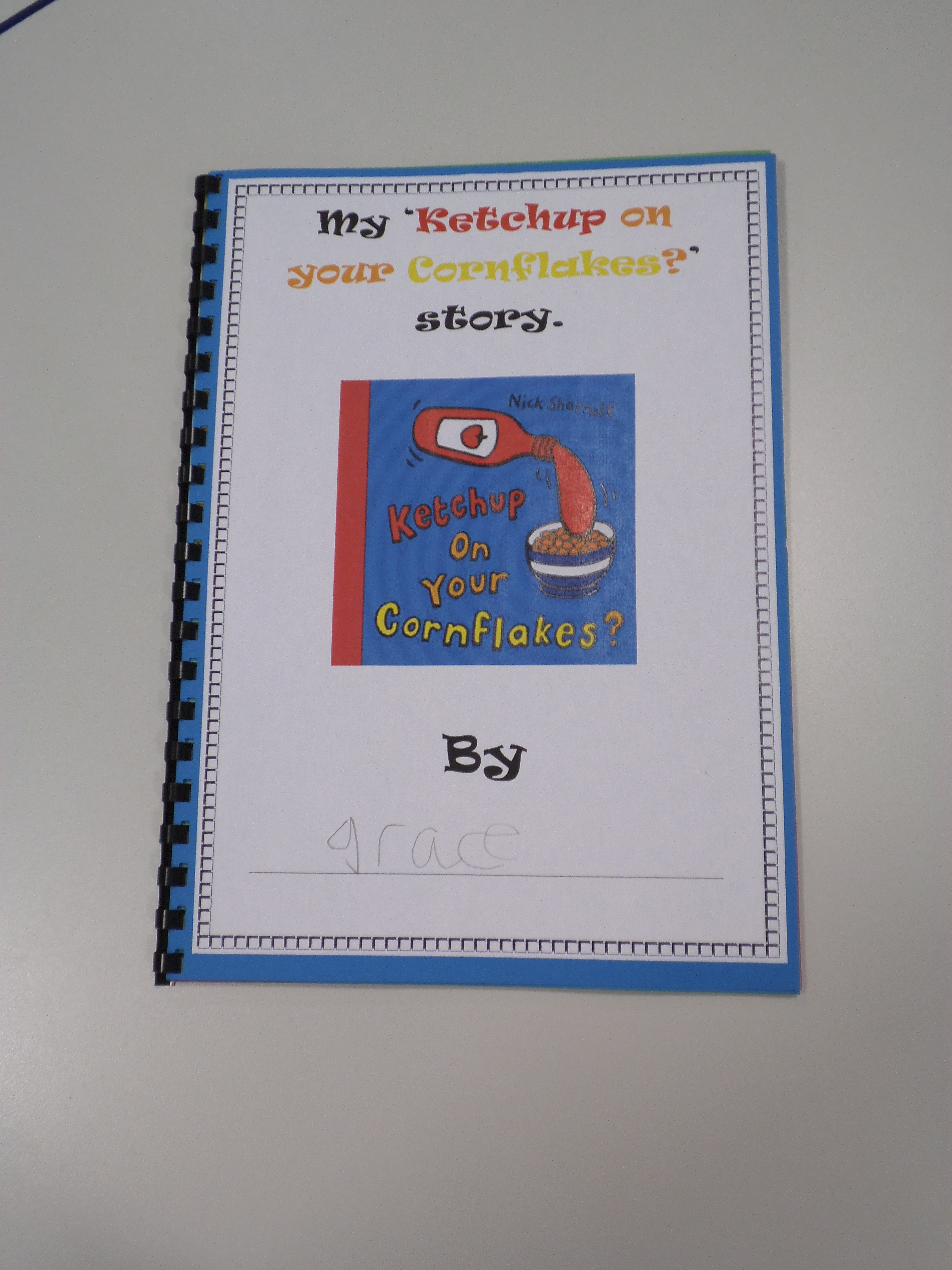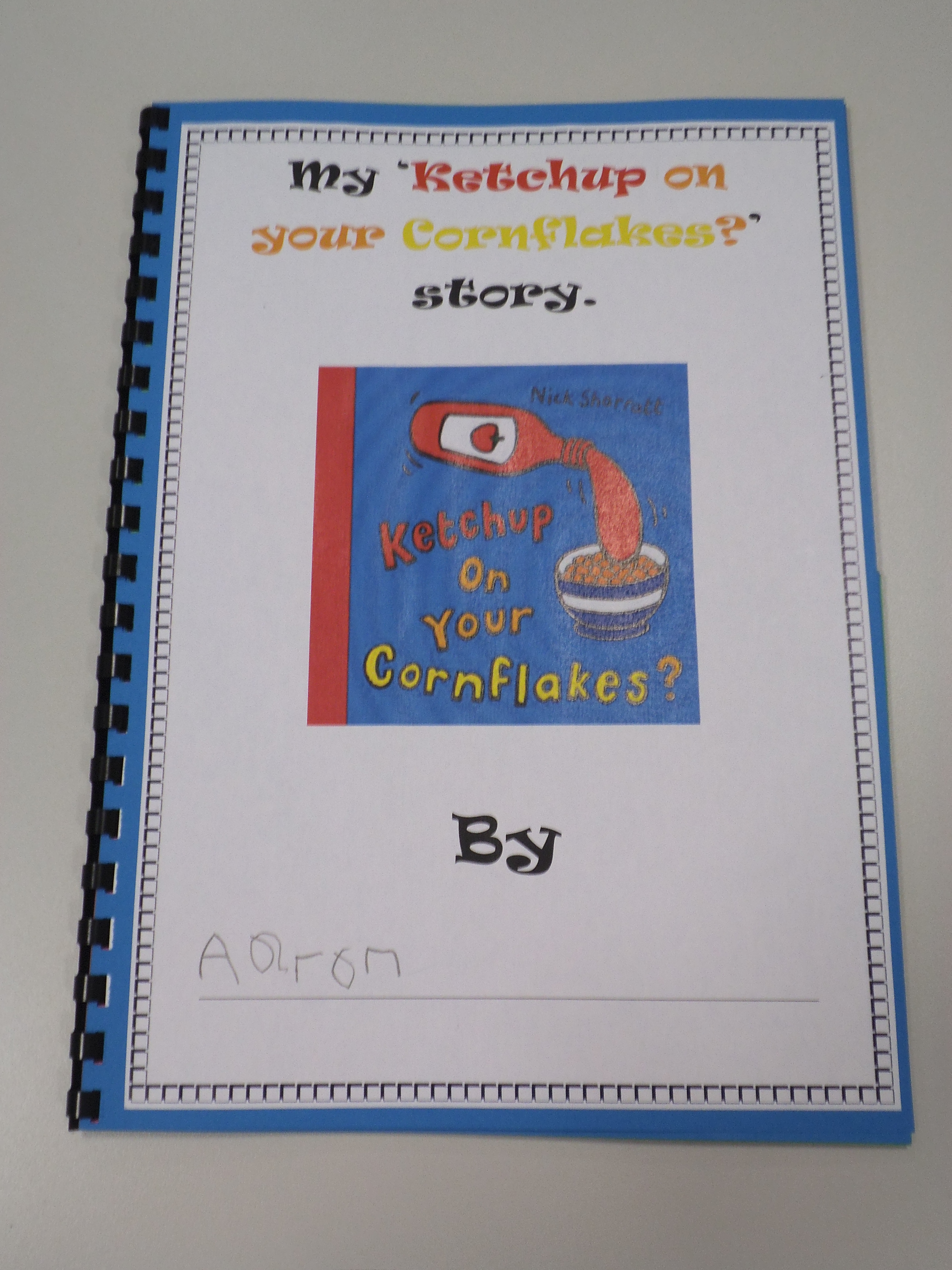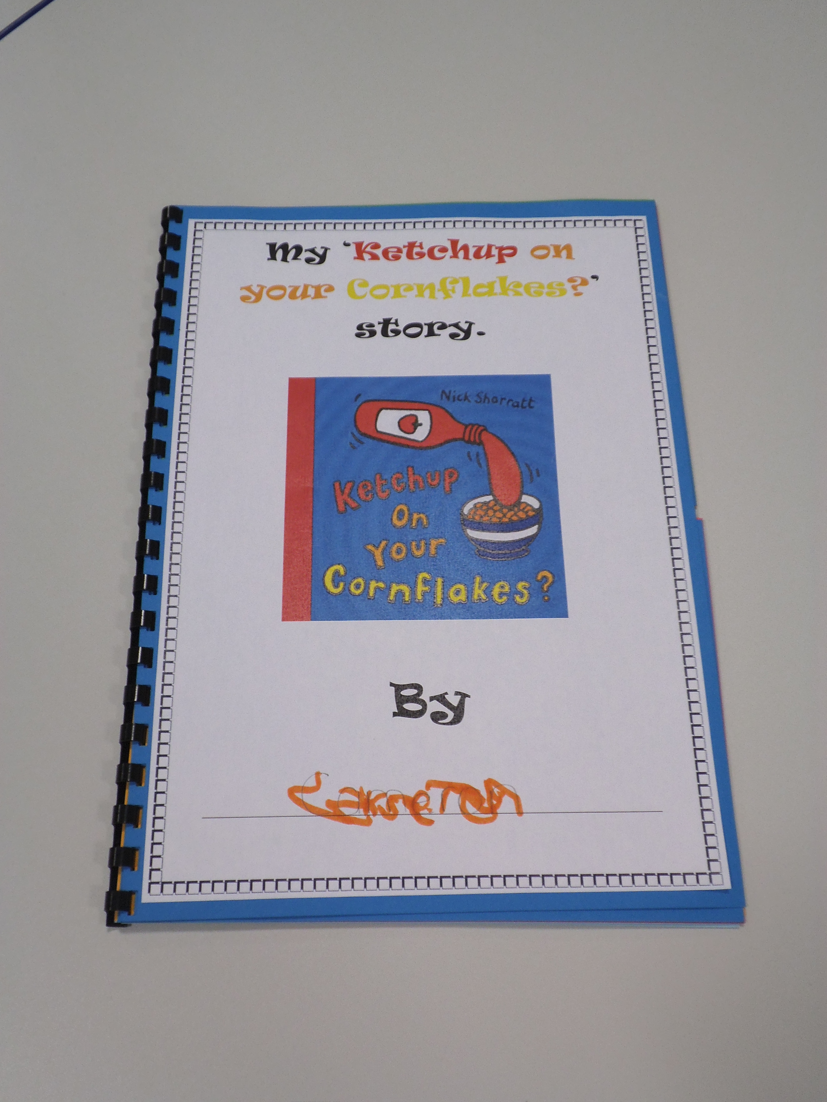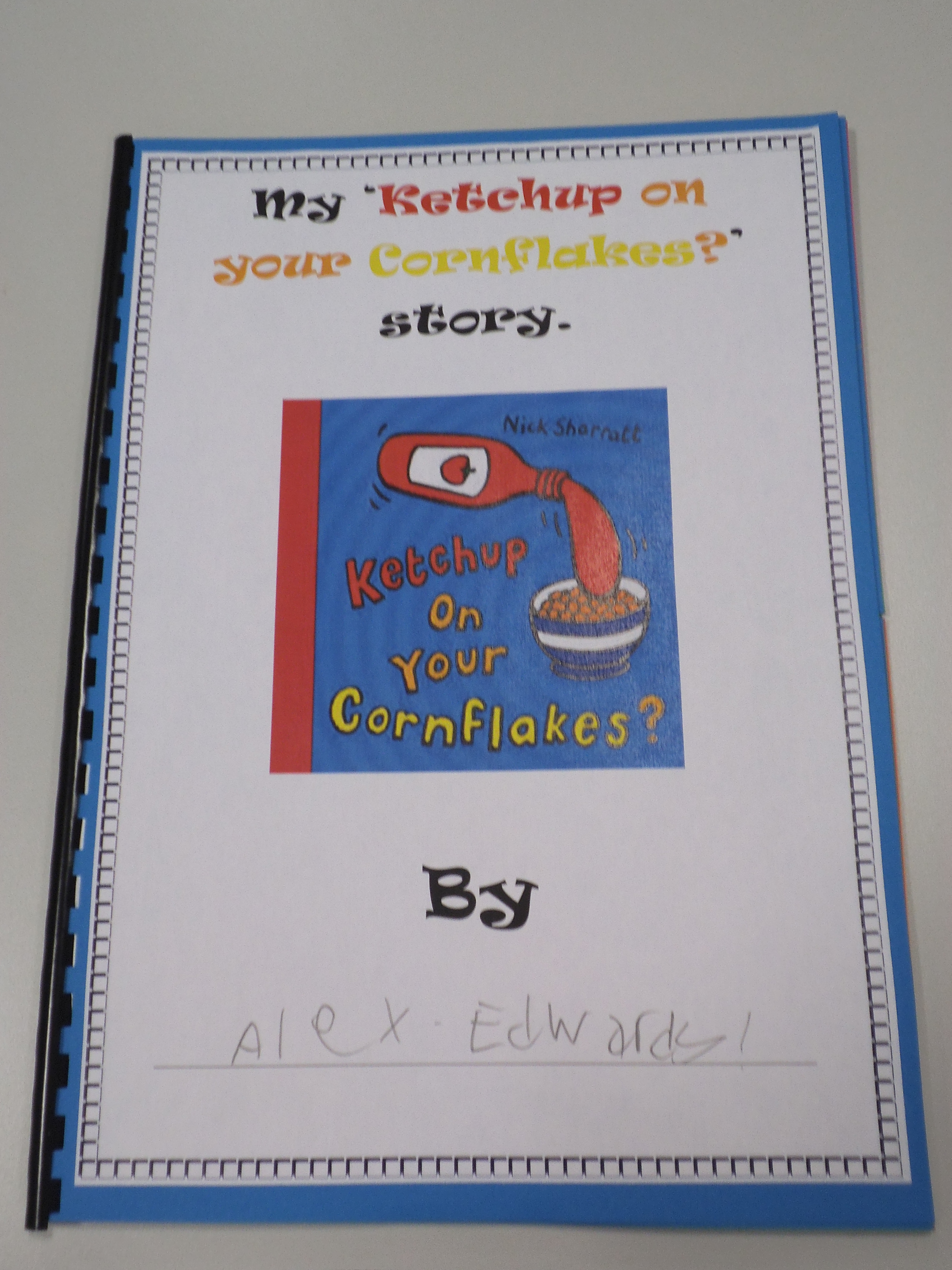 The final book we focused on was ‘Ketchup on your cornflakes?’ by Nick Sharratt, which linked into our Cafes topic. It is split-page book that invites children to laugh at the fantastic and weird food concoctions they can create.