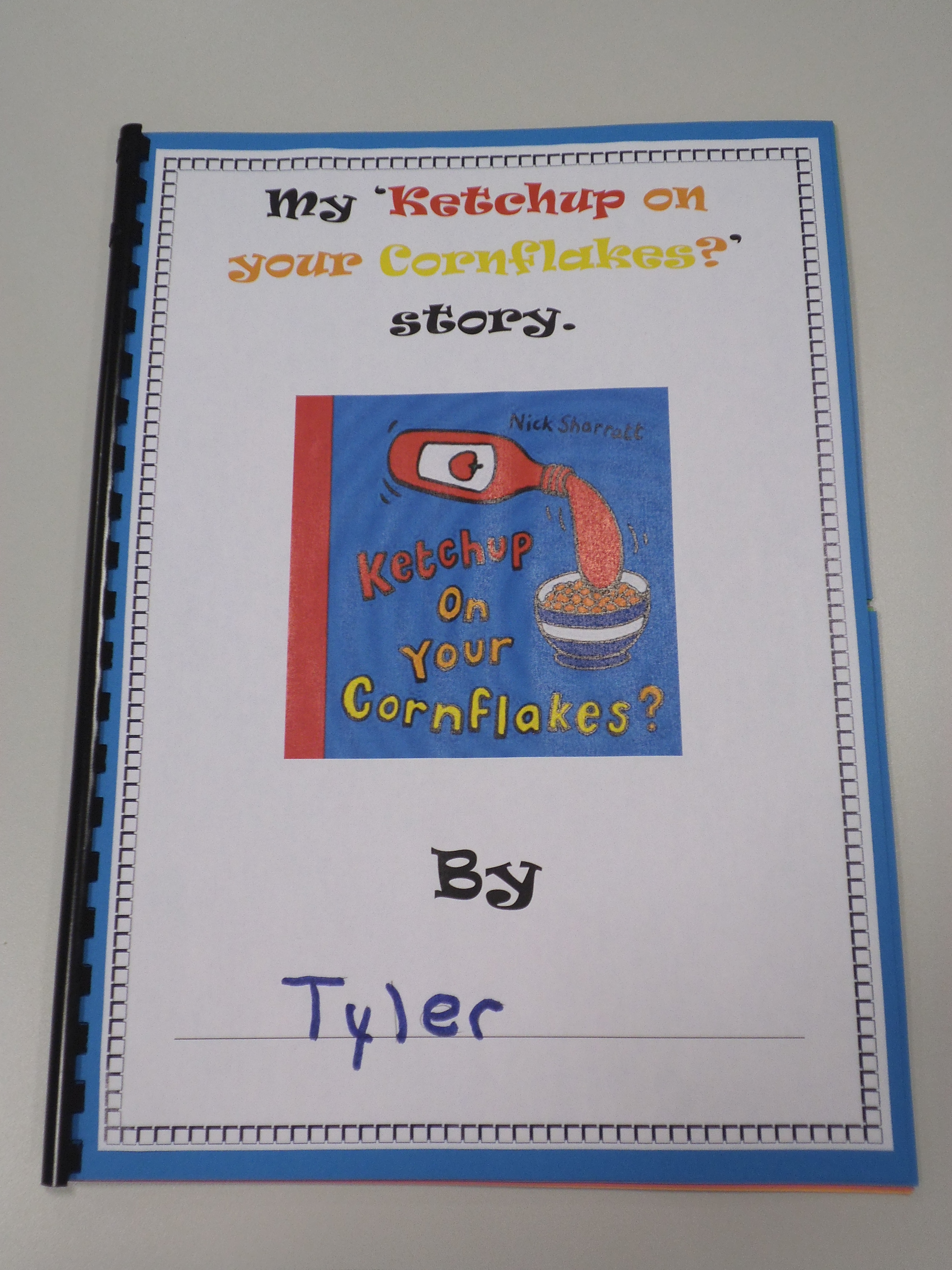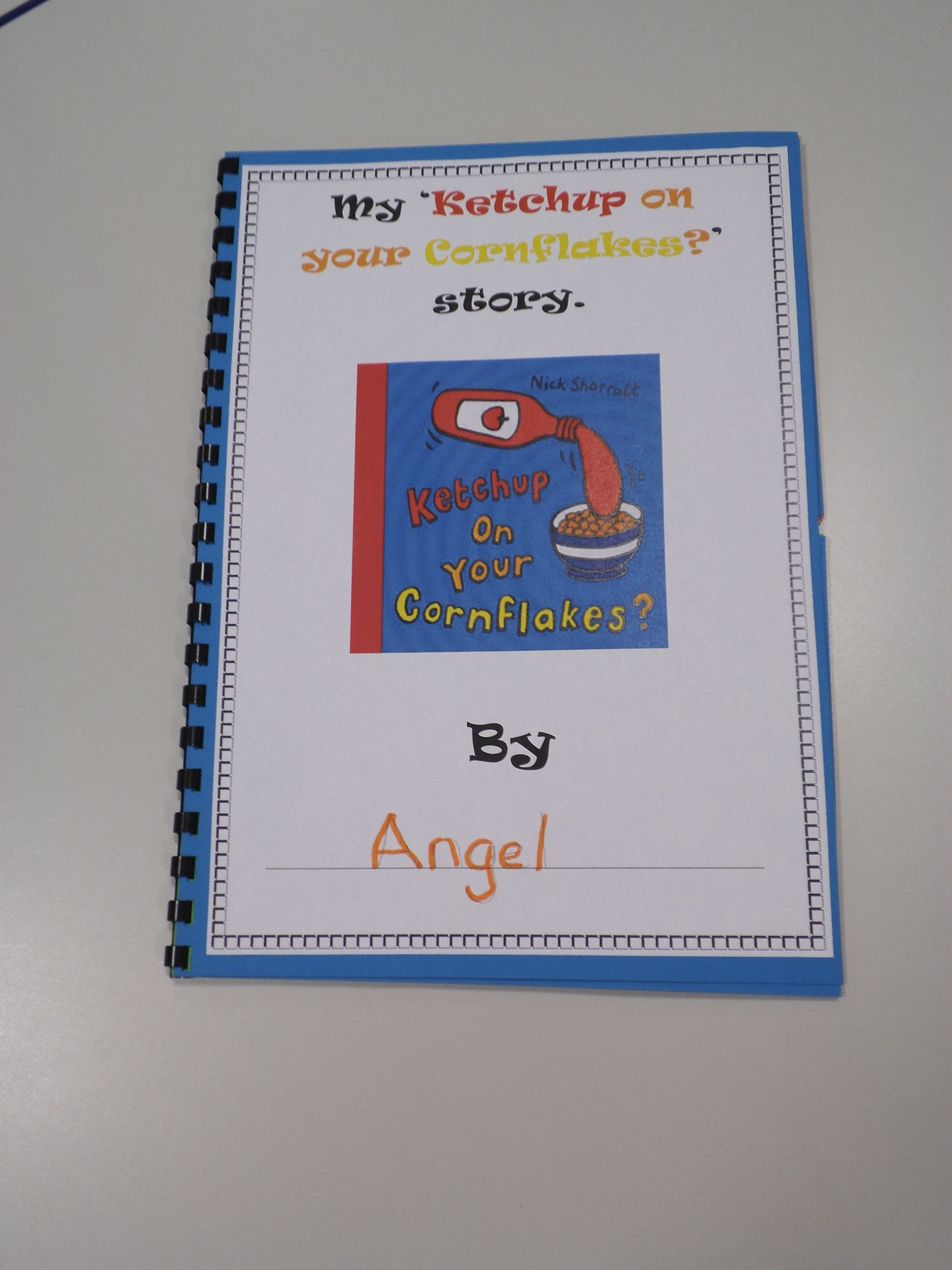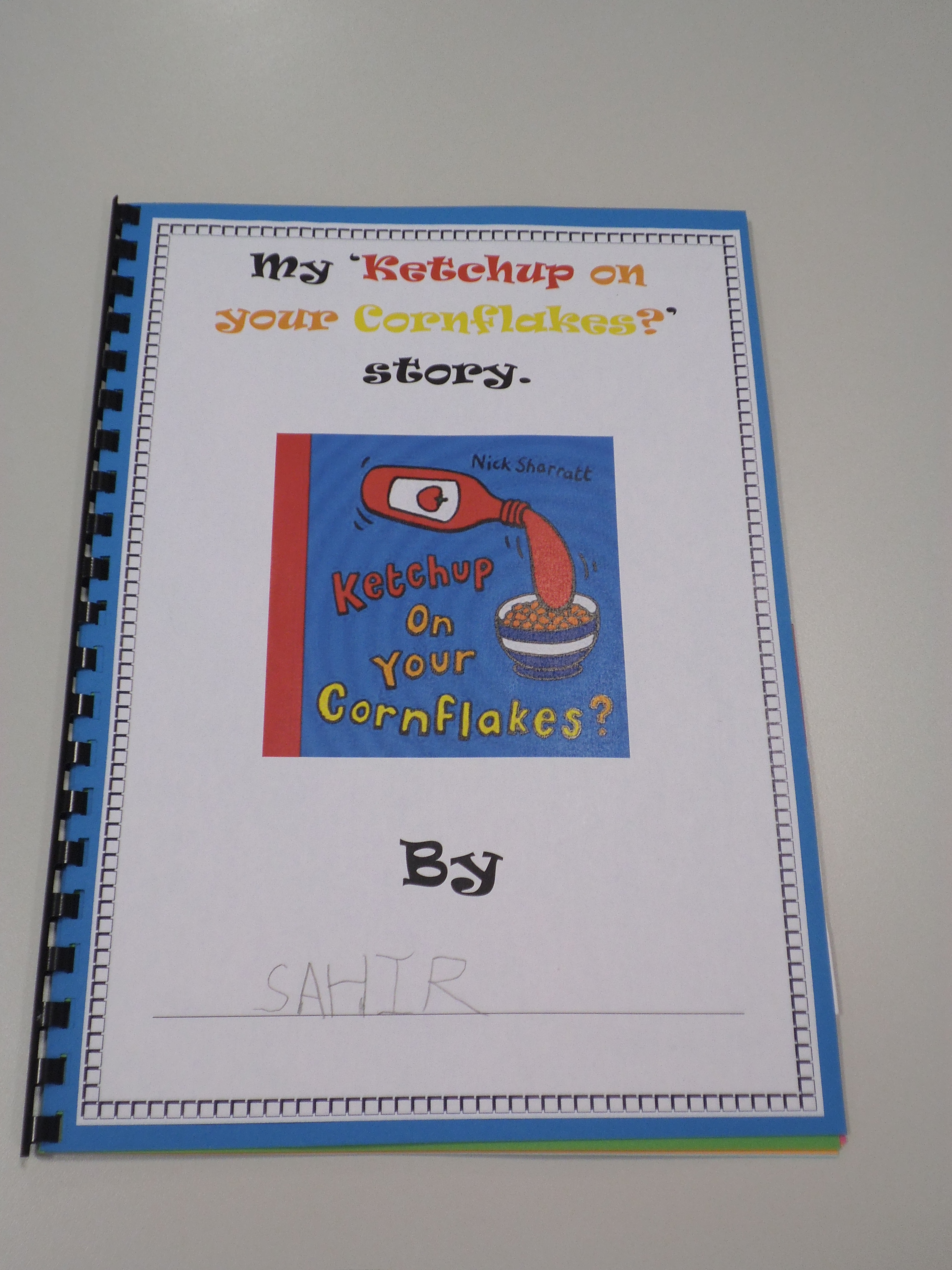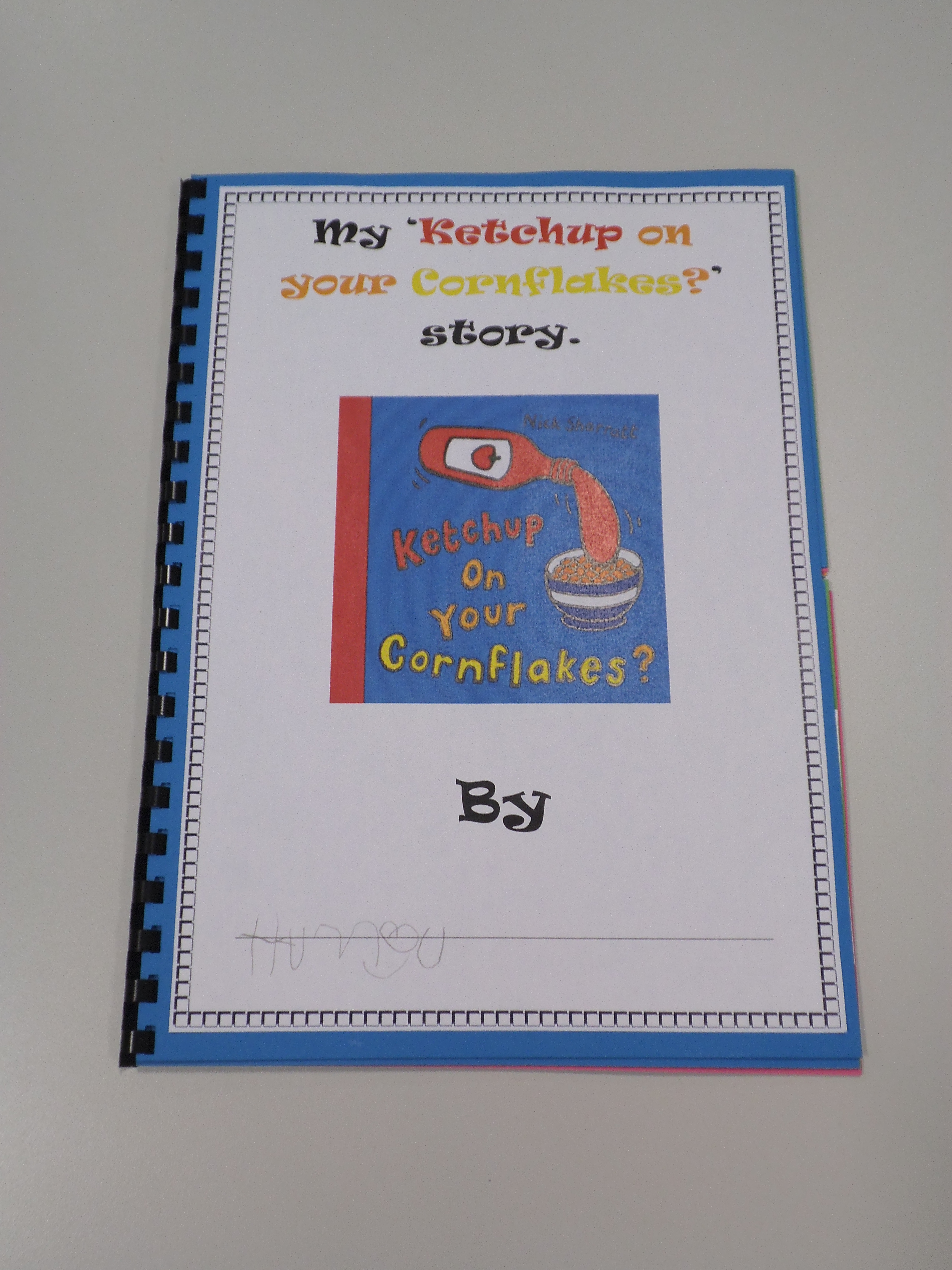 The final book we focused on was ‘Ketchup on your cornflakes?’ by Nick Sharratt, which linked into our Cafes topic. It is split-page book that invites children to laugh at the fantastic and weird food concoctions they can create.