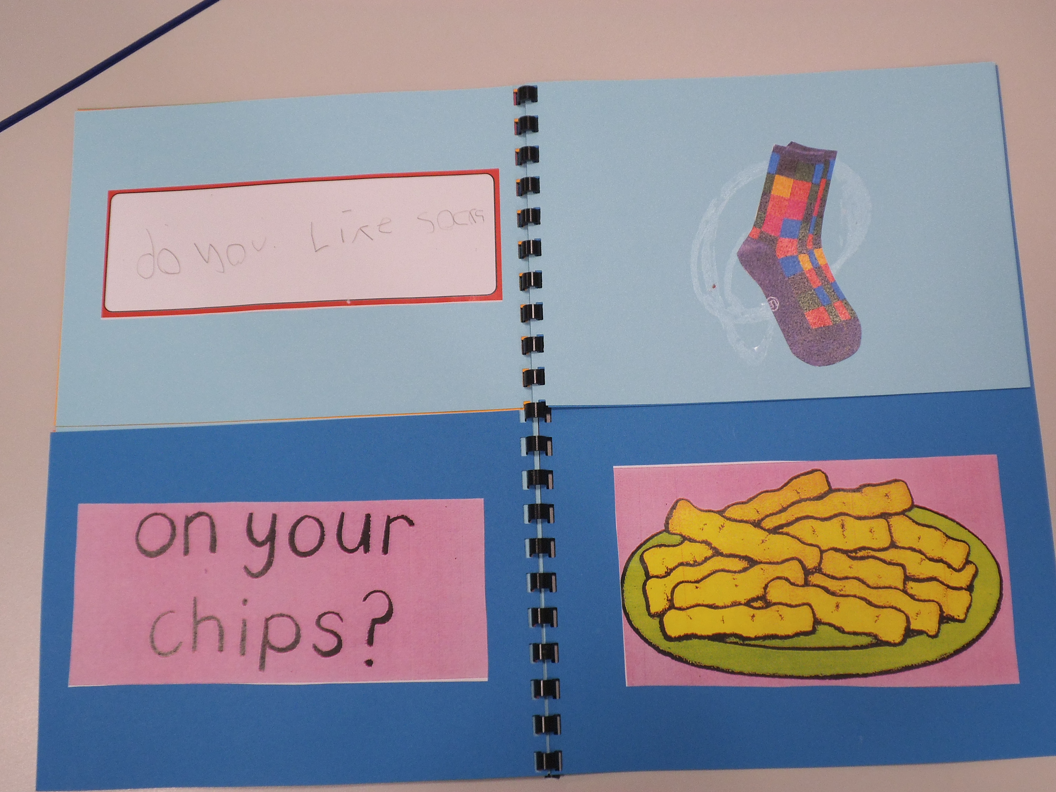The children were given their own blank split page book. They created their own pages using symbols, writing and pictures. Below are some examples of the interesting food concoctions they came up with!!!
