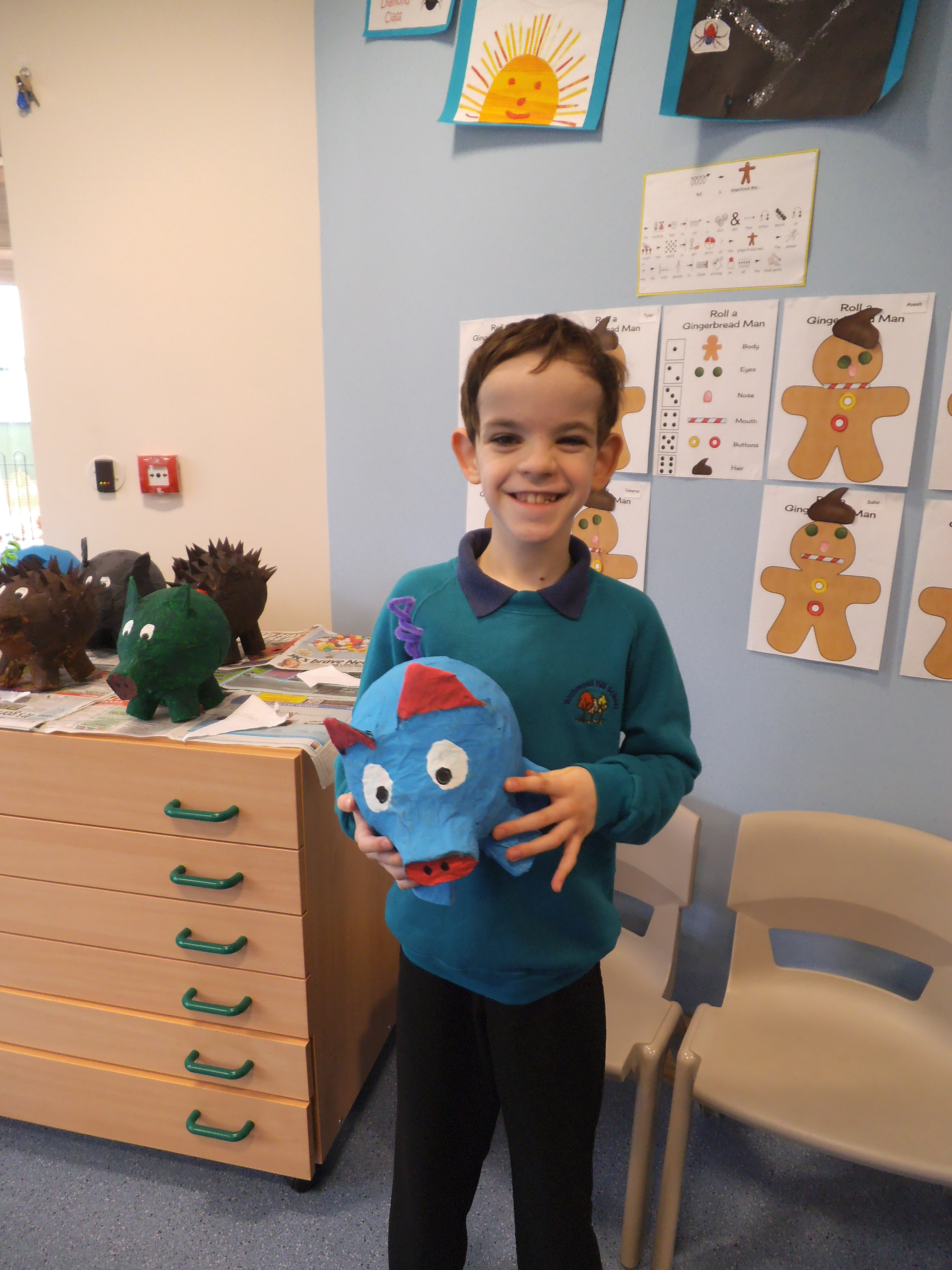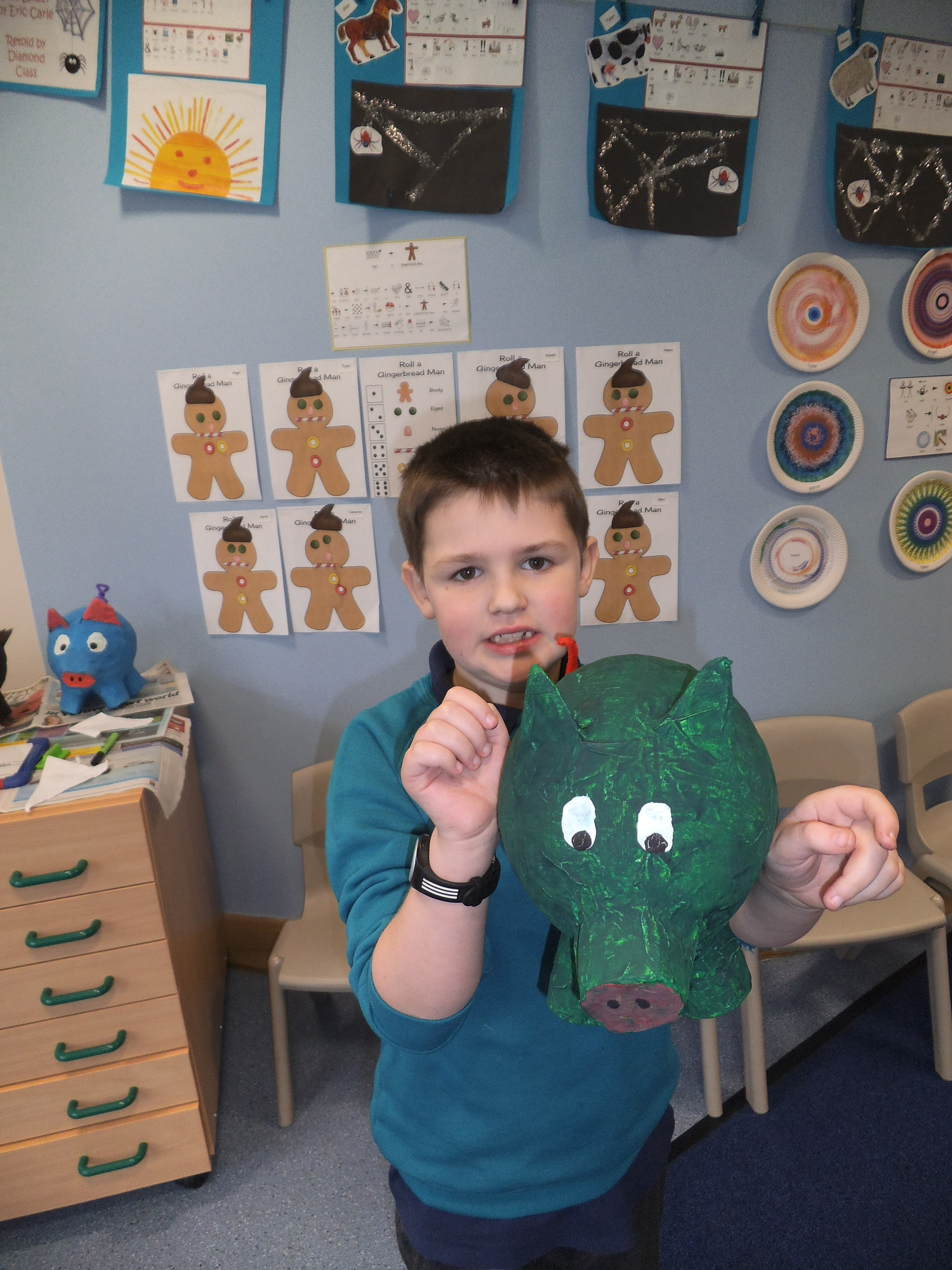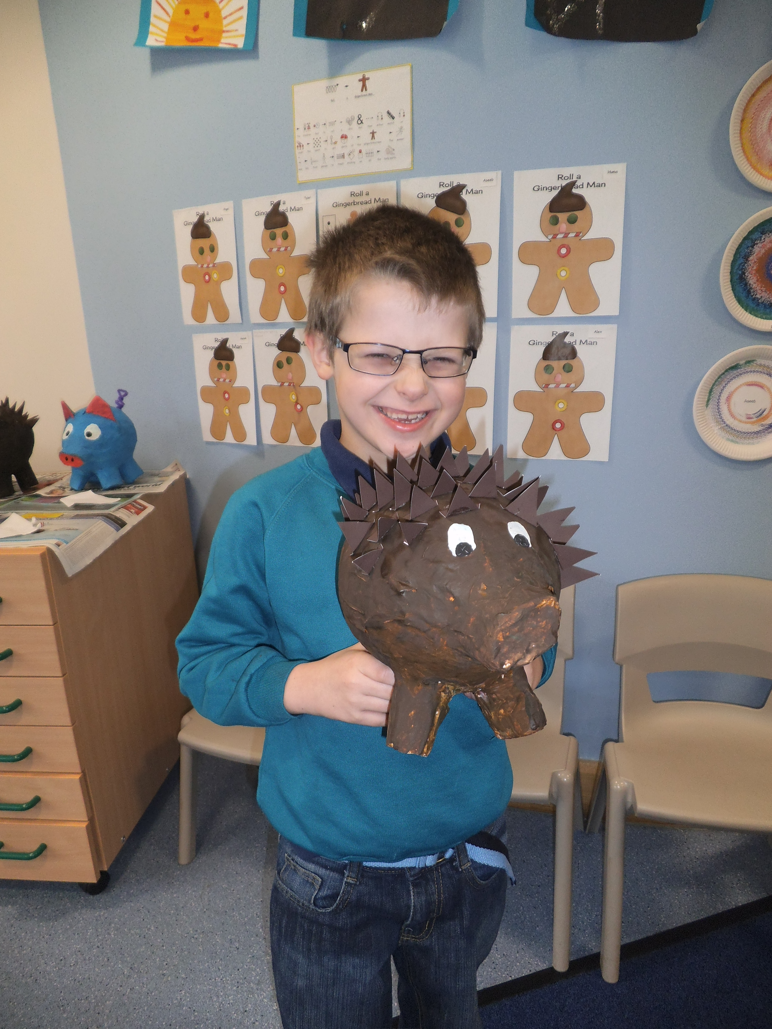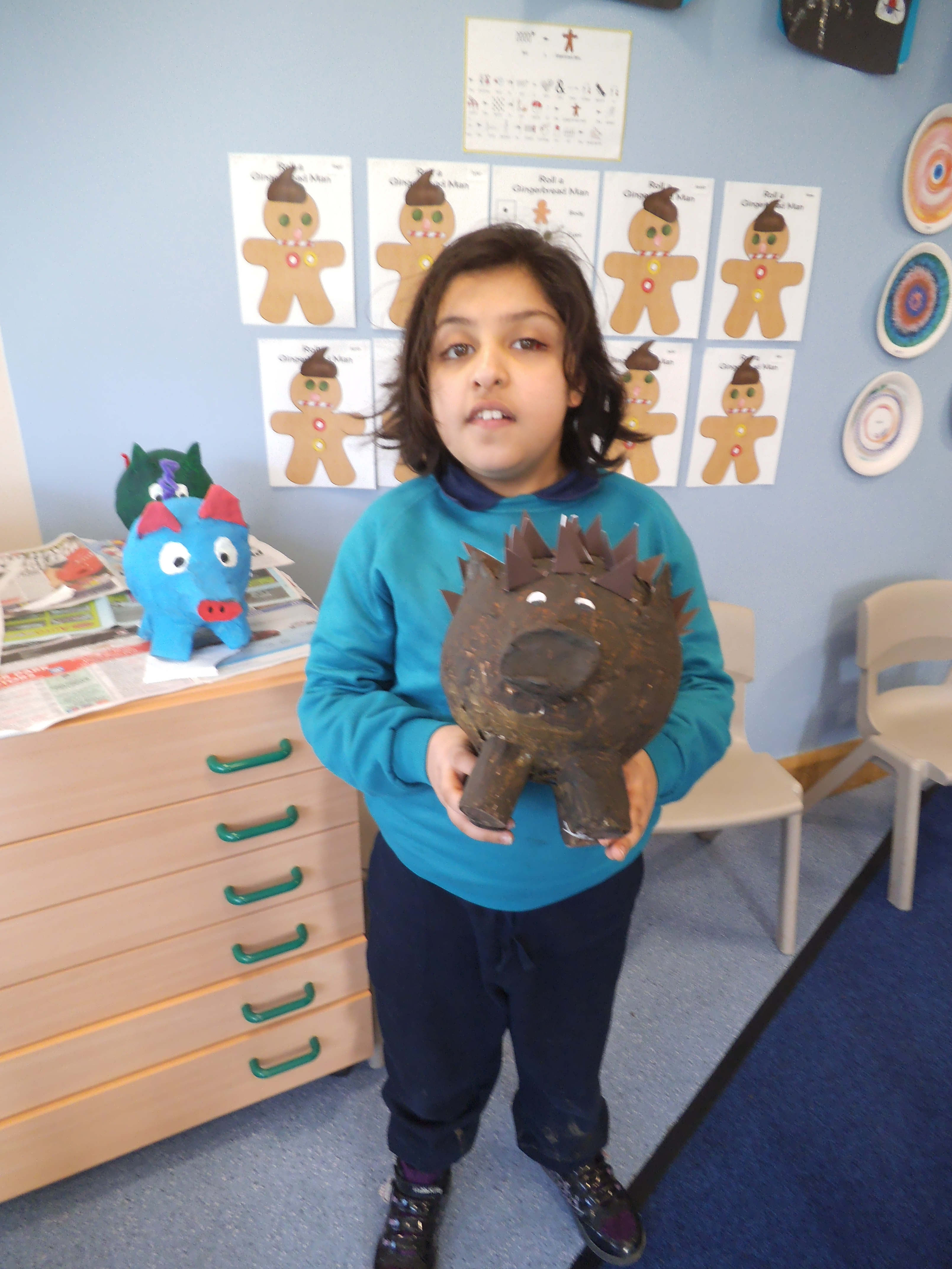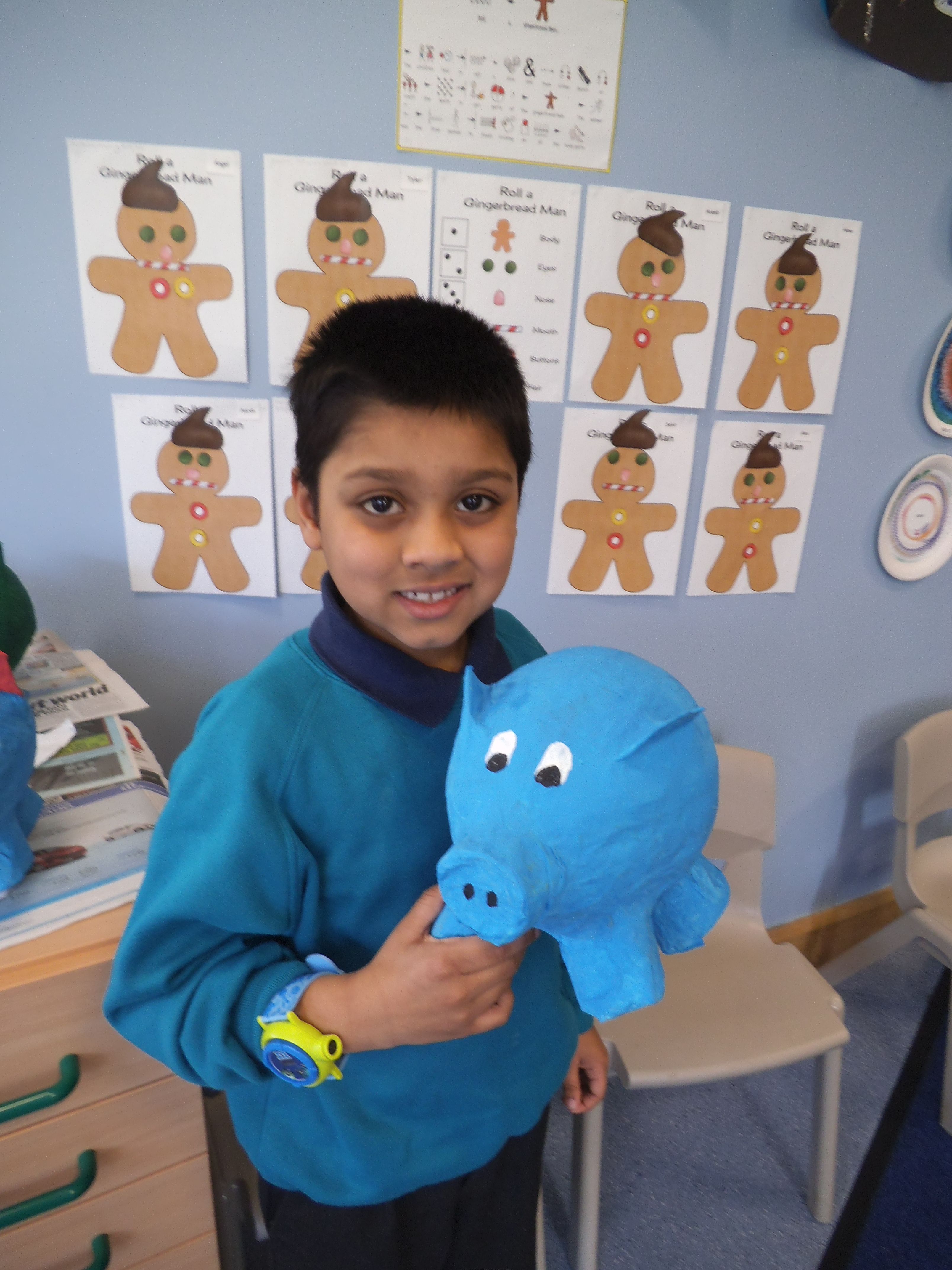 In topic the children enjoyed making their own money containers from paper mache and then painting them.