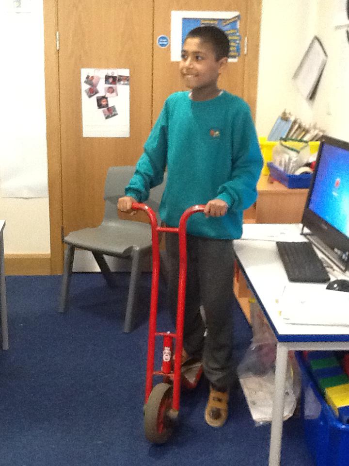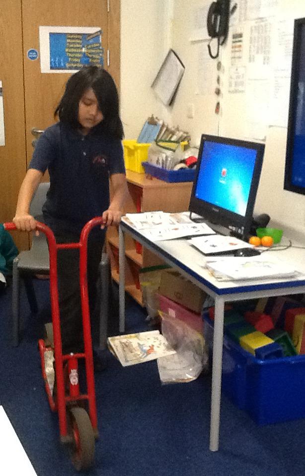 Our Literacy book is Elmer the elephant and we have been using different coloured pens and sticky paper to decorate him. We also have a soft toy of Elmer and have been making him run, jump and turn upside down.