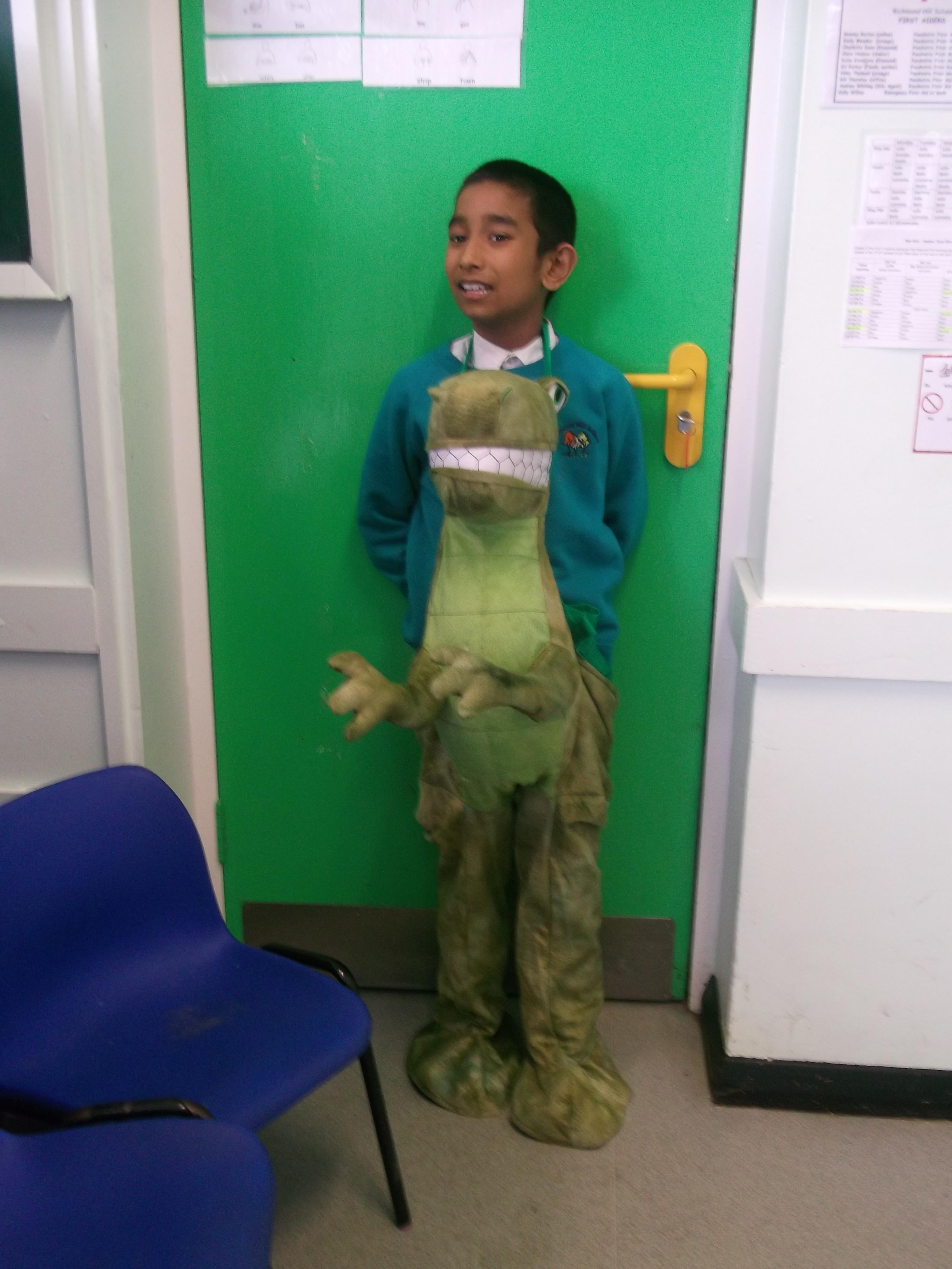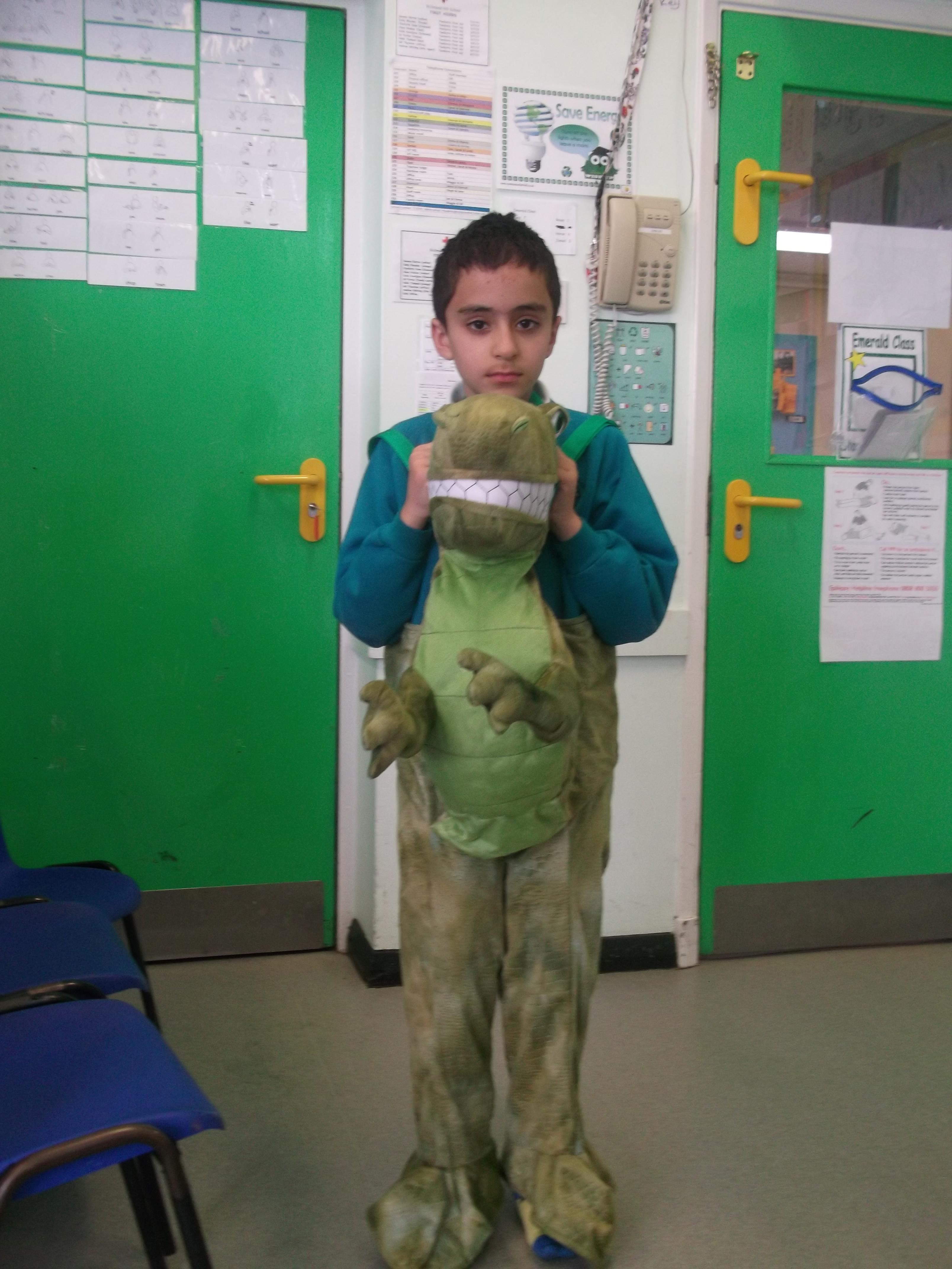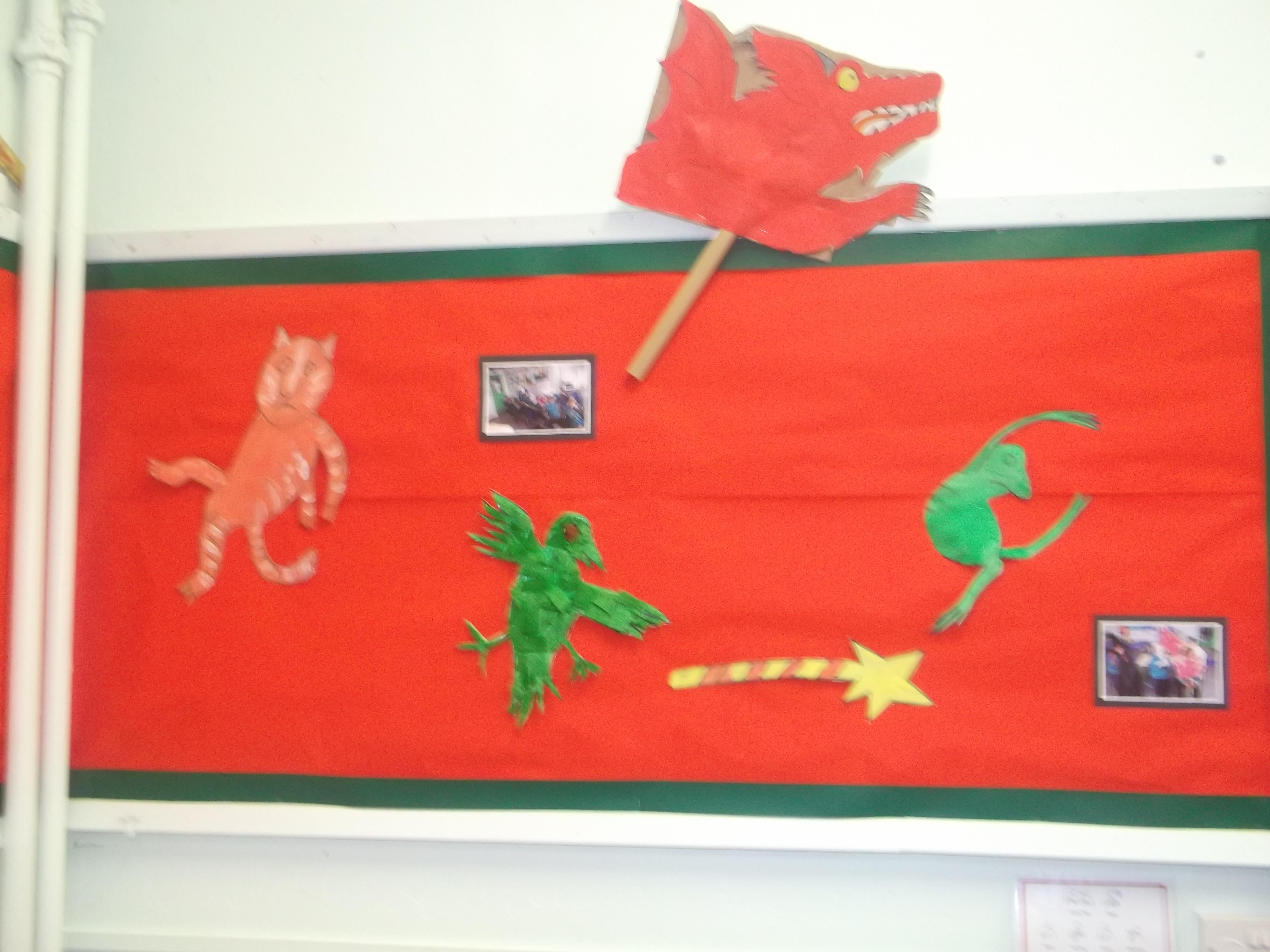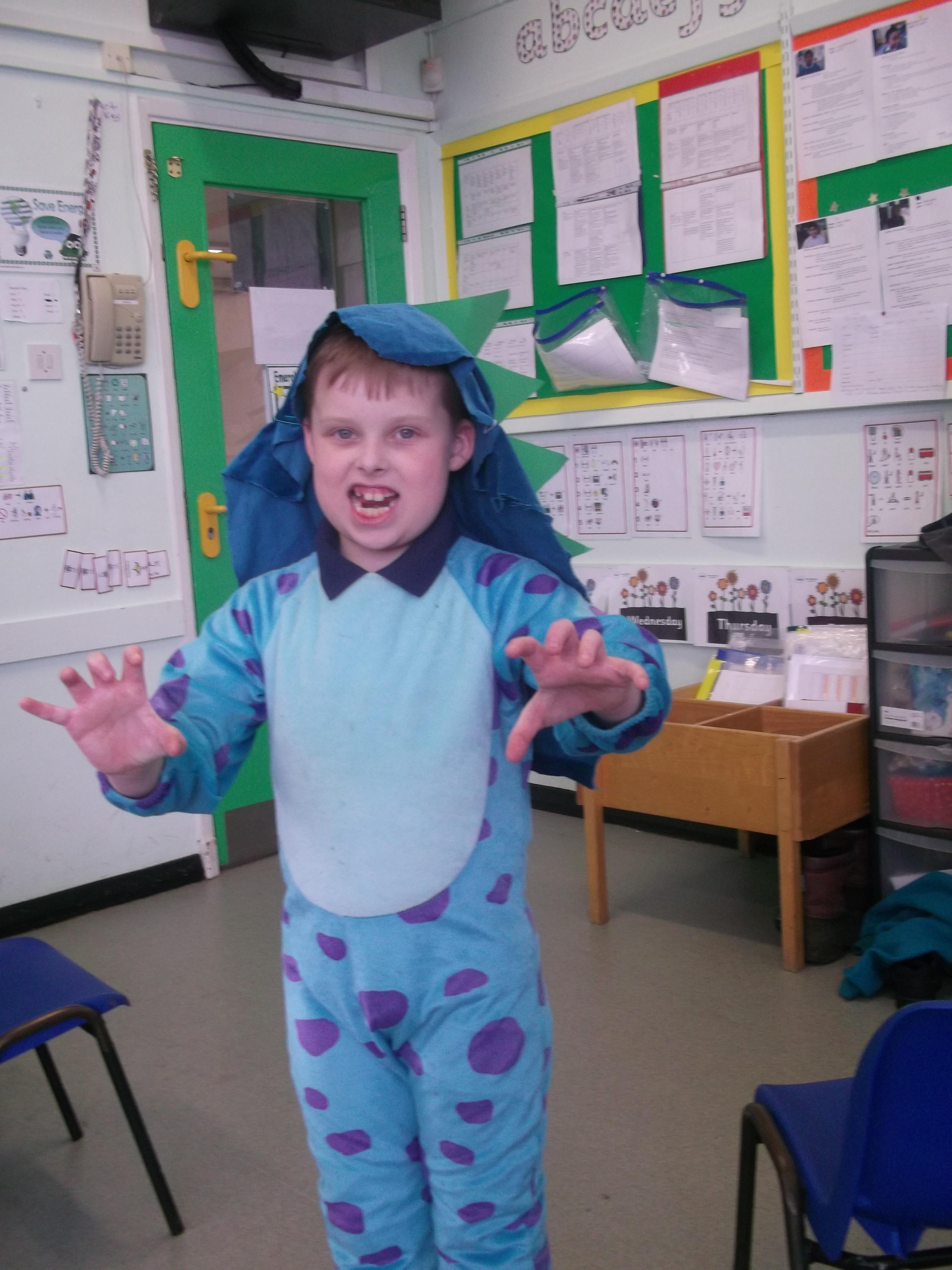 In Literacy we are reading story books about dinosaurs. We also have toy dinosaurs to use to role play with the stories. The children have enjoyed dressing up in dinosaur costumes and we have laminated photos of them and made them into puppets.