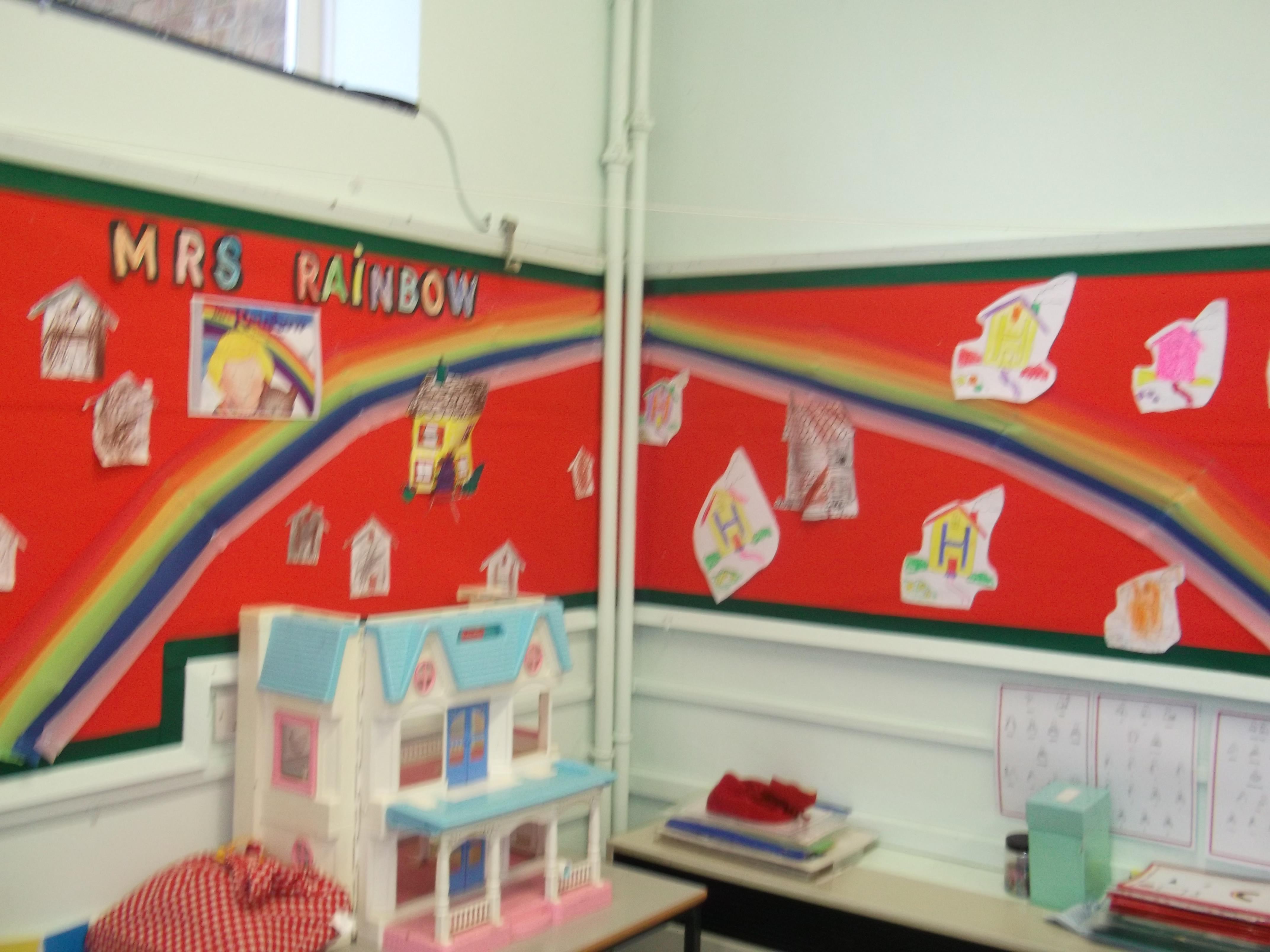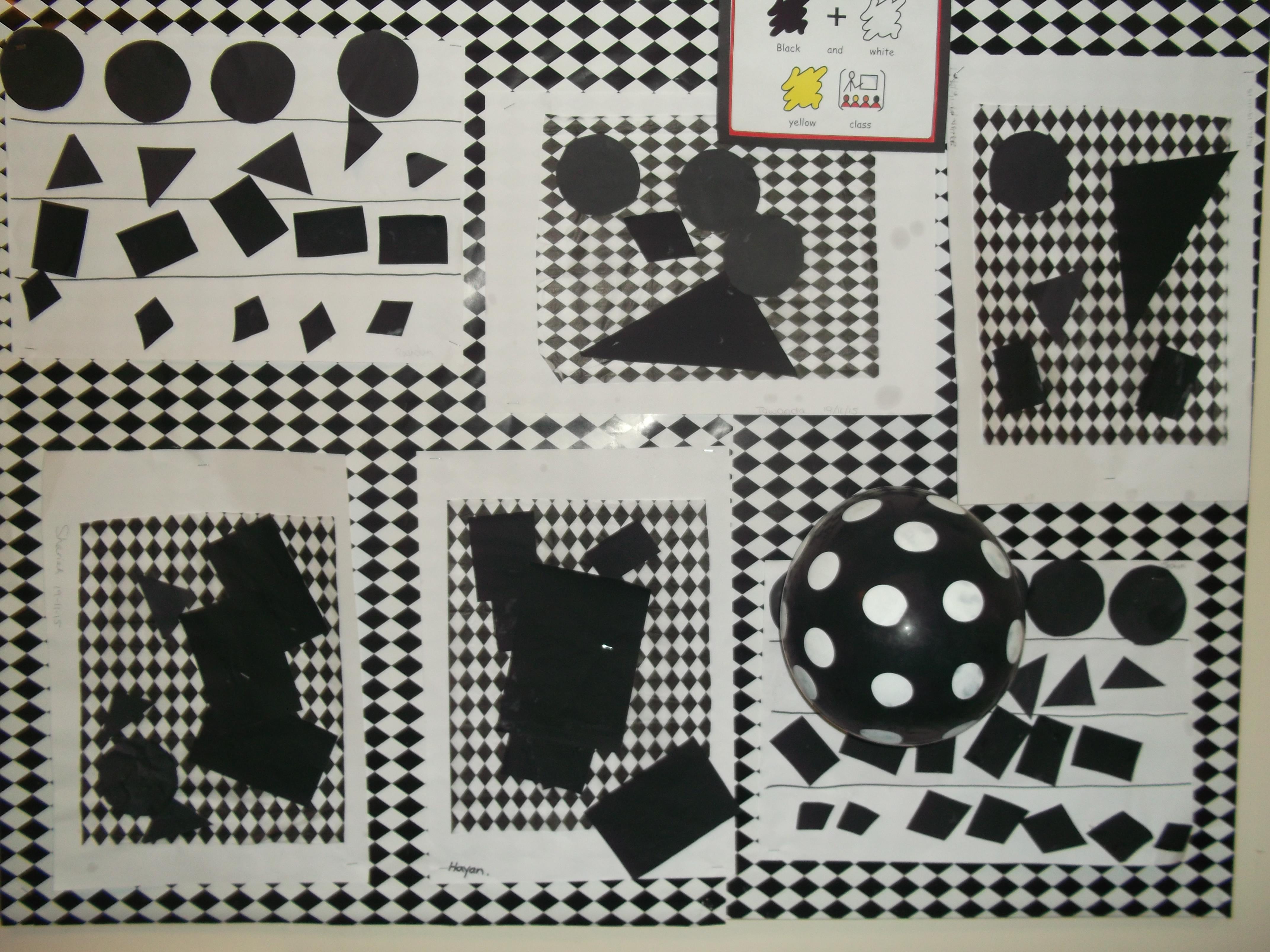 The children enjoyed our Literacy book “Mrs Rainbow” and on Tuesdays came to school wearing the colour of the week for assembly. They were very motivated by work on black and white when we made shadows with objects and drew our silhouettes.