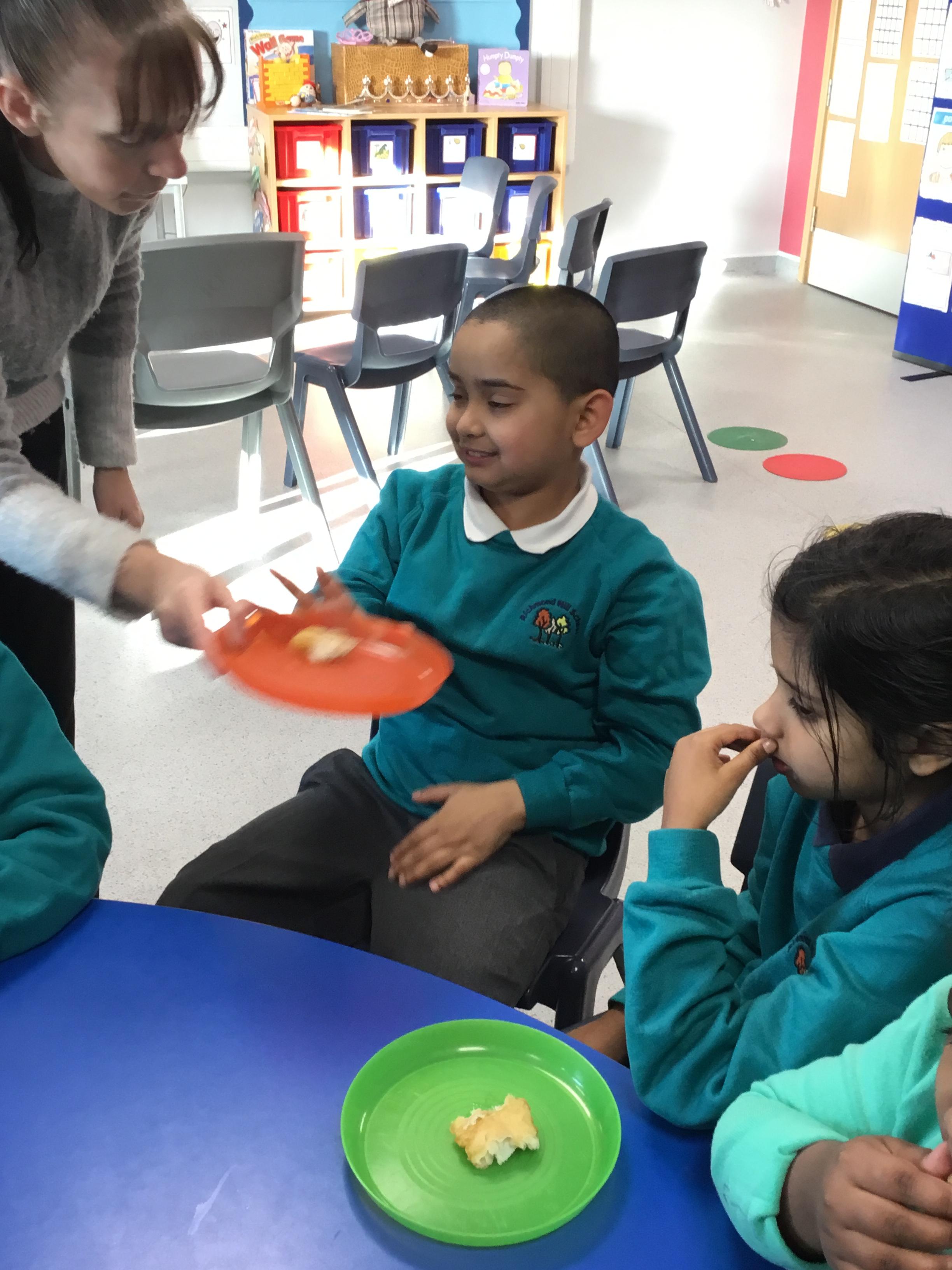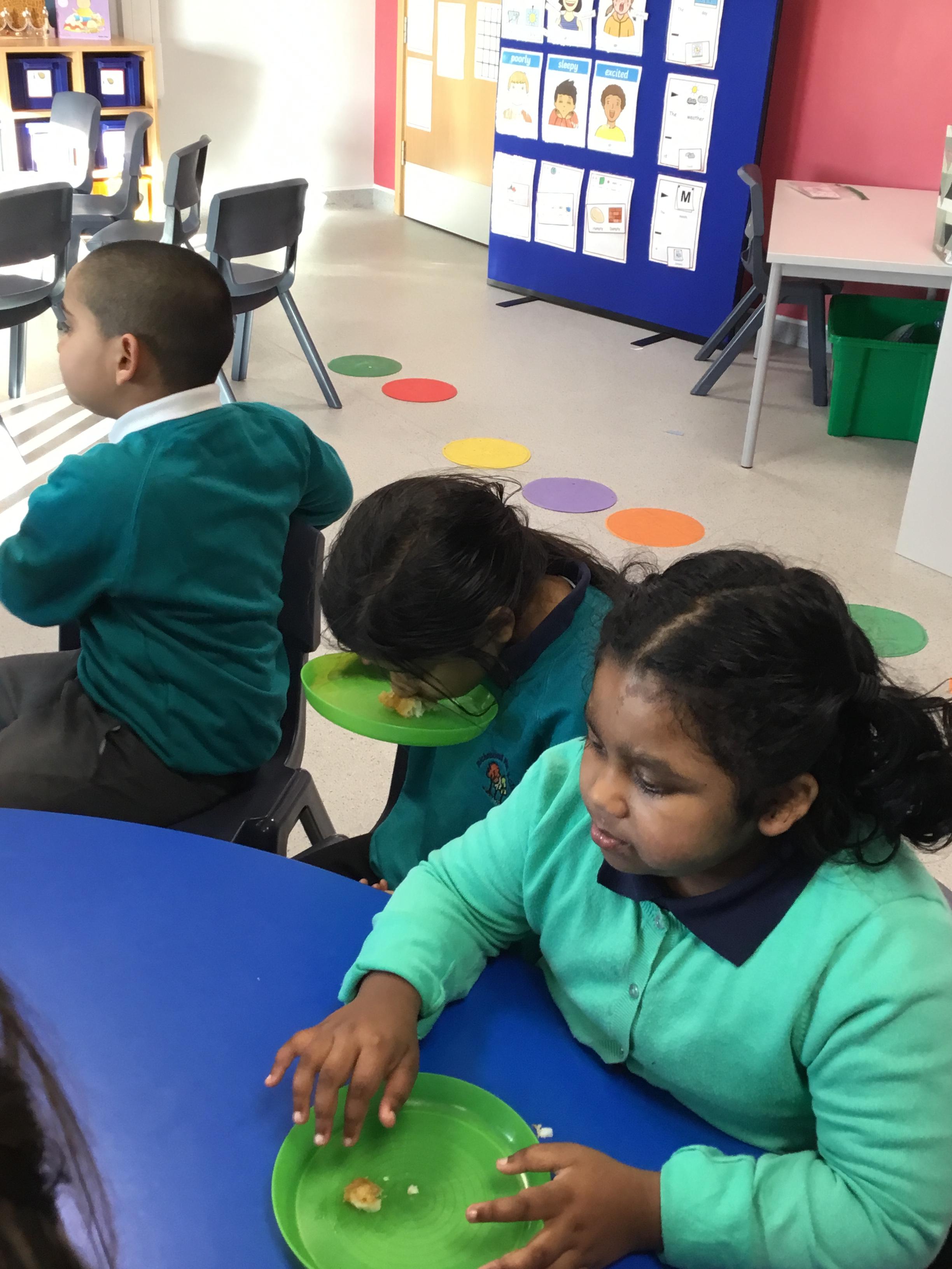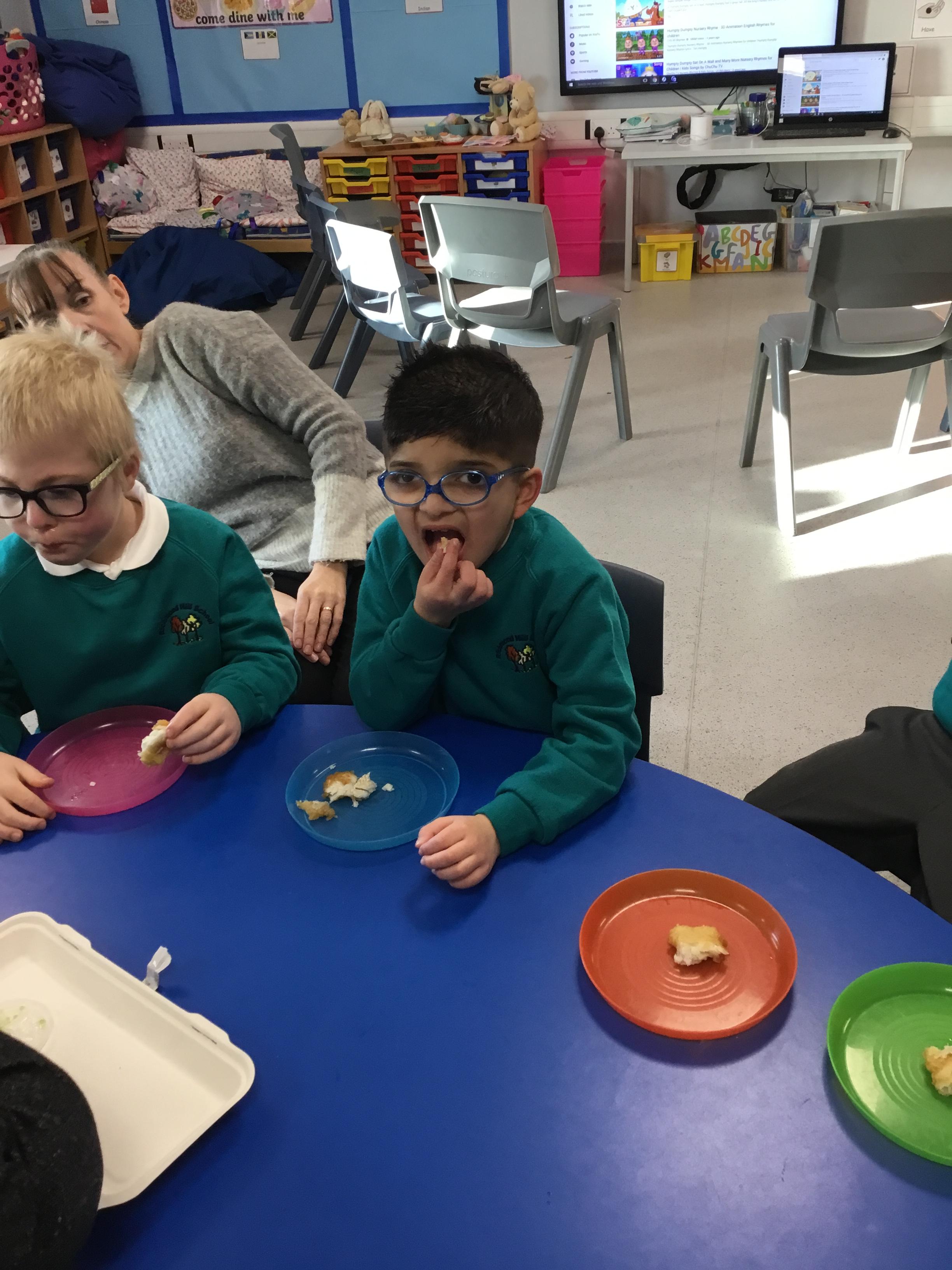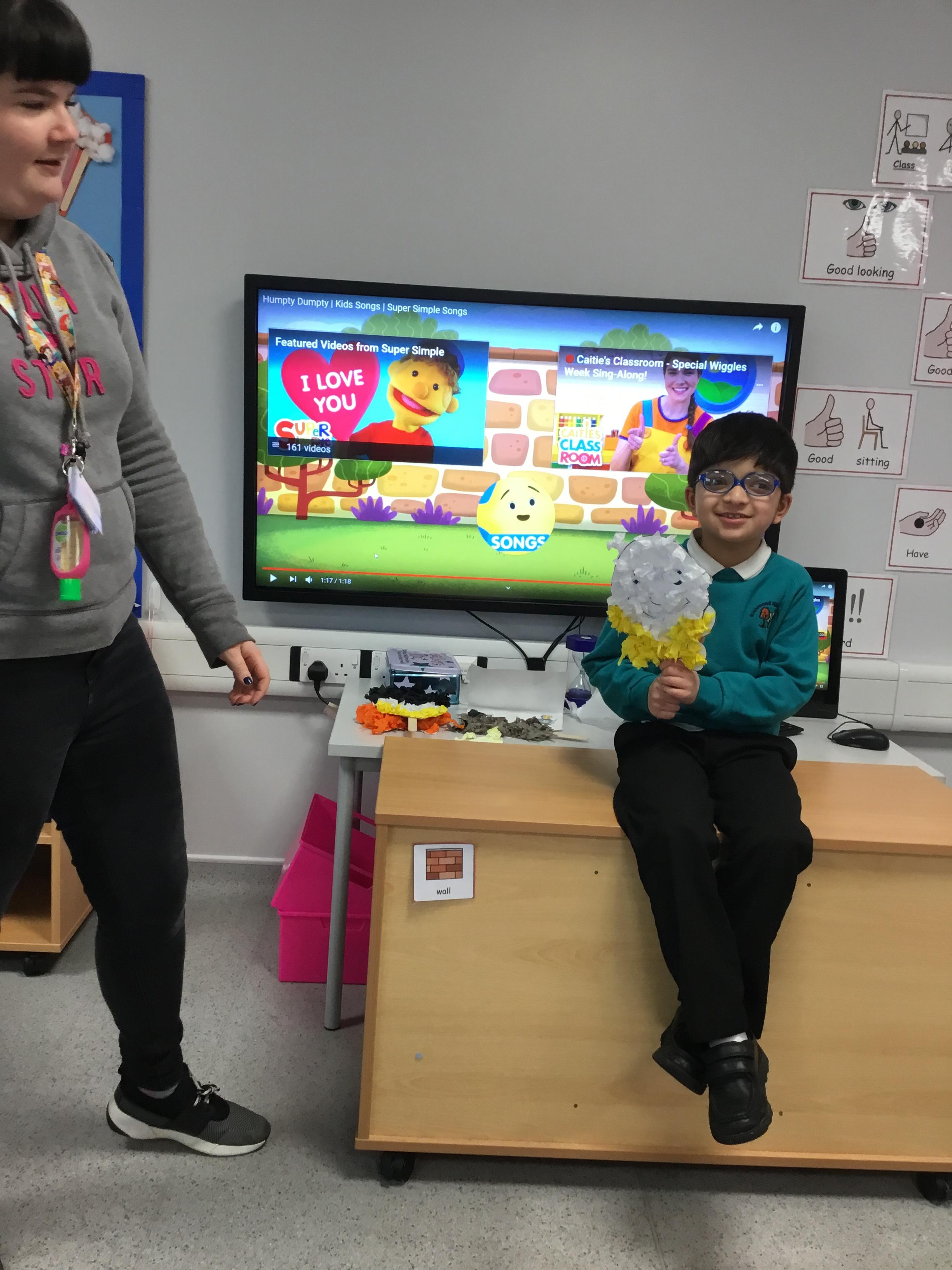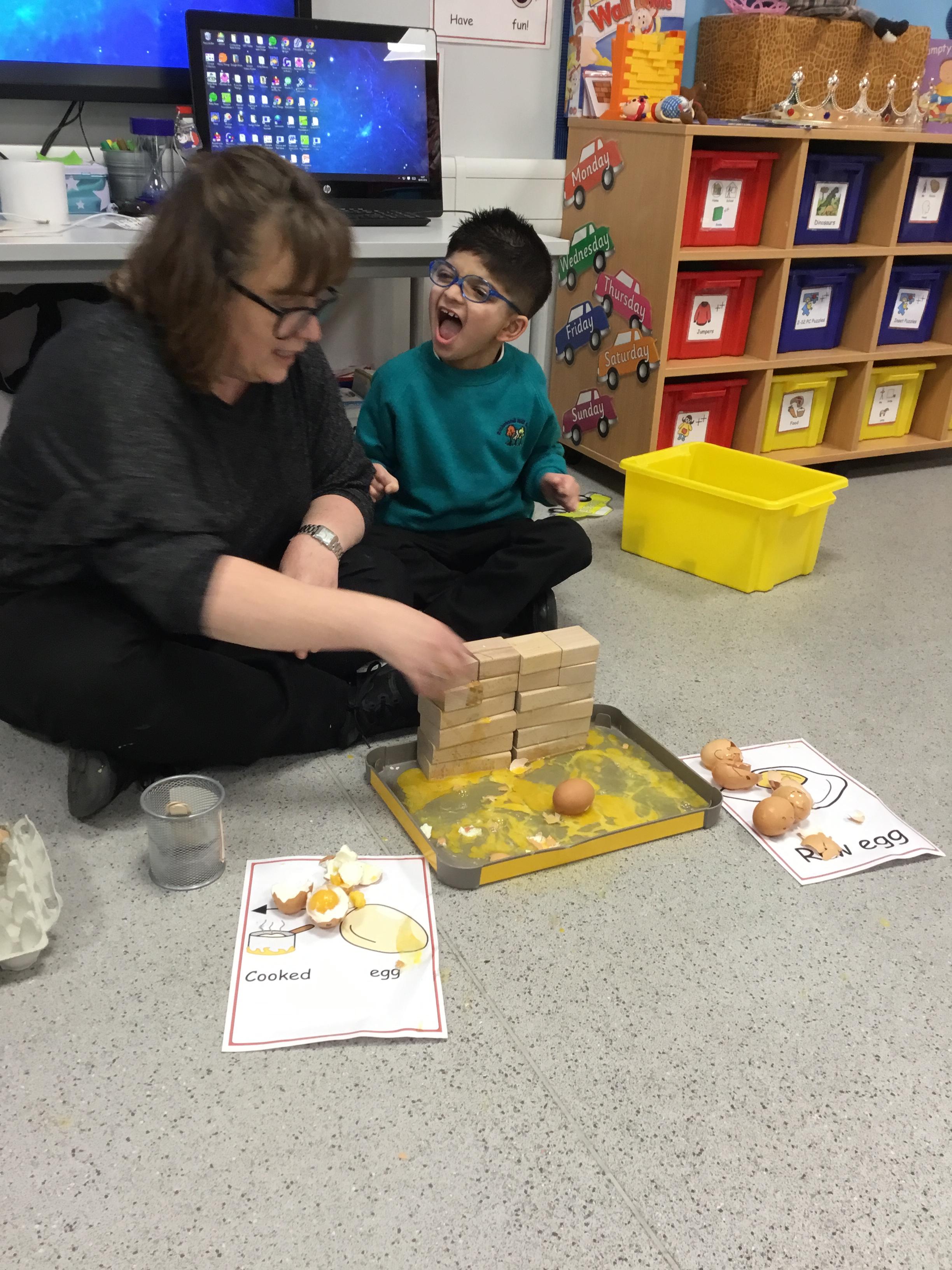 This week we welcomed a new child to our class Jake who has settled really well, its like he has always been with us. We've had a busy few days starting Humpty Dumpty, we had the most fun in Science this week which was linked to Humpty Dumpty. In the lesson we threw eggs off the wall and sang the nursery rhyme, I had sneakily cooked some of the eggs before the lesson and the children had to see if they had a raw egg or a cooked egg when it fell off the wall. The photos are below.