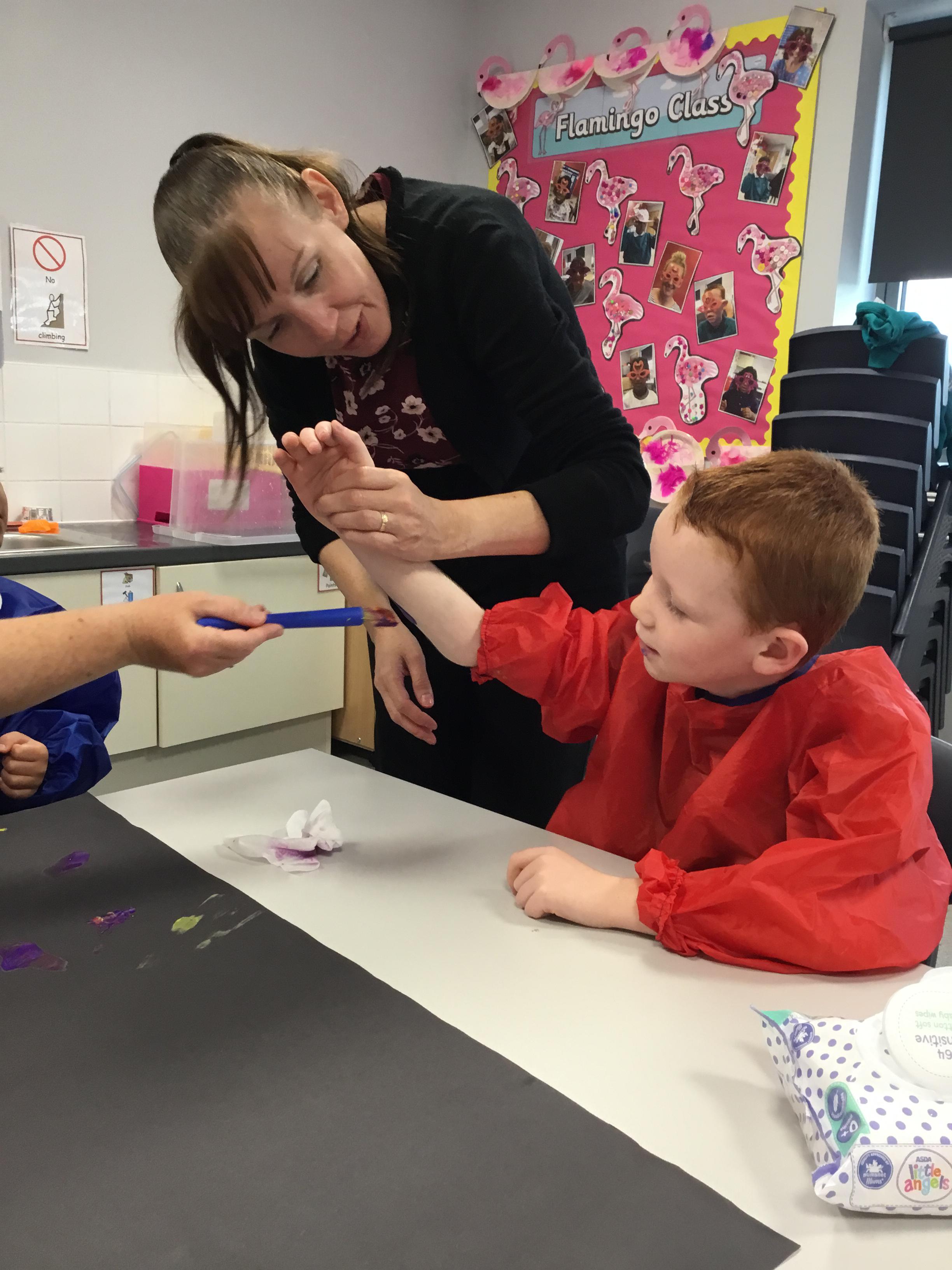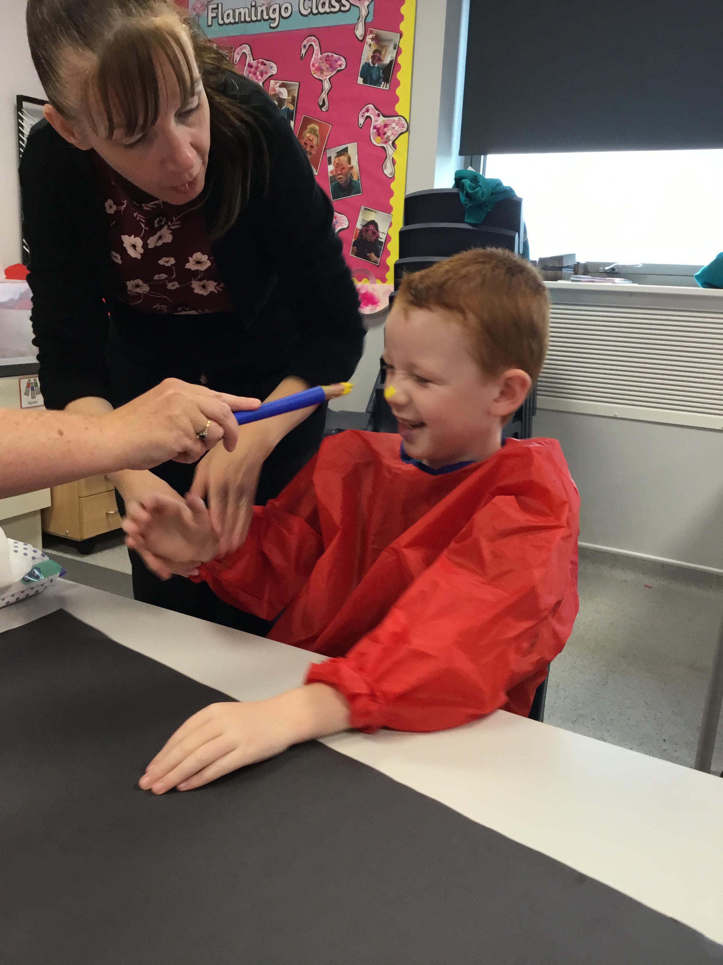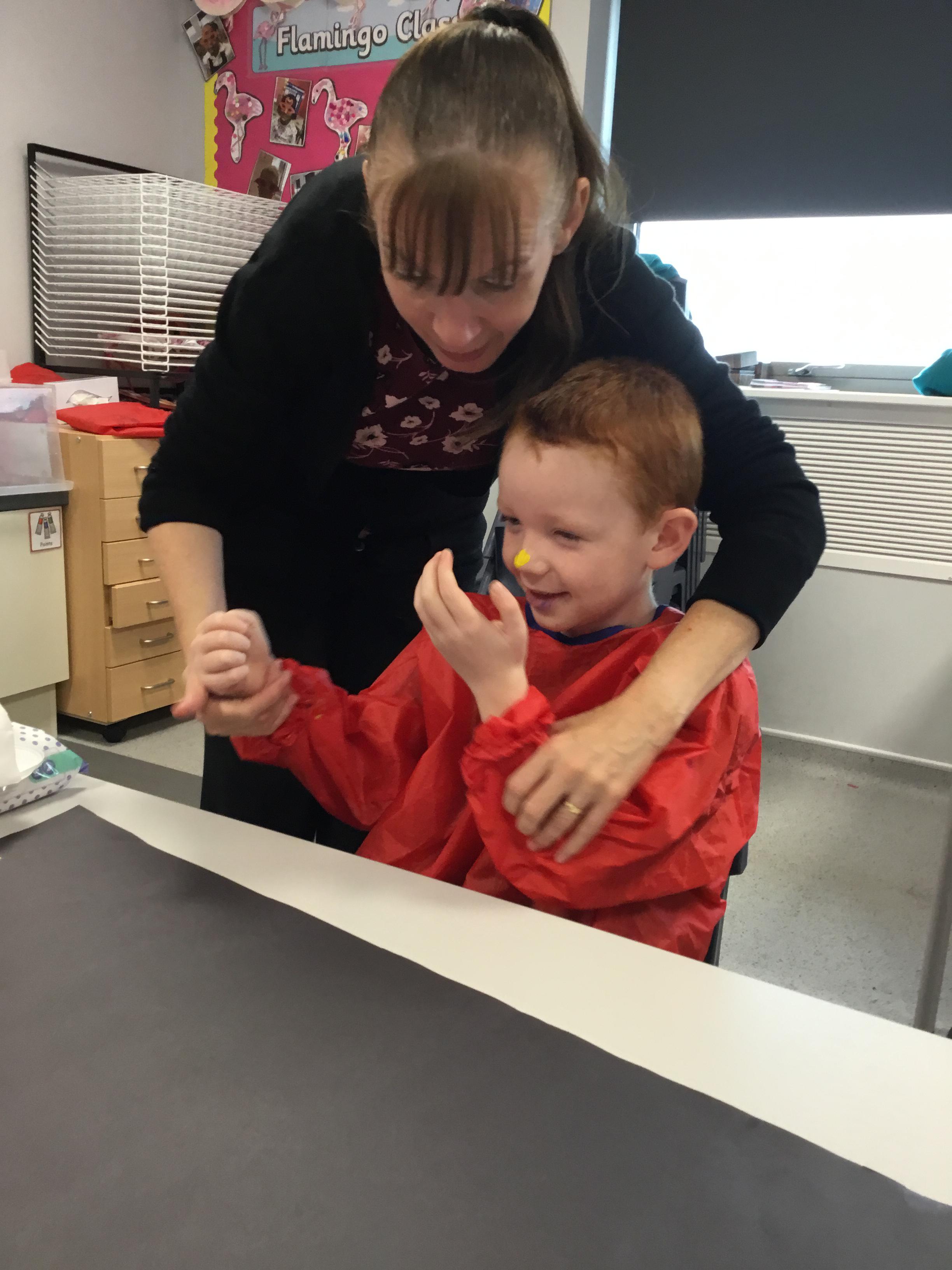 We have been learning about body parts through painting with our hands, fingers, nose, arms and feet!