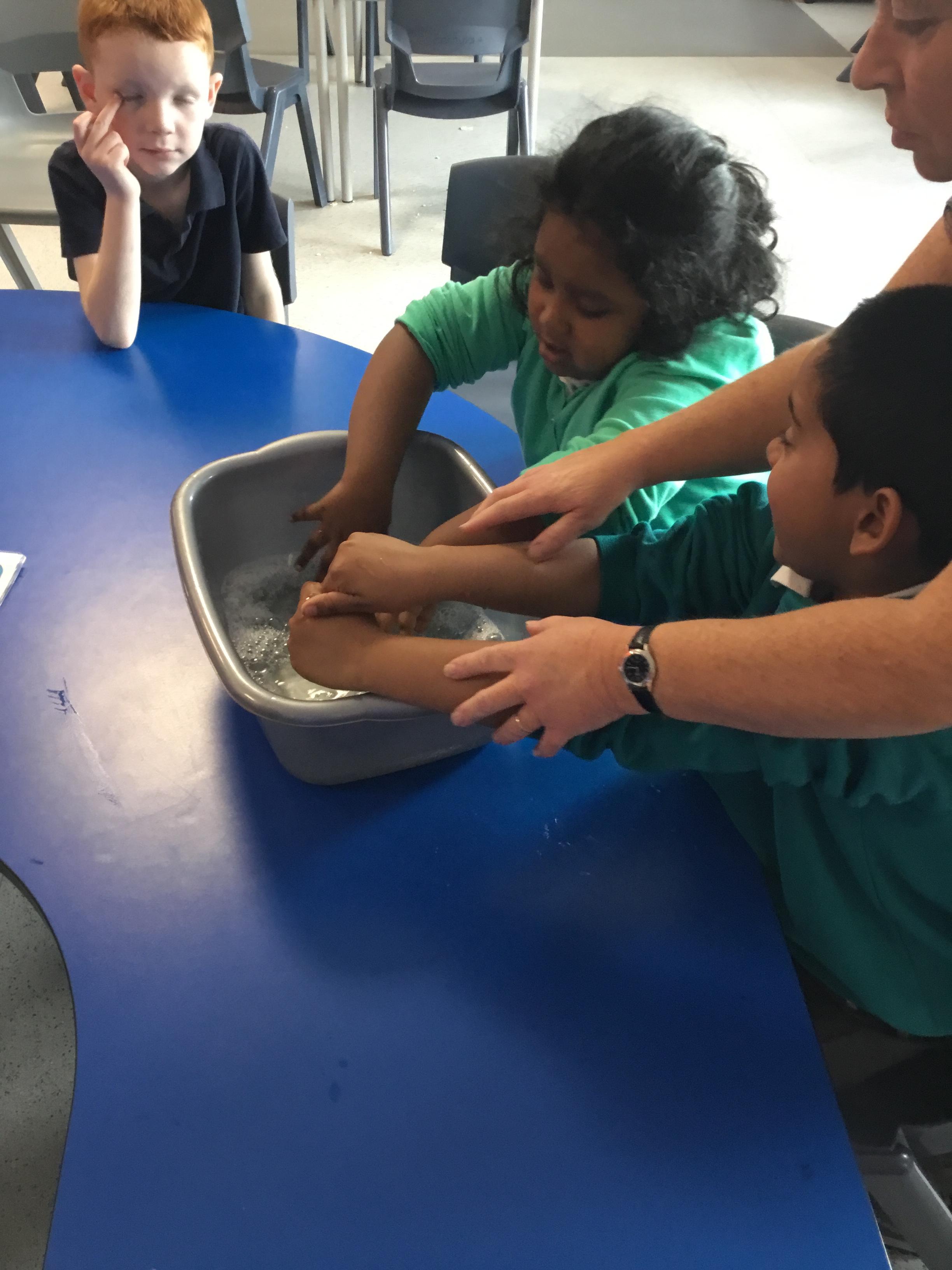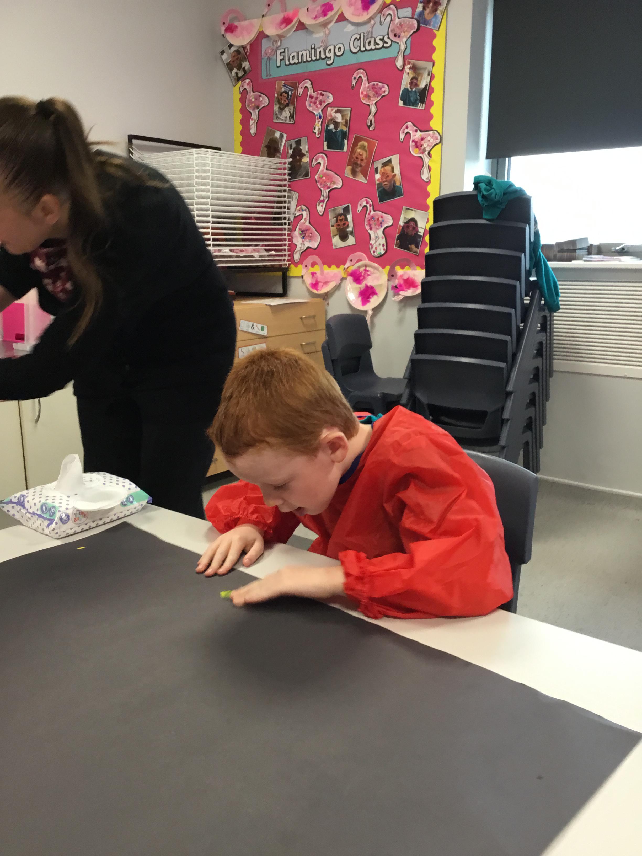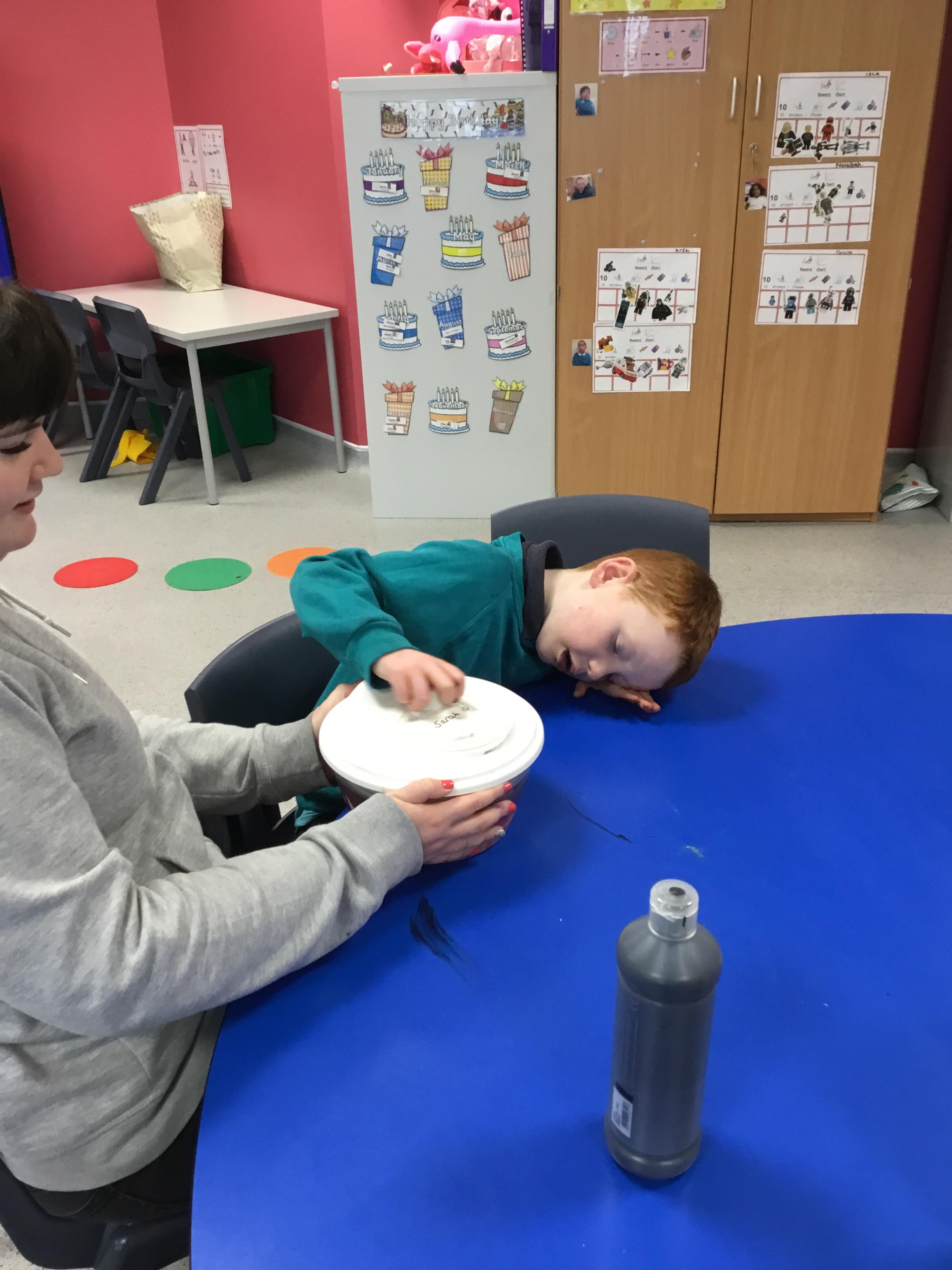 We have been learning about body parts through painting with our hands, fingers, nose, arms and feet!
