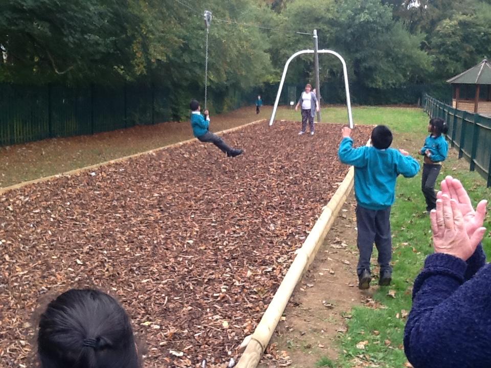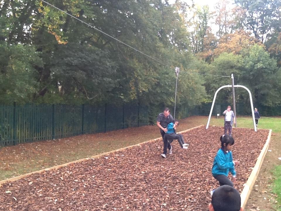 Flamingo class and Green class who are two site buddies meeting up to try the new zip-wire and have a shared party!