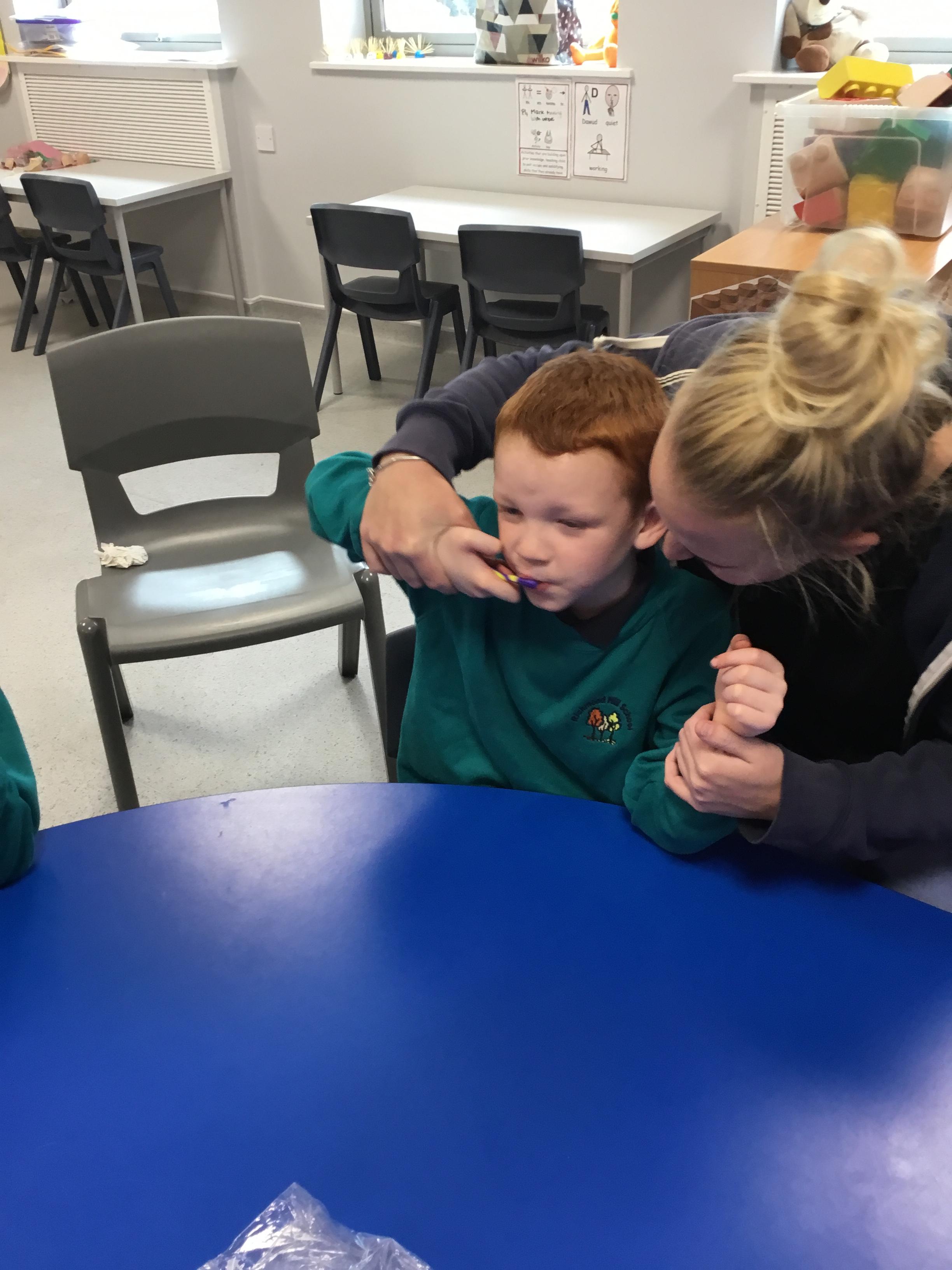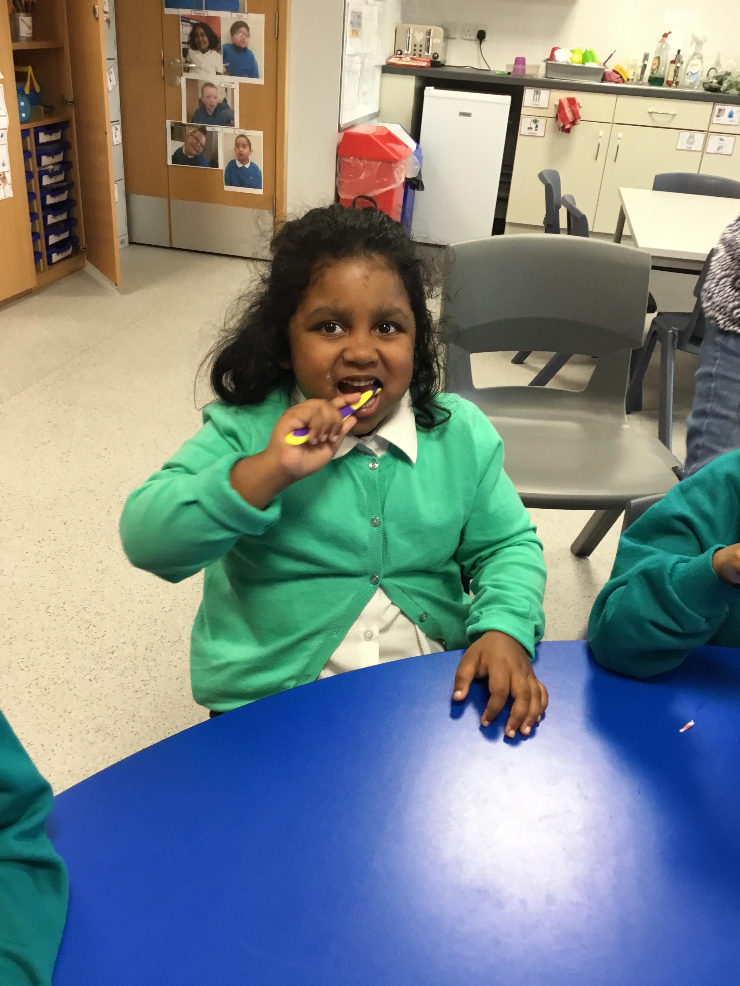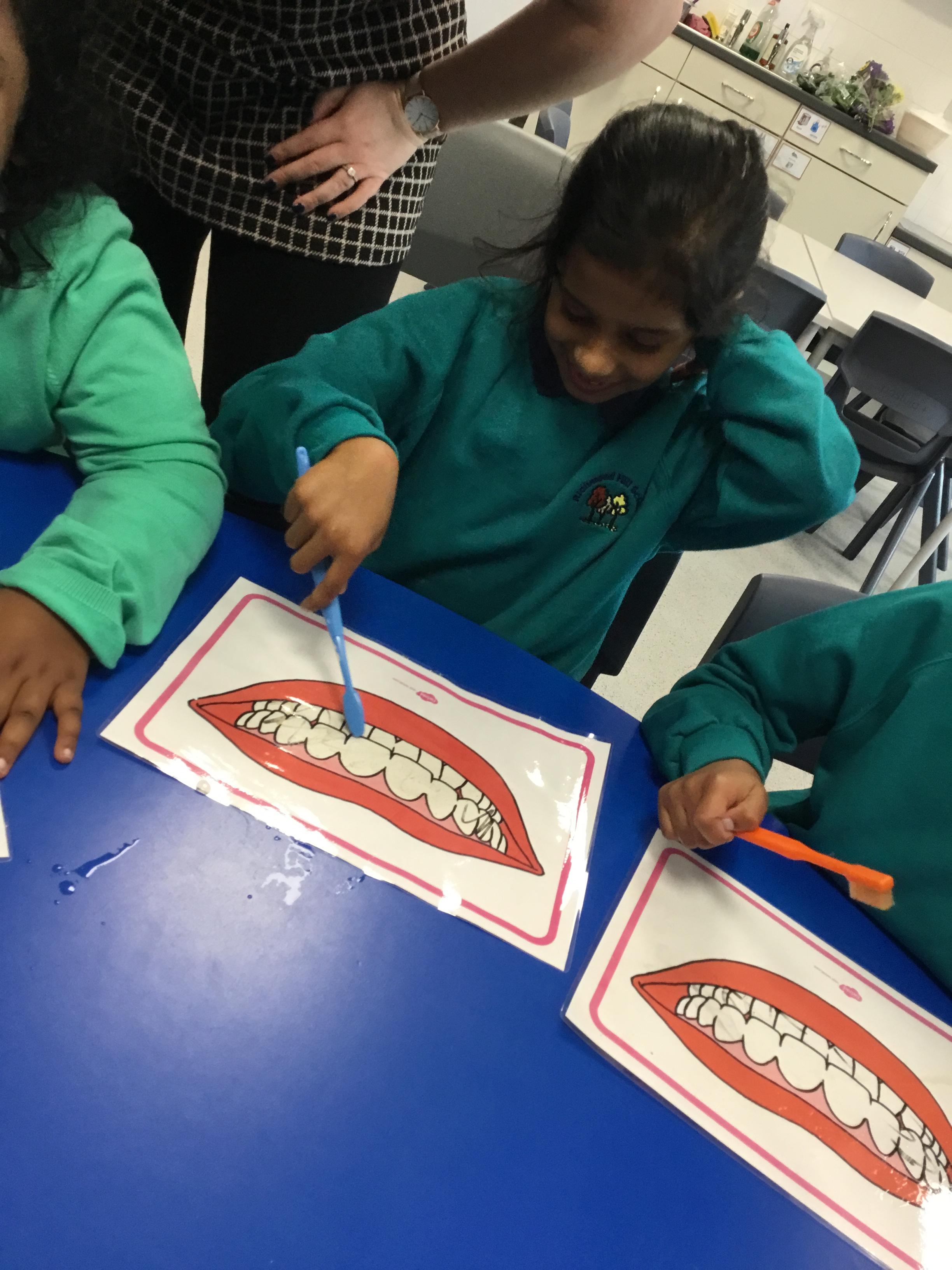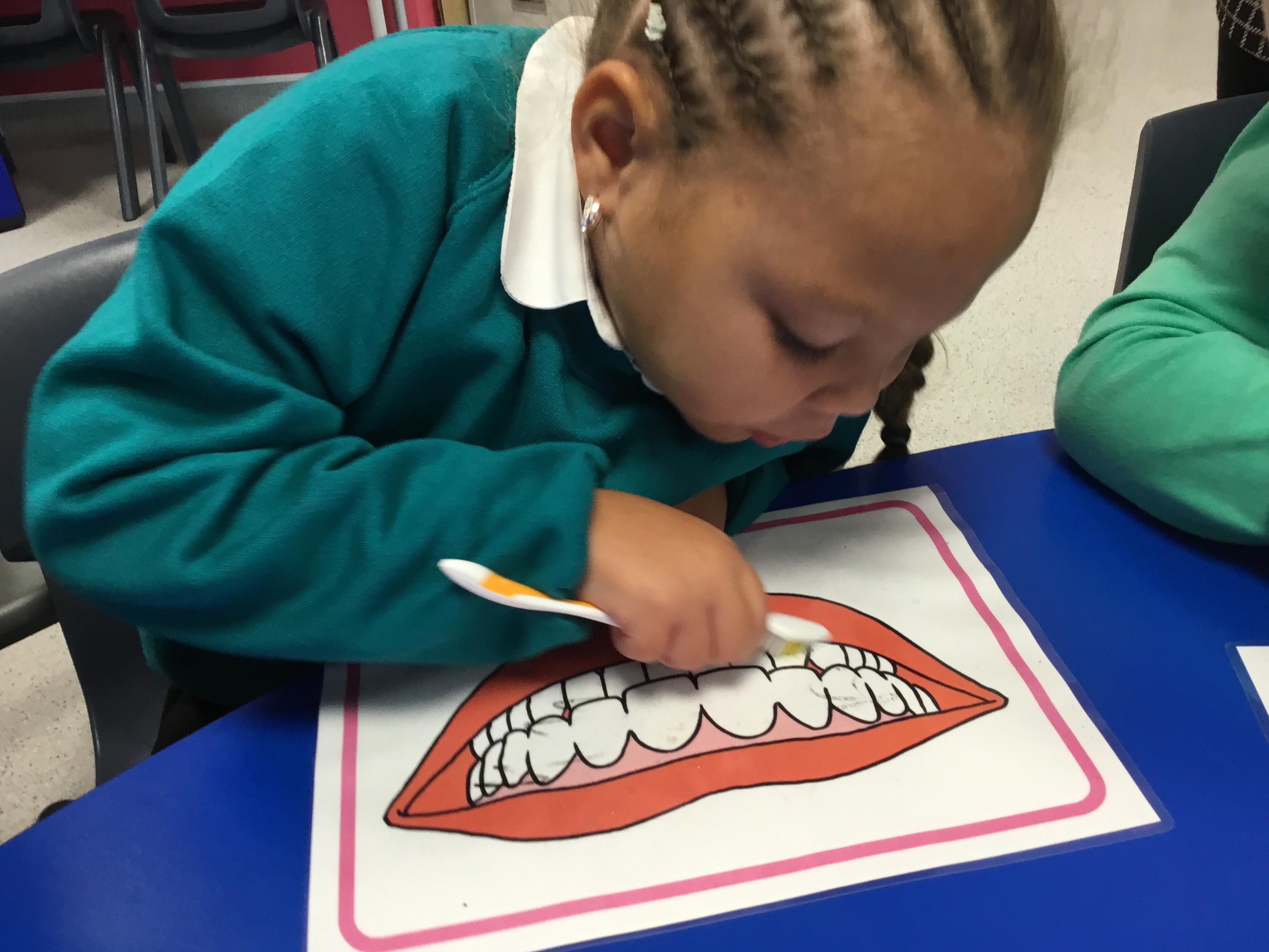For our topic work we practiced cleaning our teeth!