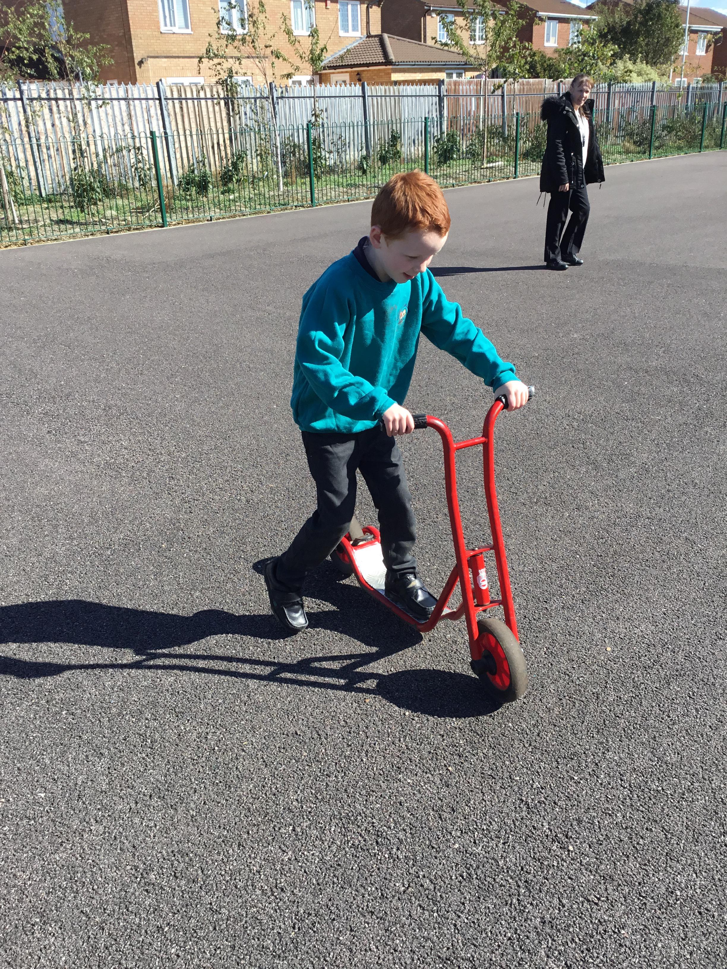 In Flamingo class we have been learning how to kick a ball and ride bikes!