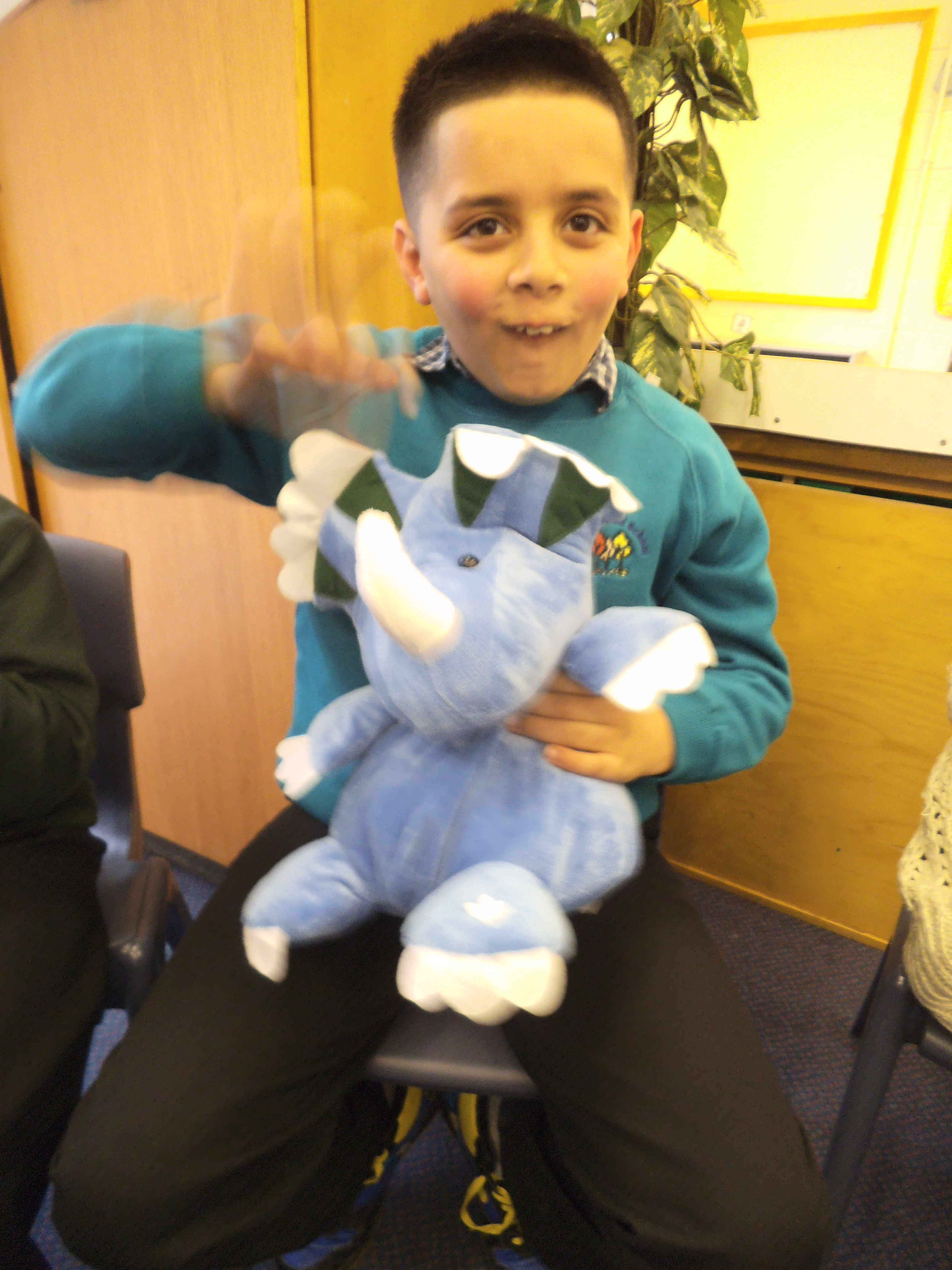 Today we got a new class pet dinosaur. The children met him, stroked him and we thought of what we could call him. The class decided to call him 'Blue'.