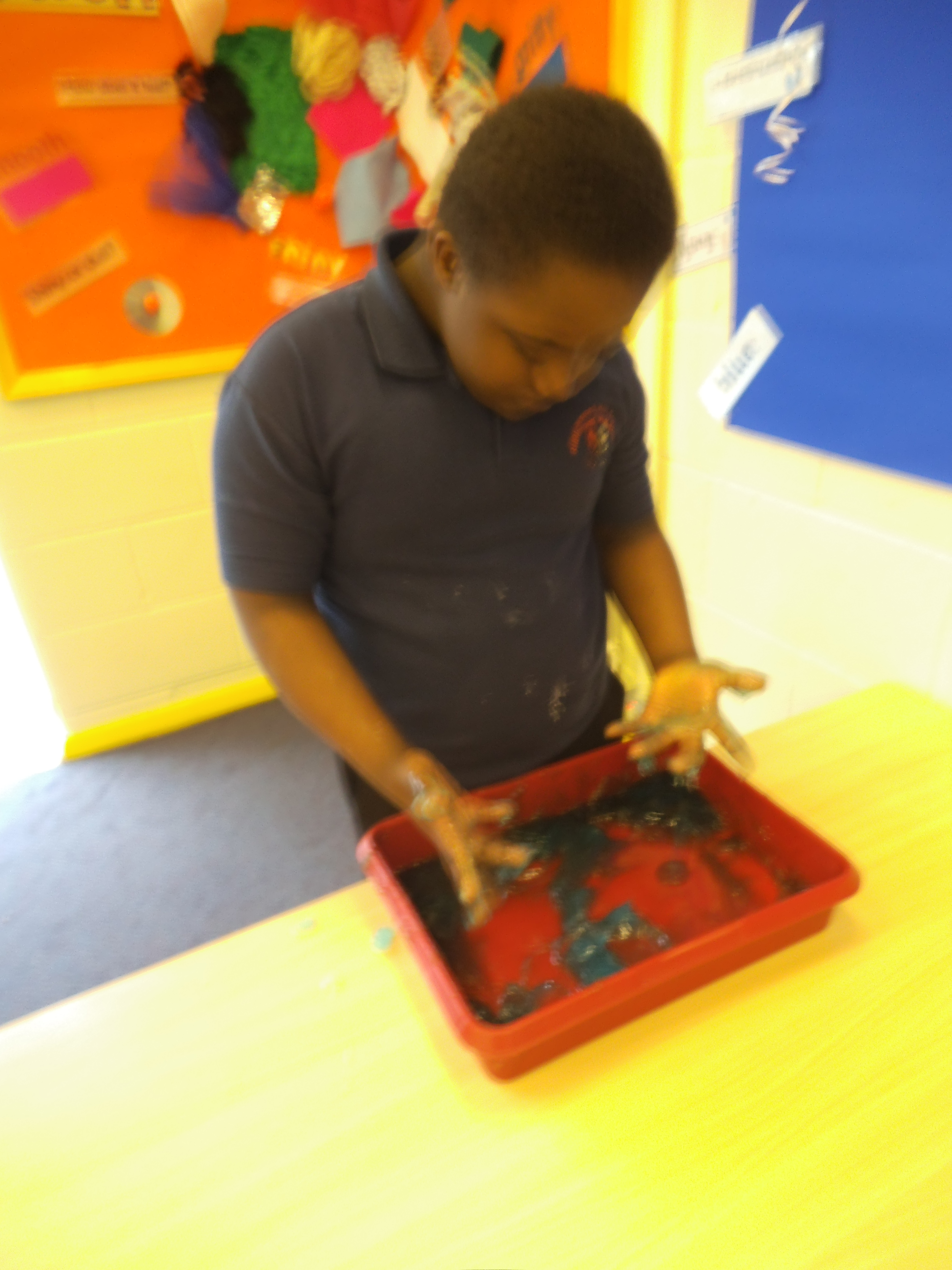 We had a sensory afternoon where the children got rather messy feeling different substances with their hands and feet!