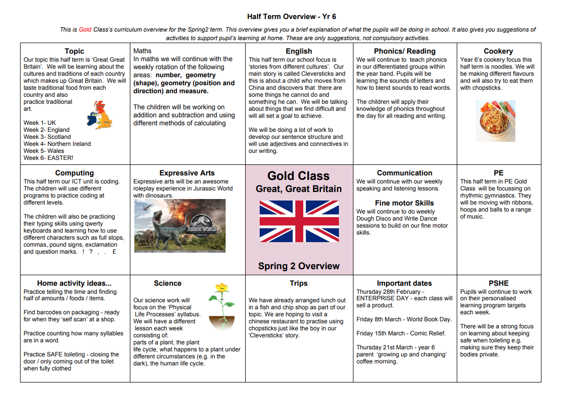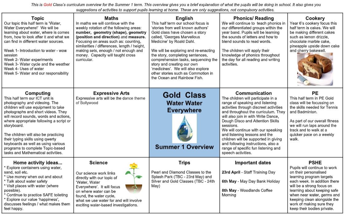 Above is the curriculum overview for Gold Class this half term, please take a look.