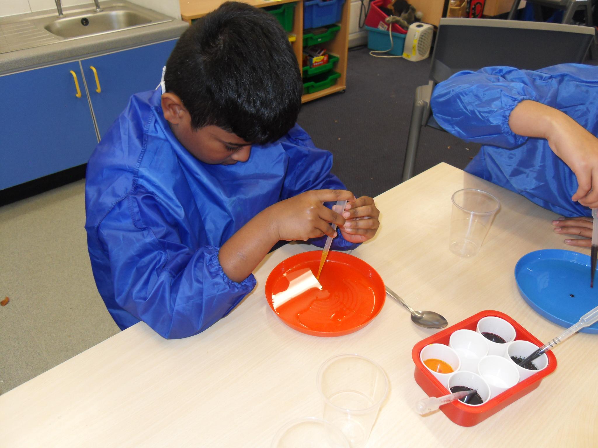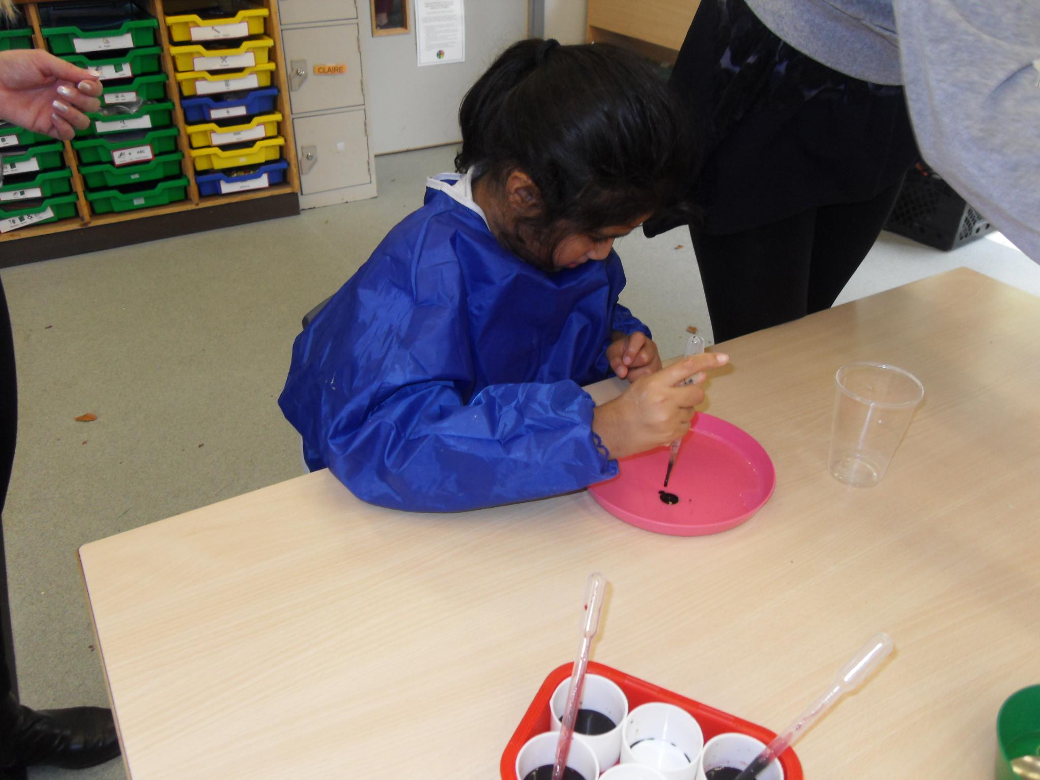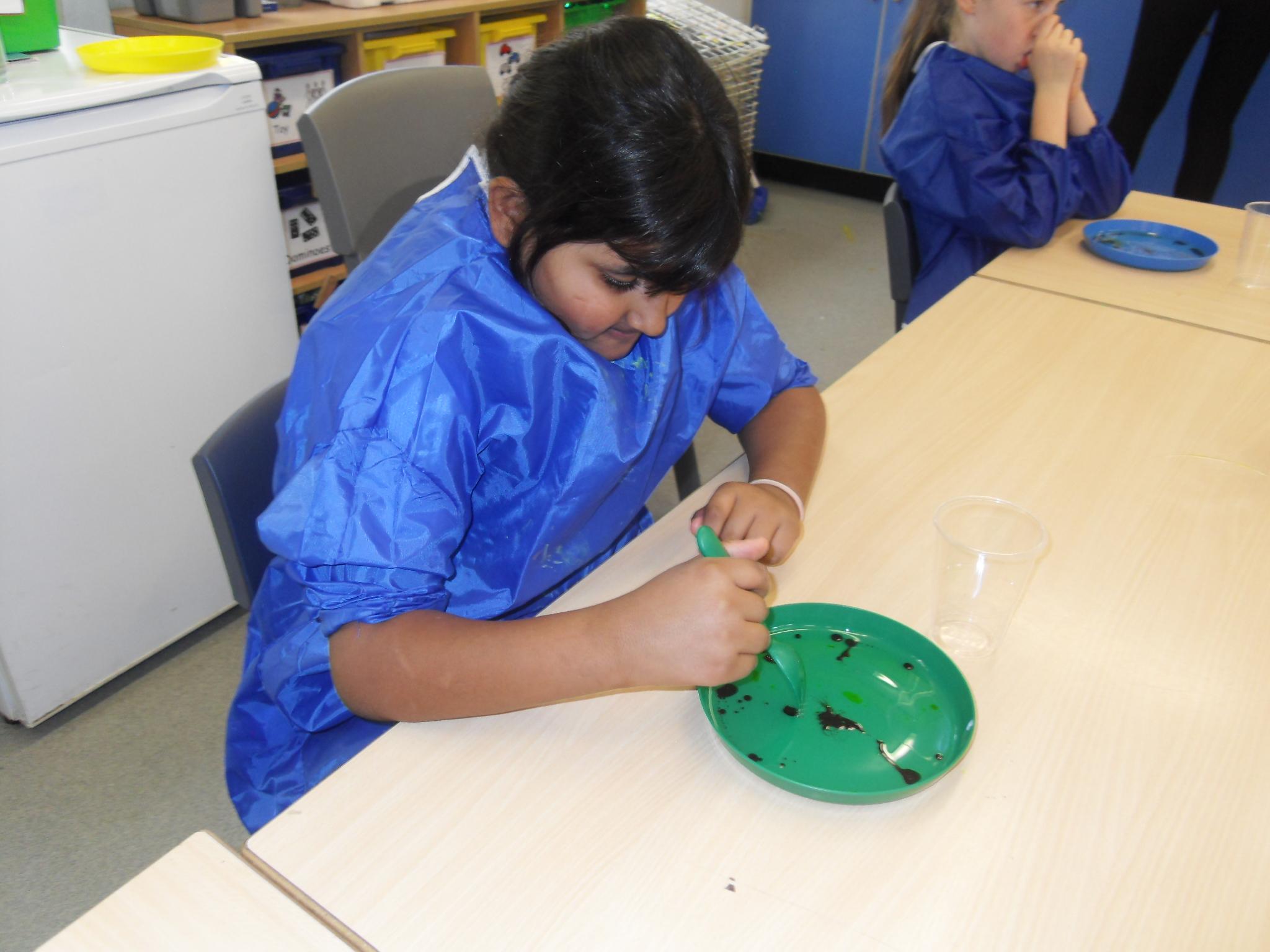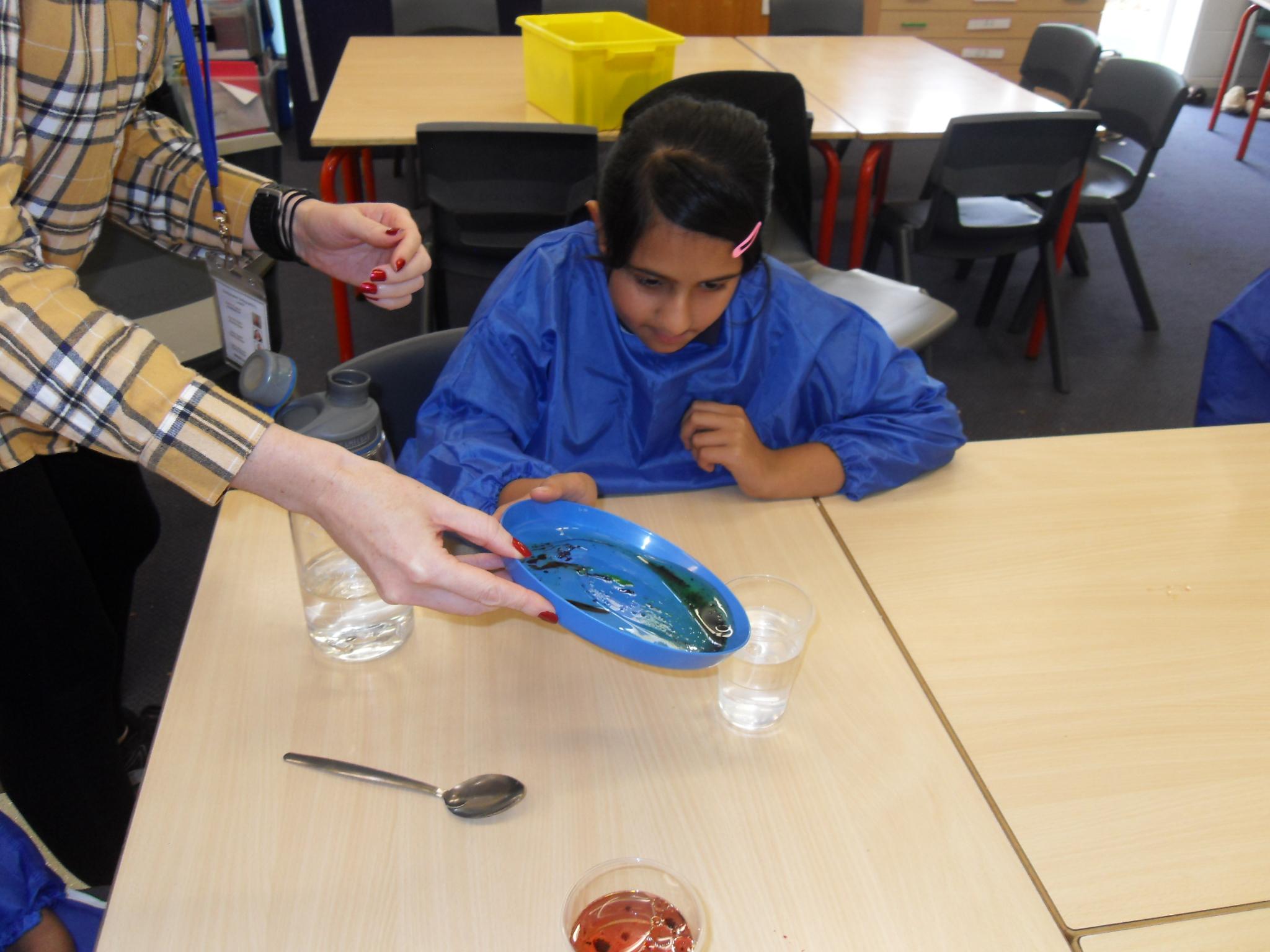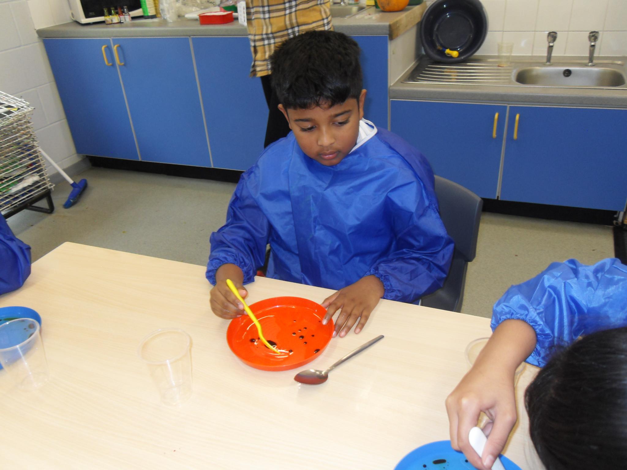 To link with fireworks night we had some fun in science making fireworks in a jar by mixing oil, food colouring and water.