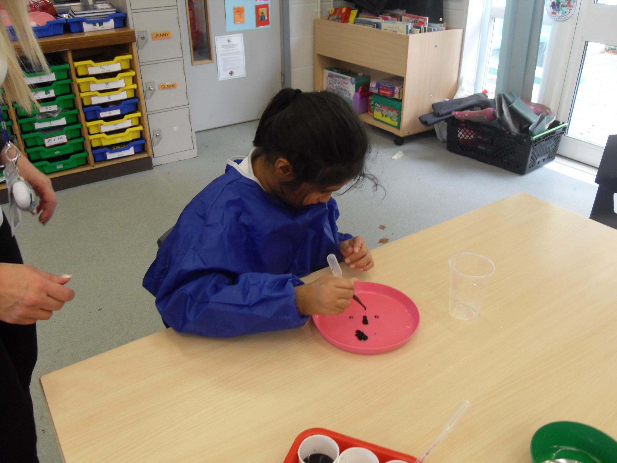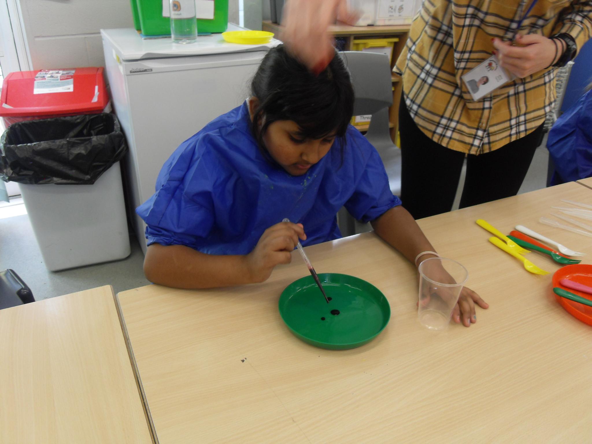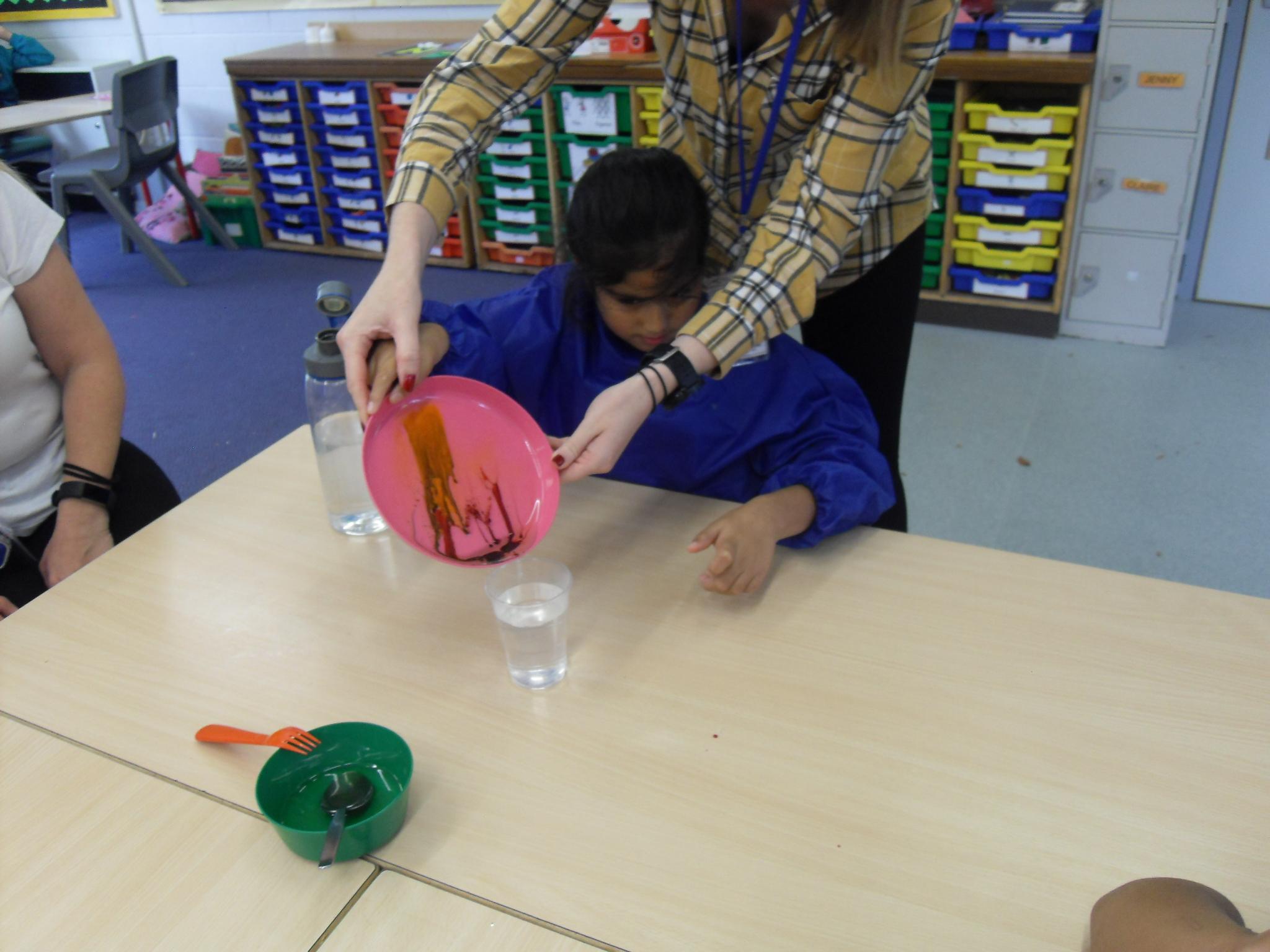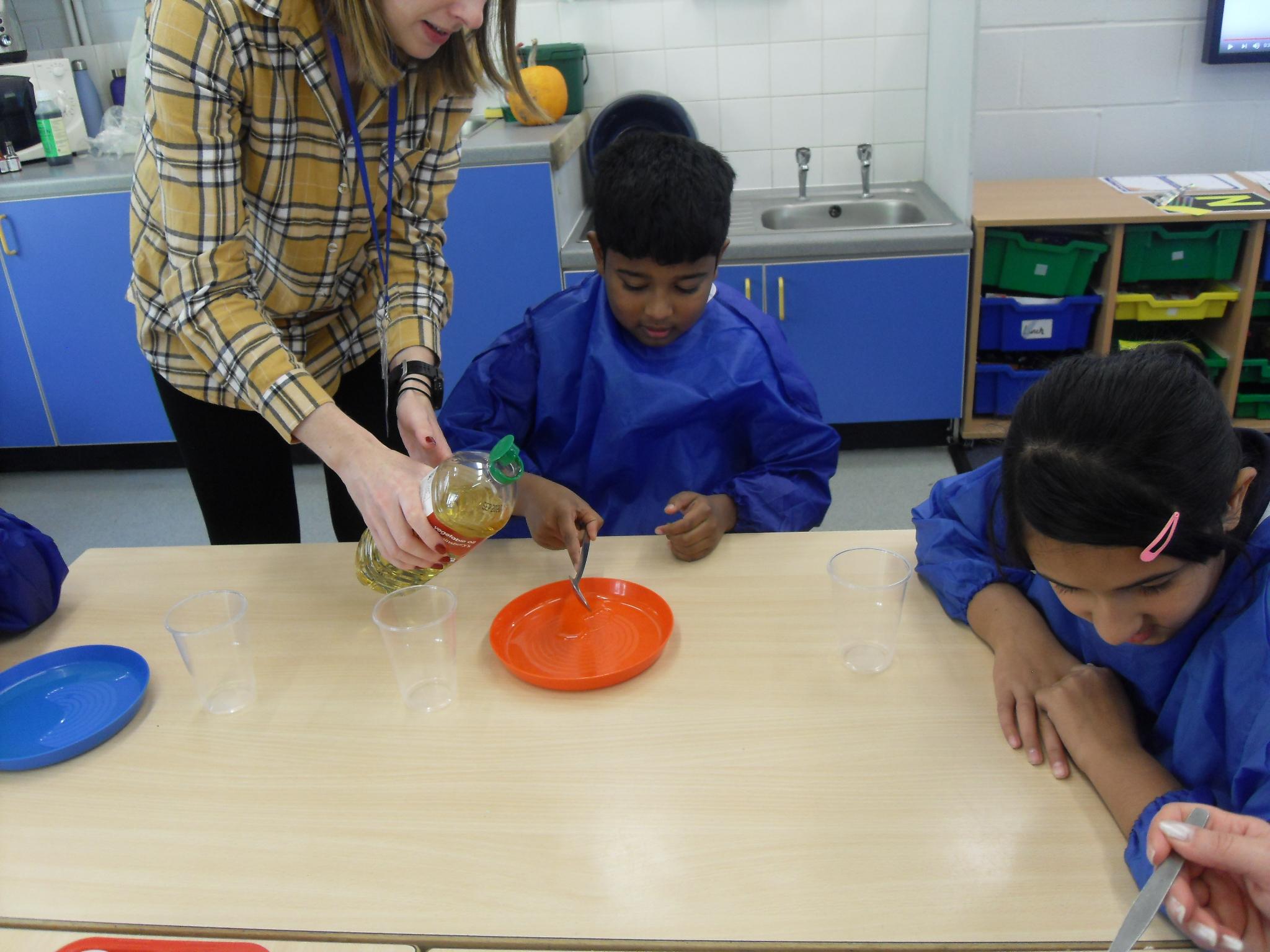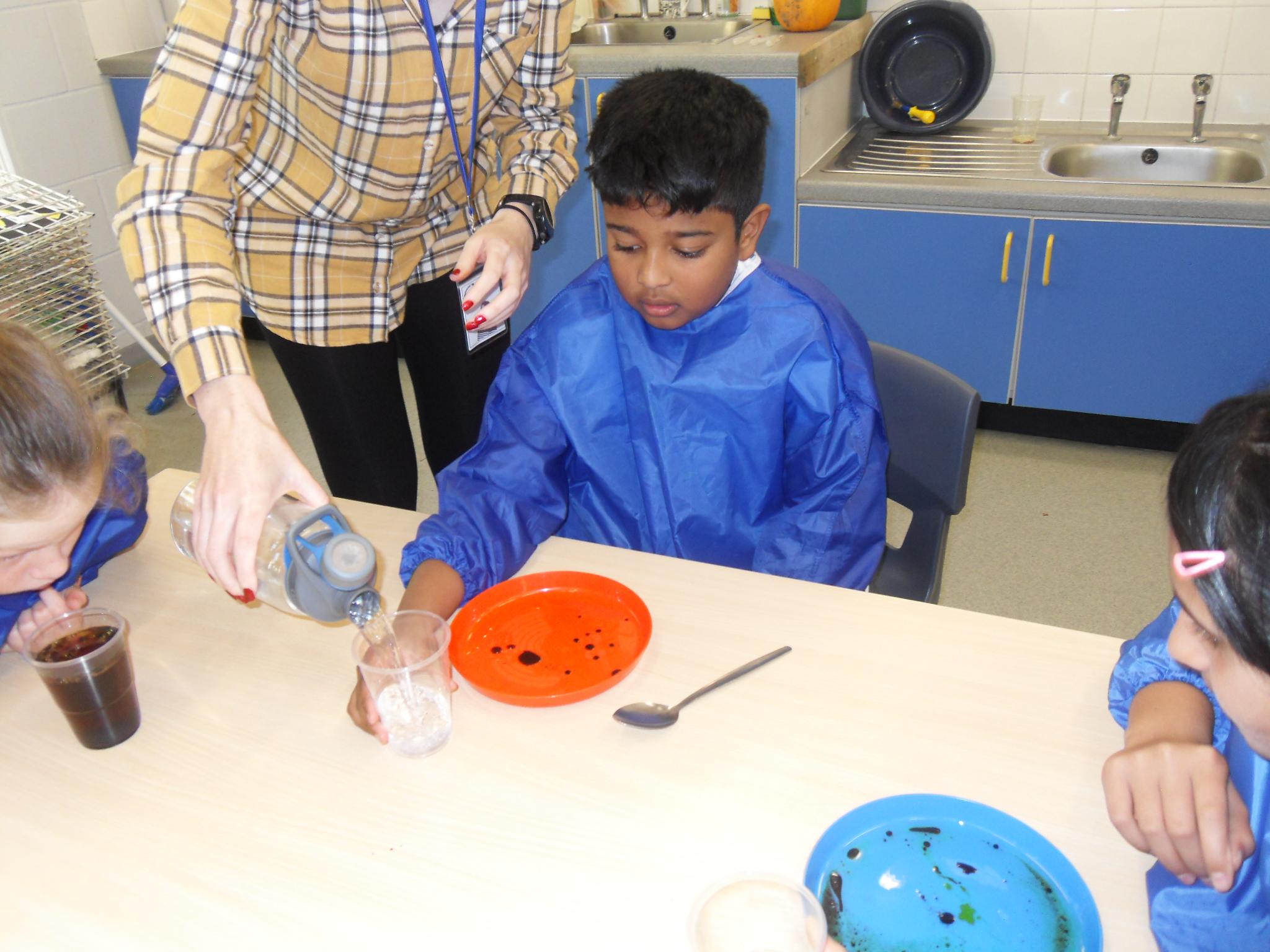 To link with fireworks night we had some fun in science making fireworks in a jar by mixing oil, food colouring and water.