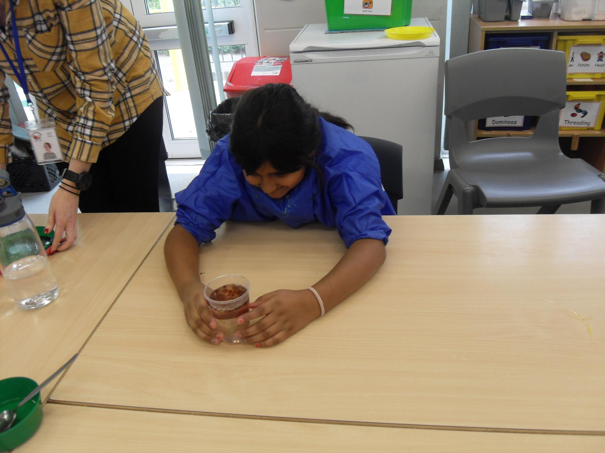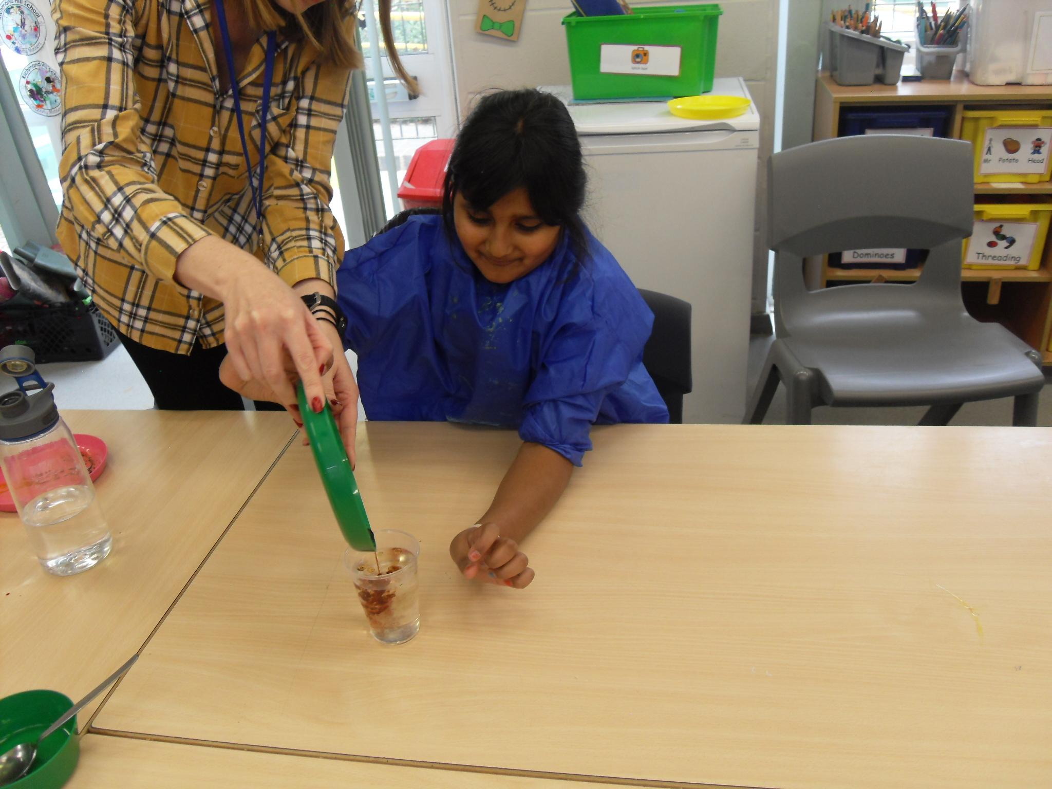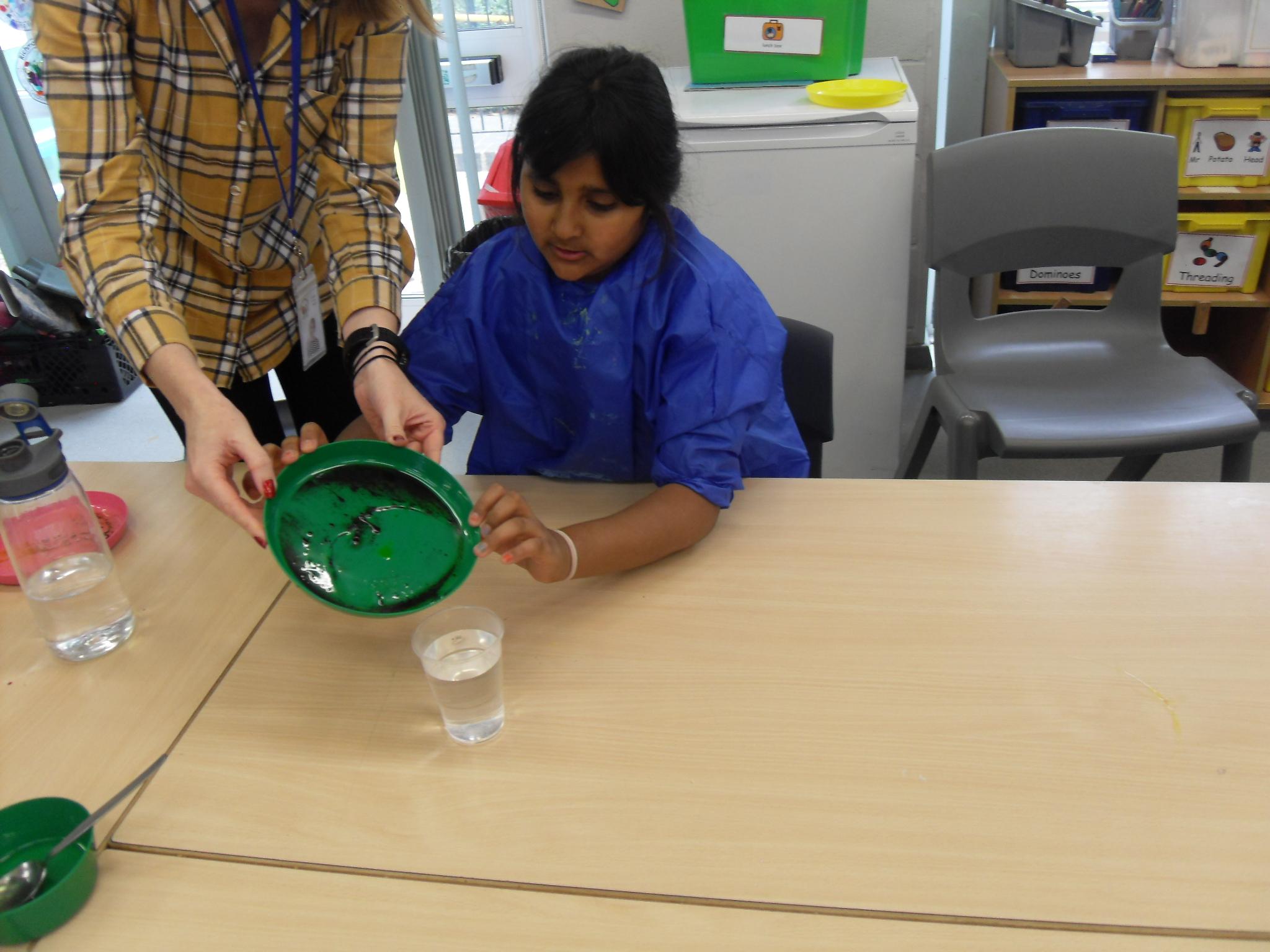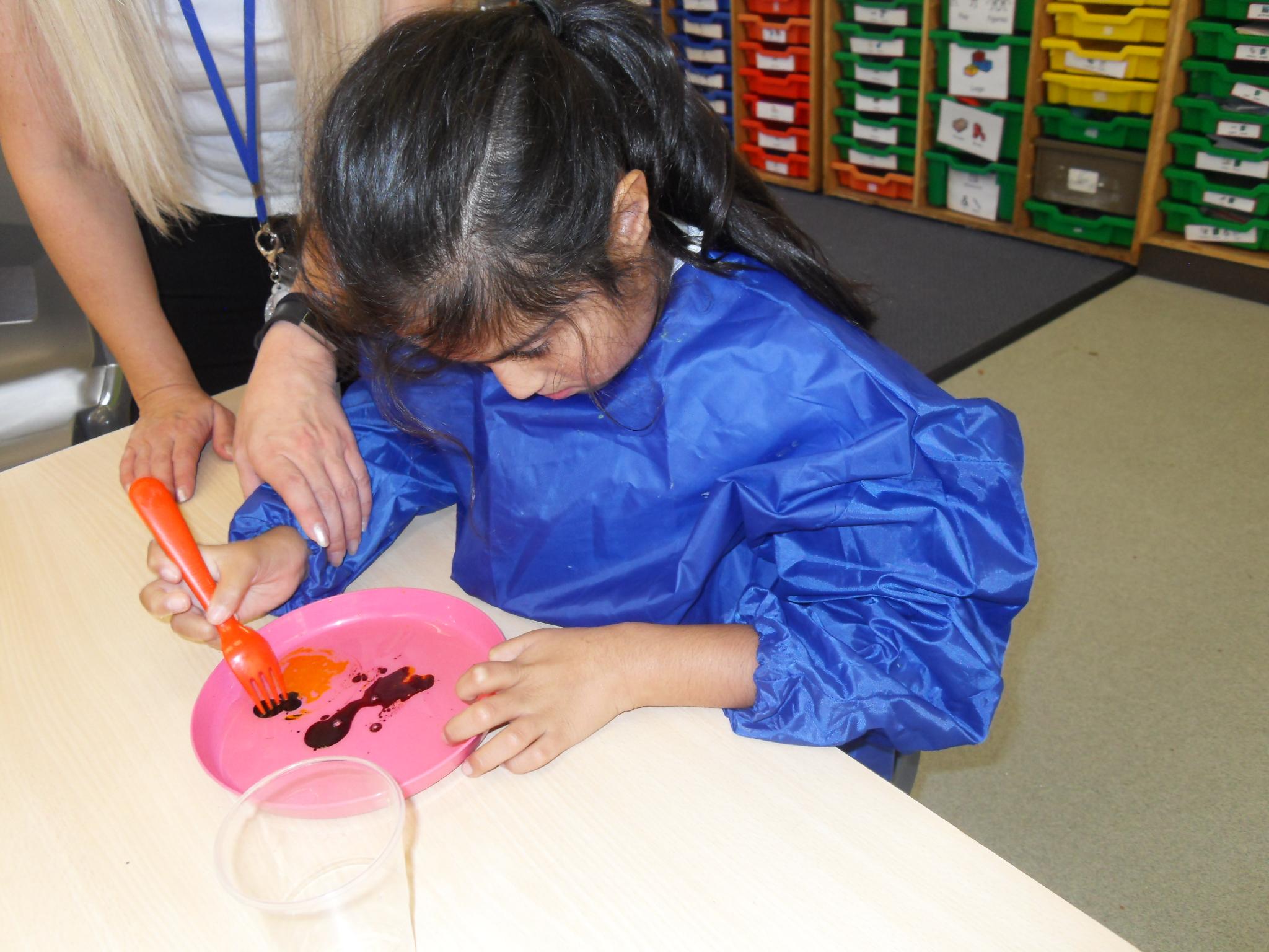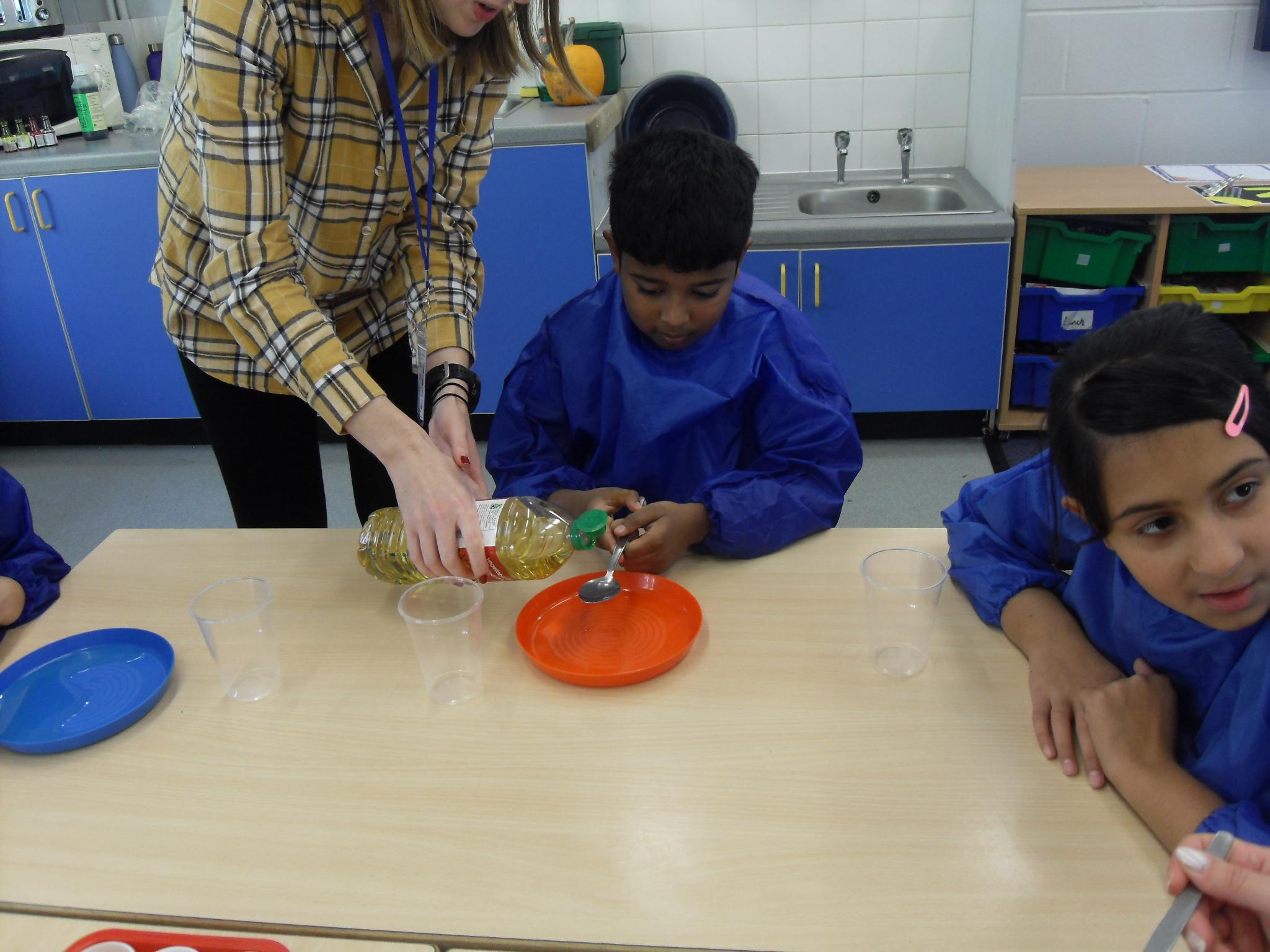 To link with fireworks night we had some fun in science making fireworks in a jar by mixing oil, food colouring and water.