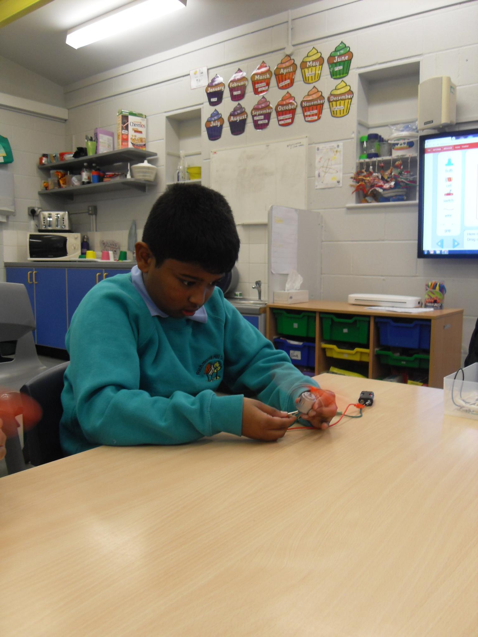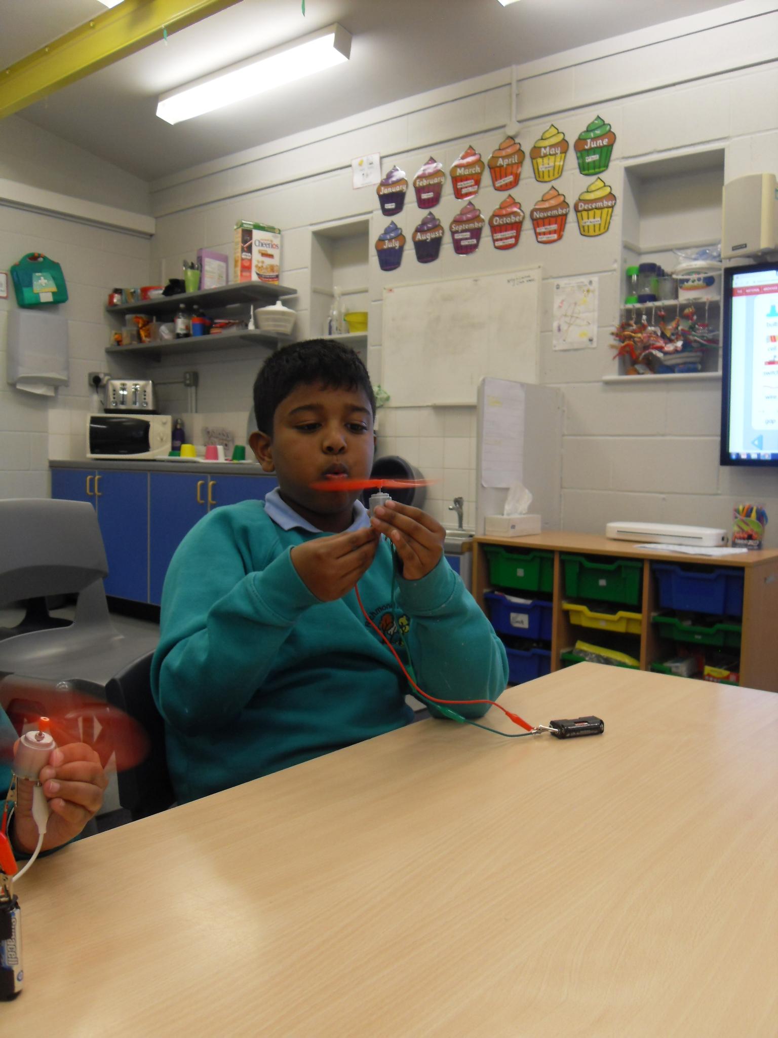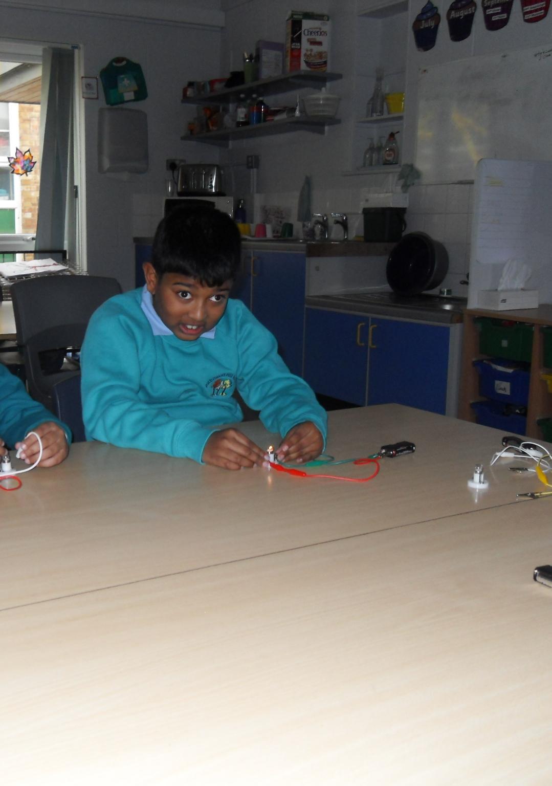In topic we explored light and built our own circuits with batteries, bulbs, wires, motors and buzzers.
