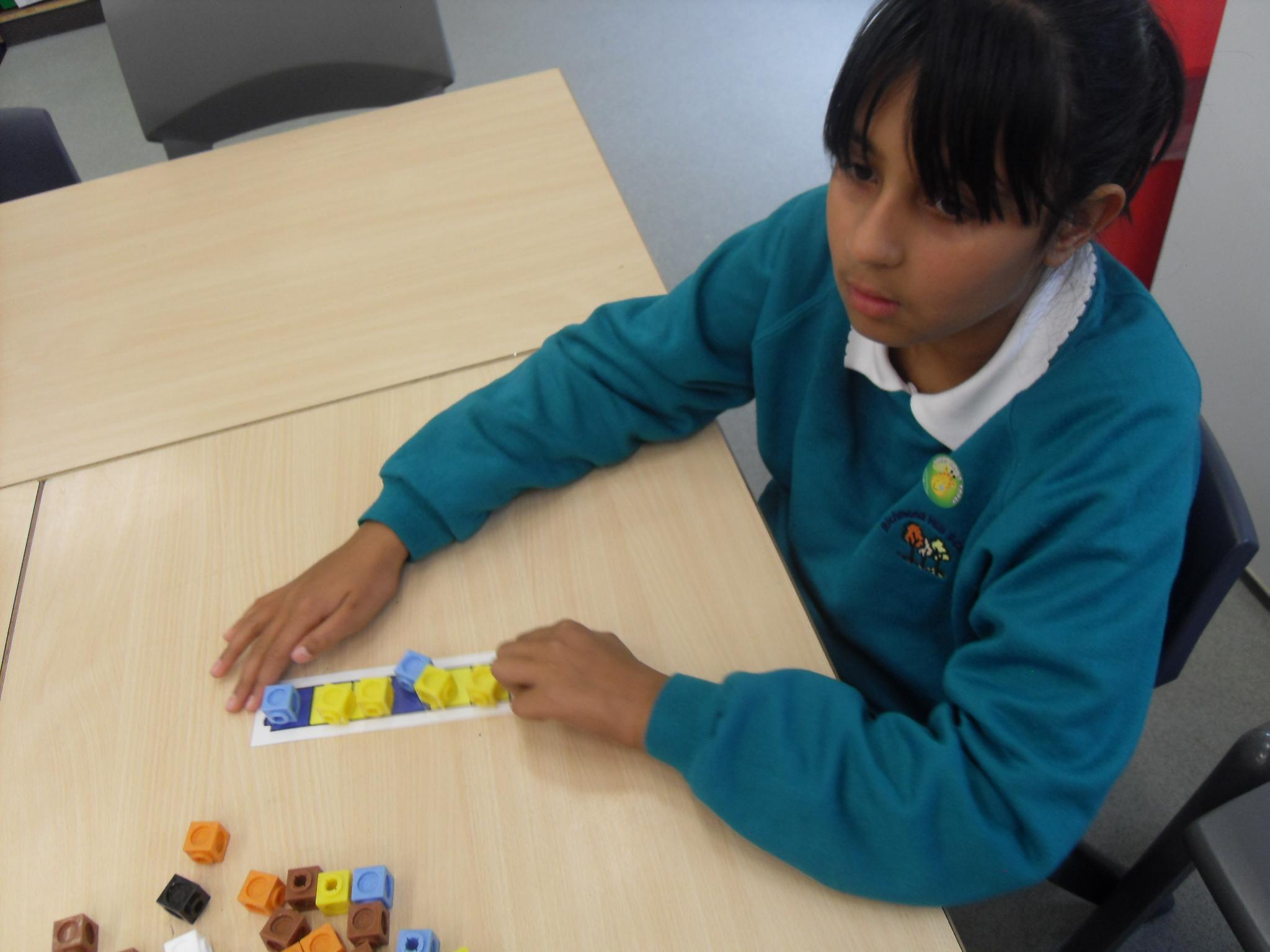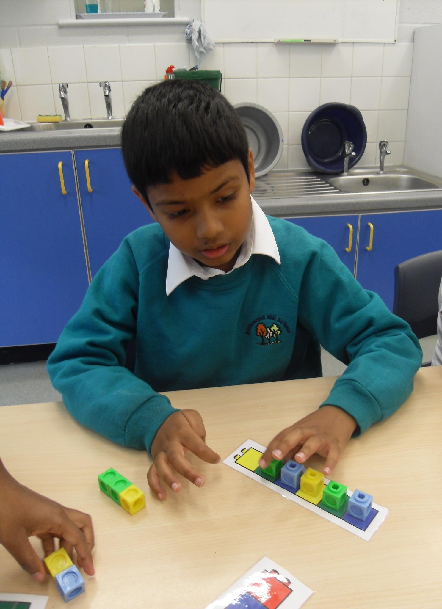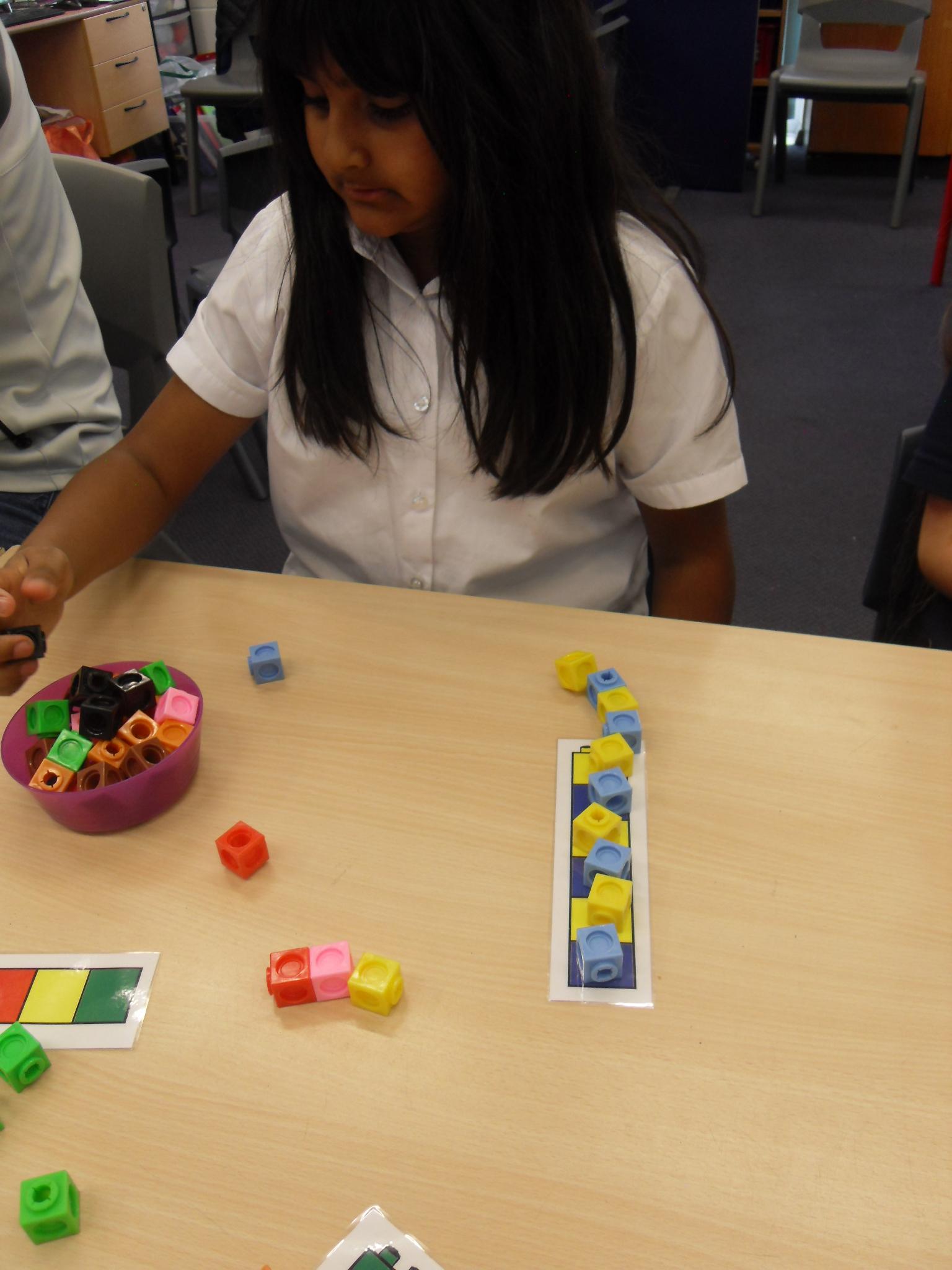 Some pictures of the children copying and carrying on colour patterns in maths.