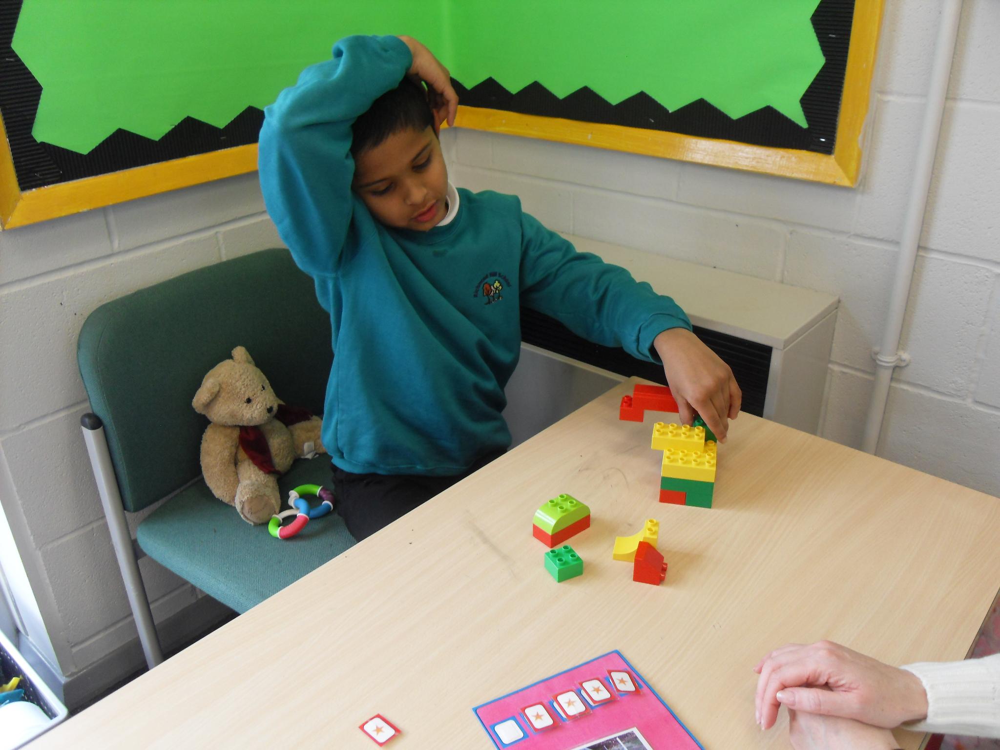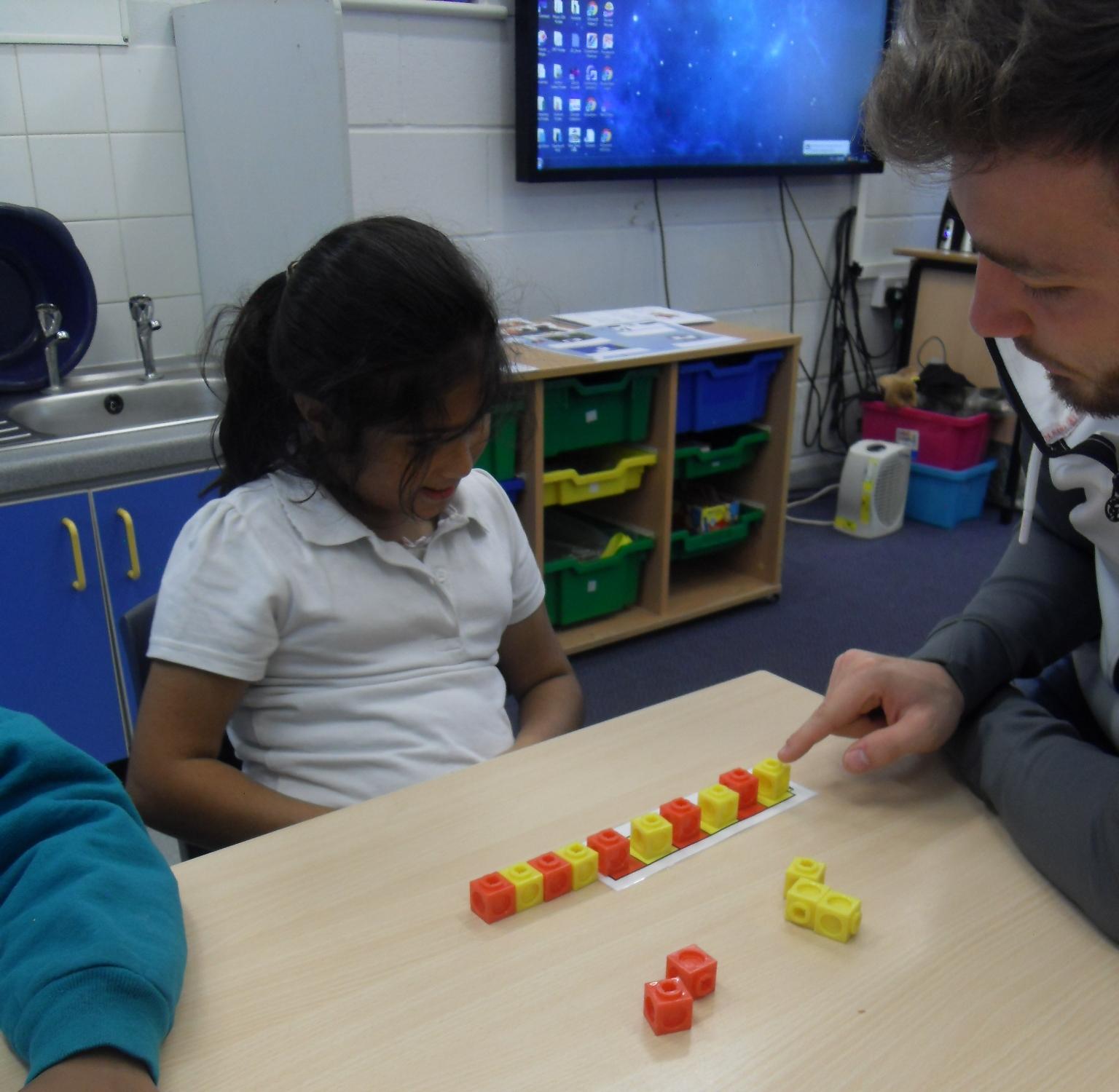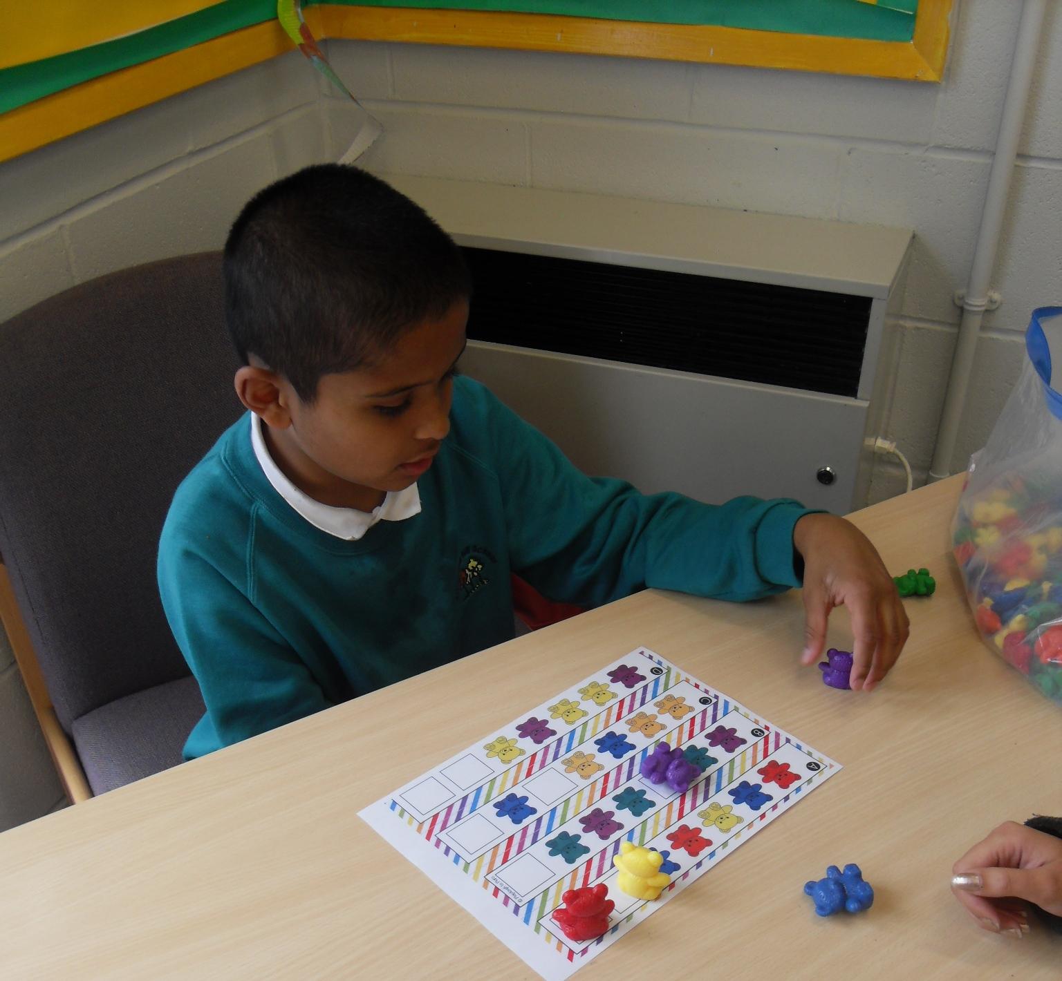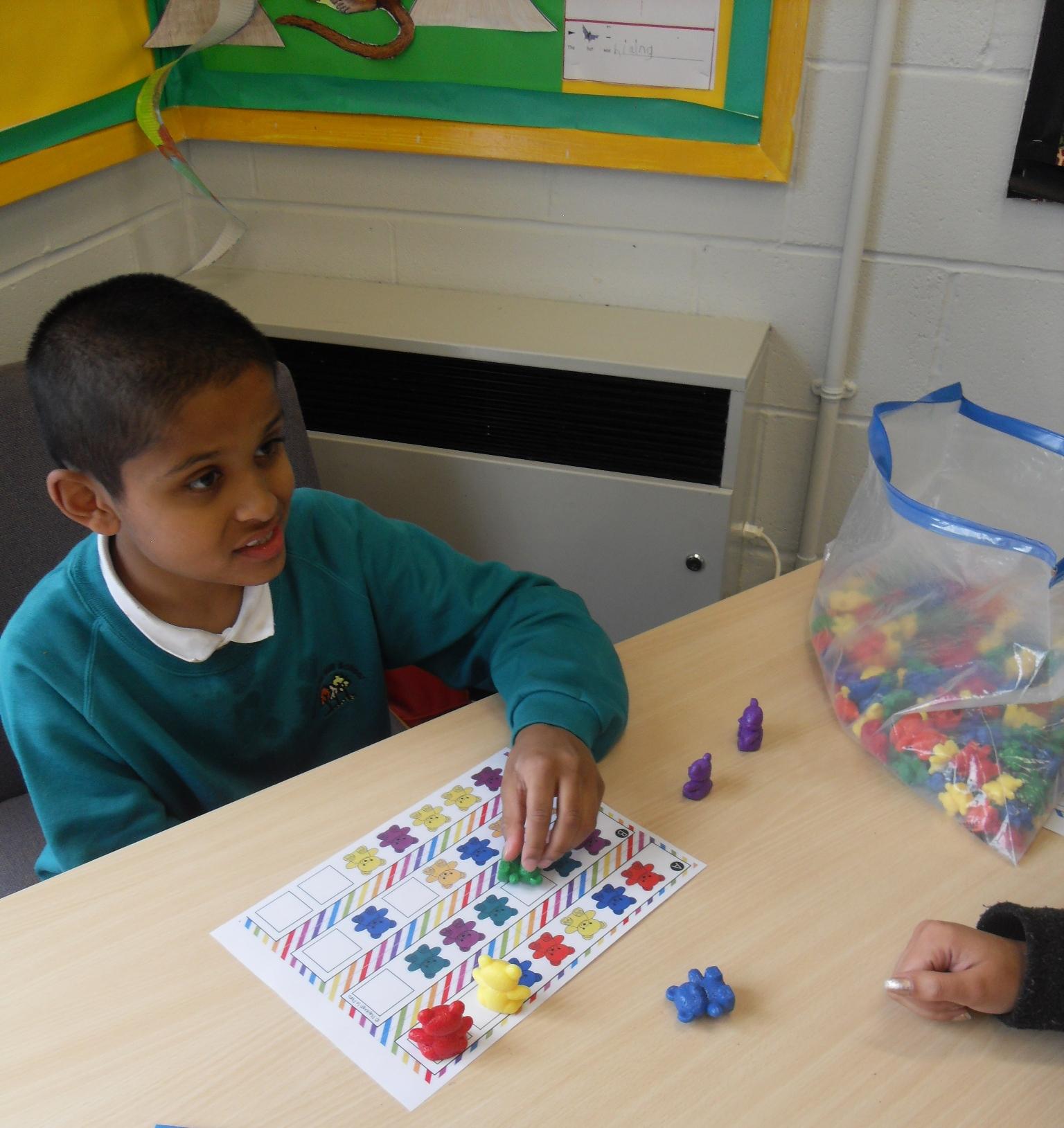 Some pictures of the children copying and carrying on colour patterns in maths.
