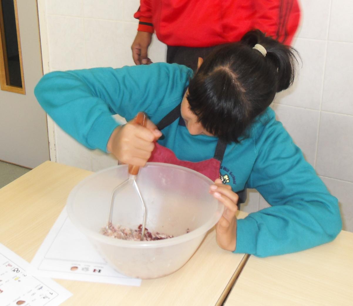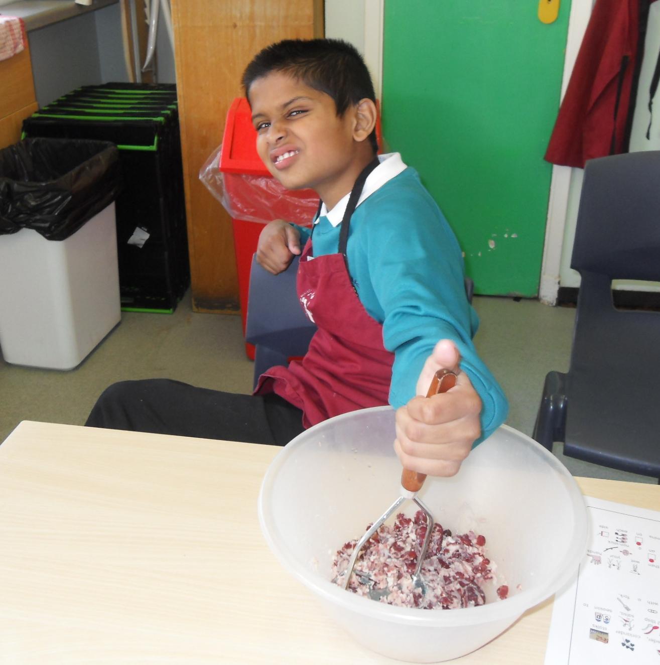 We’ve been making veggie burgers in cookery. The class have been practising their skills and have enjoyed trying what they make each week.