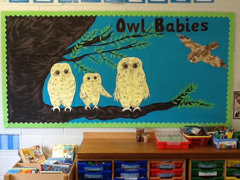 Our story this term is Owl Babies. We used cotton wool balls to paint the baby owls and used our hand prints to make the feathers for the mother owl.