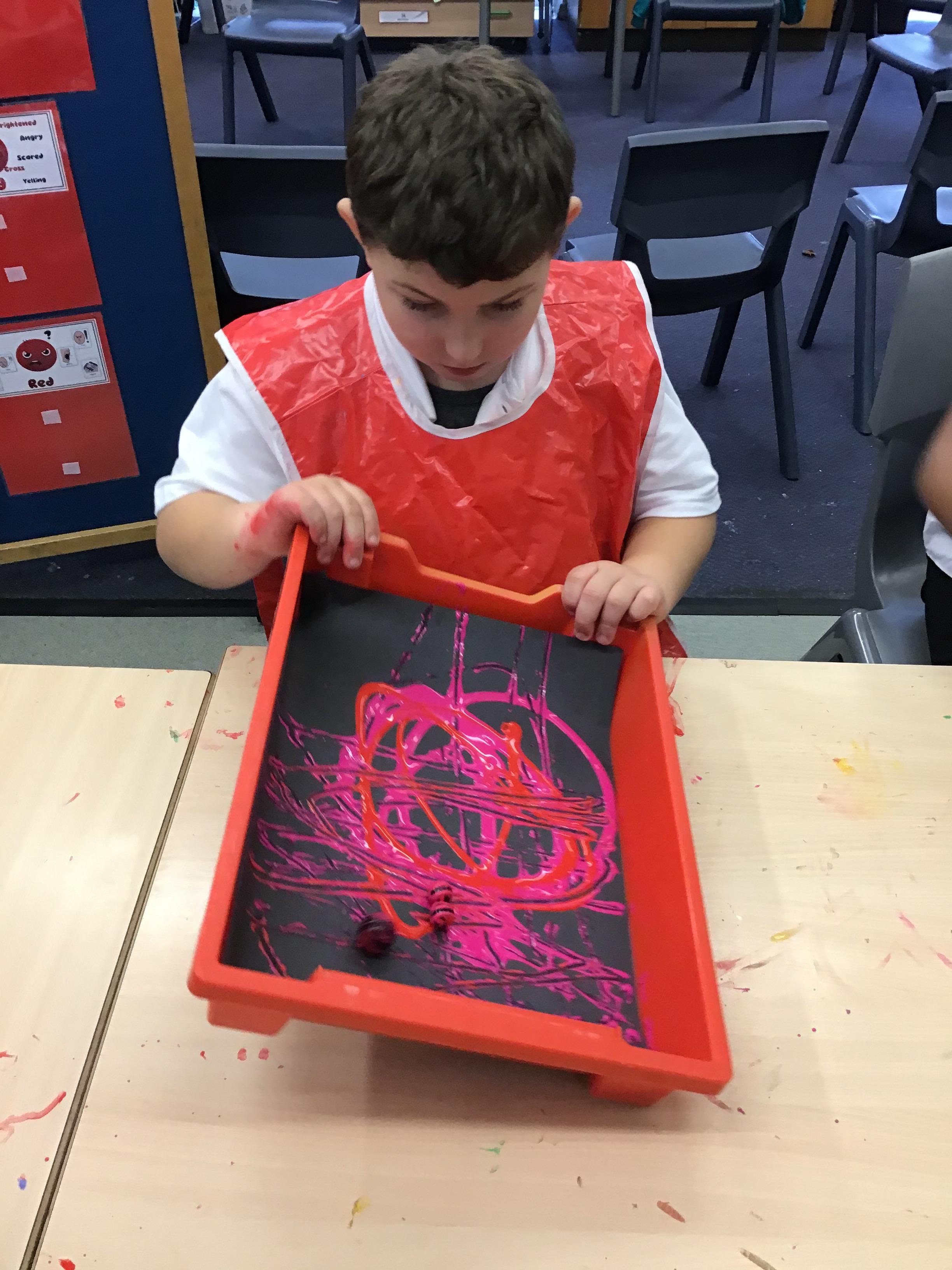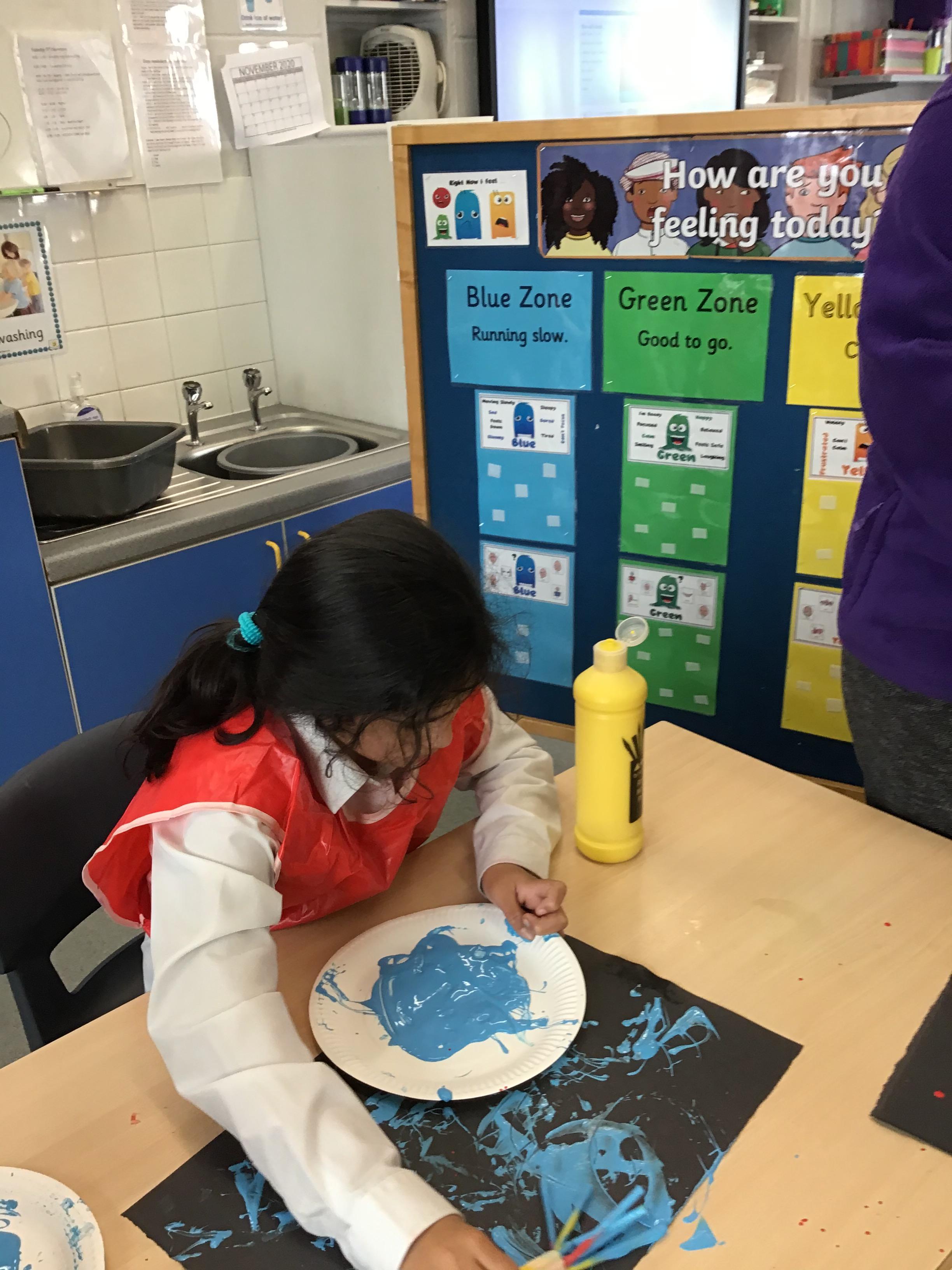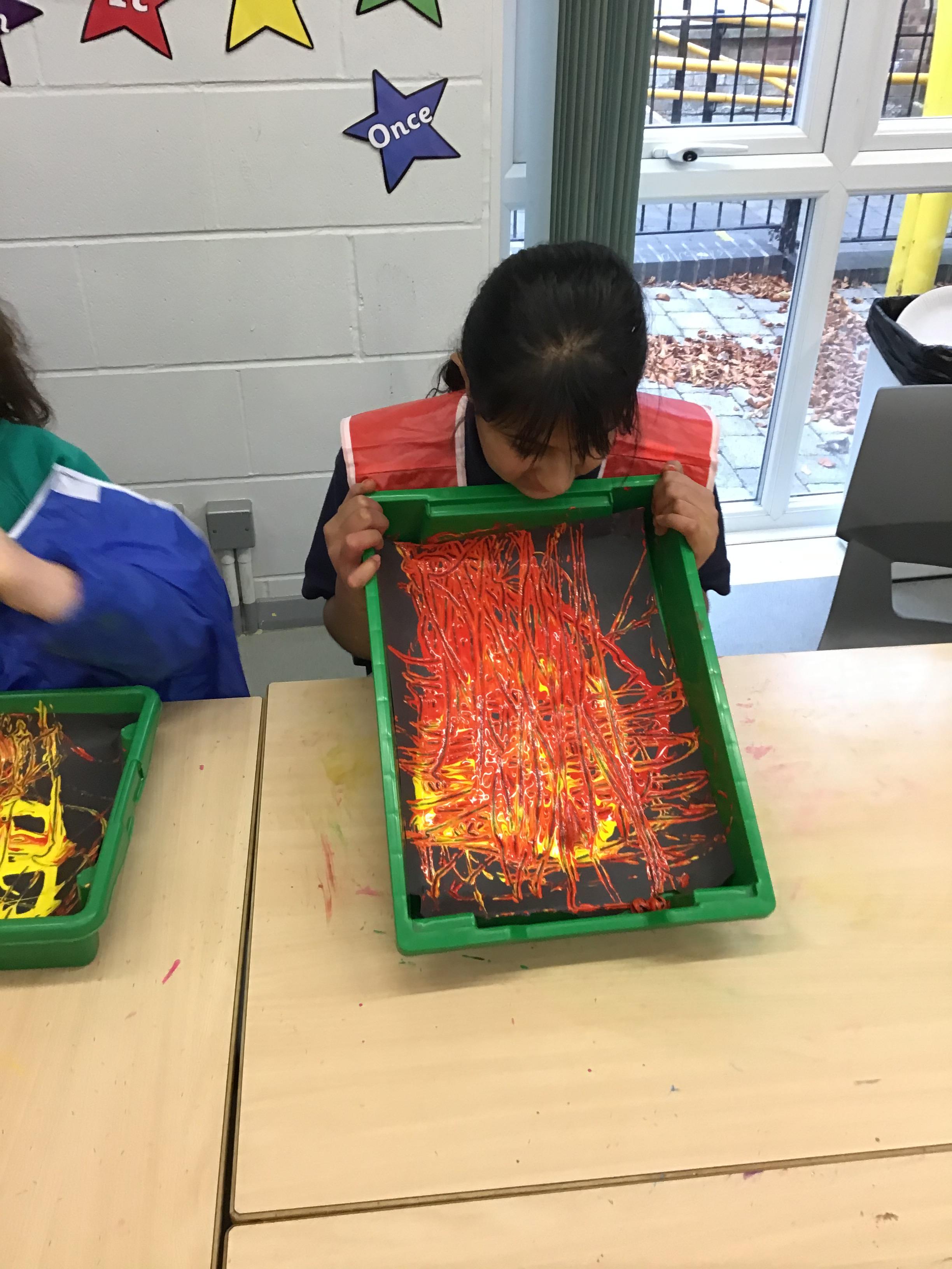 The children painted some lovely pictures with water colours. They were very careful not to mix the different colour paints and to keep the within the lines. The finished paintings were so good they were put up on the classroom window so passing children and staff could see!