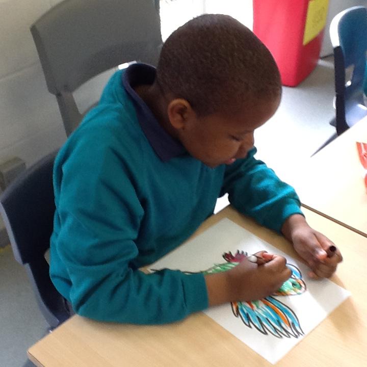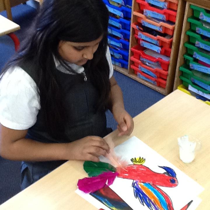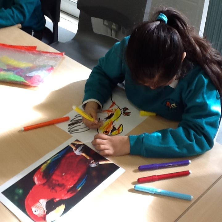We made colourful parrots to add to the display in our classroom.