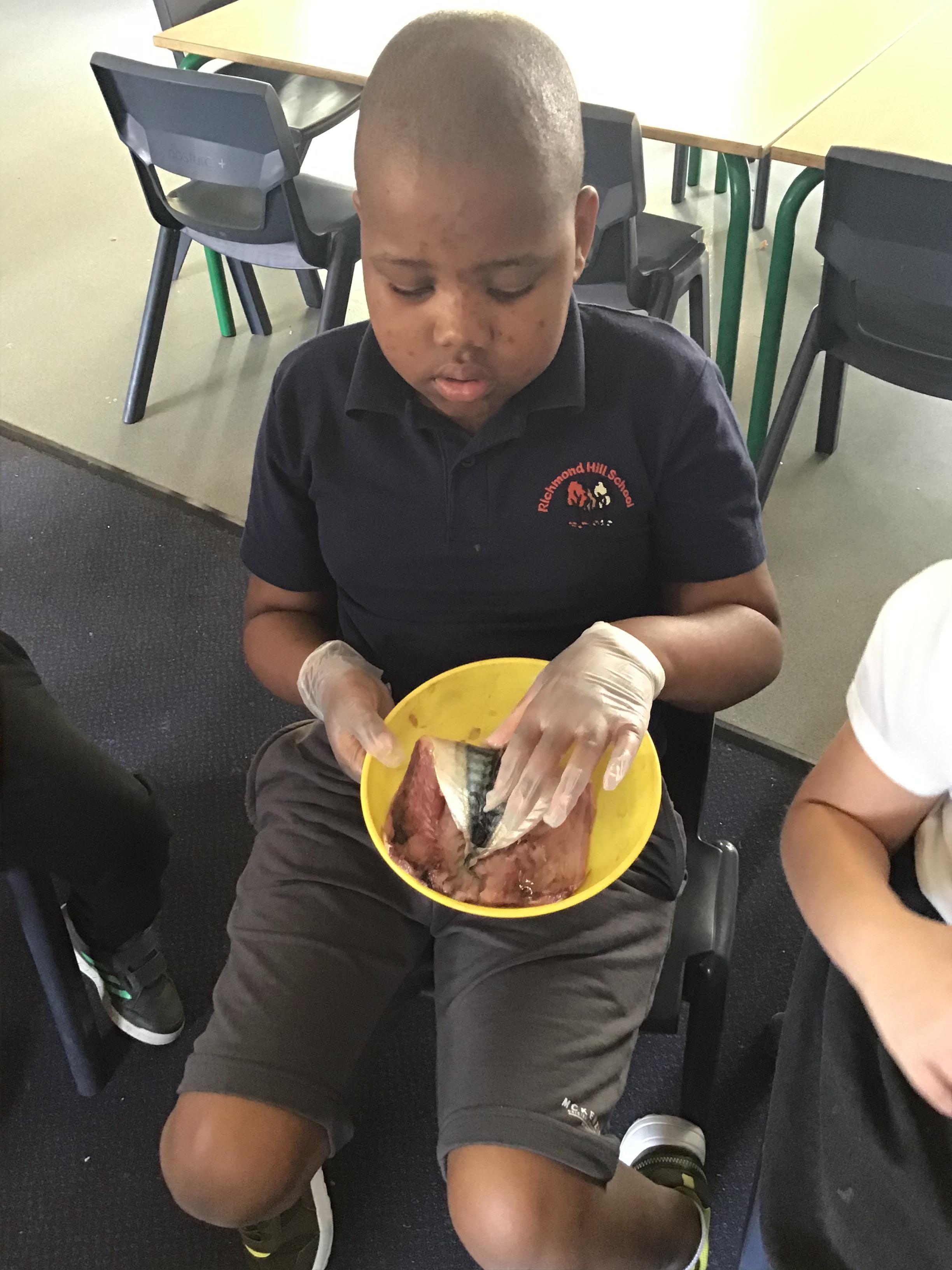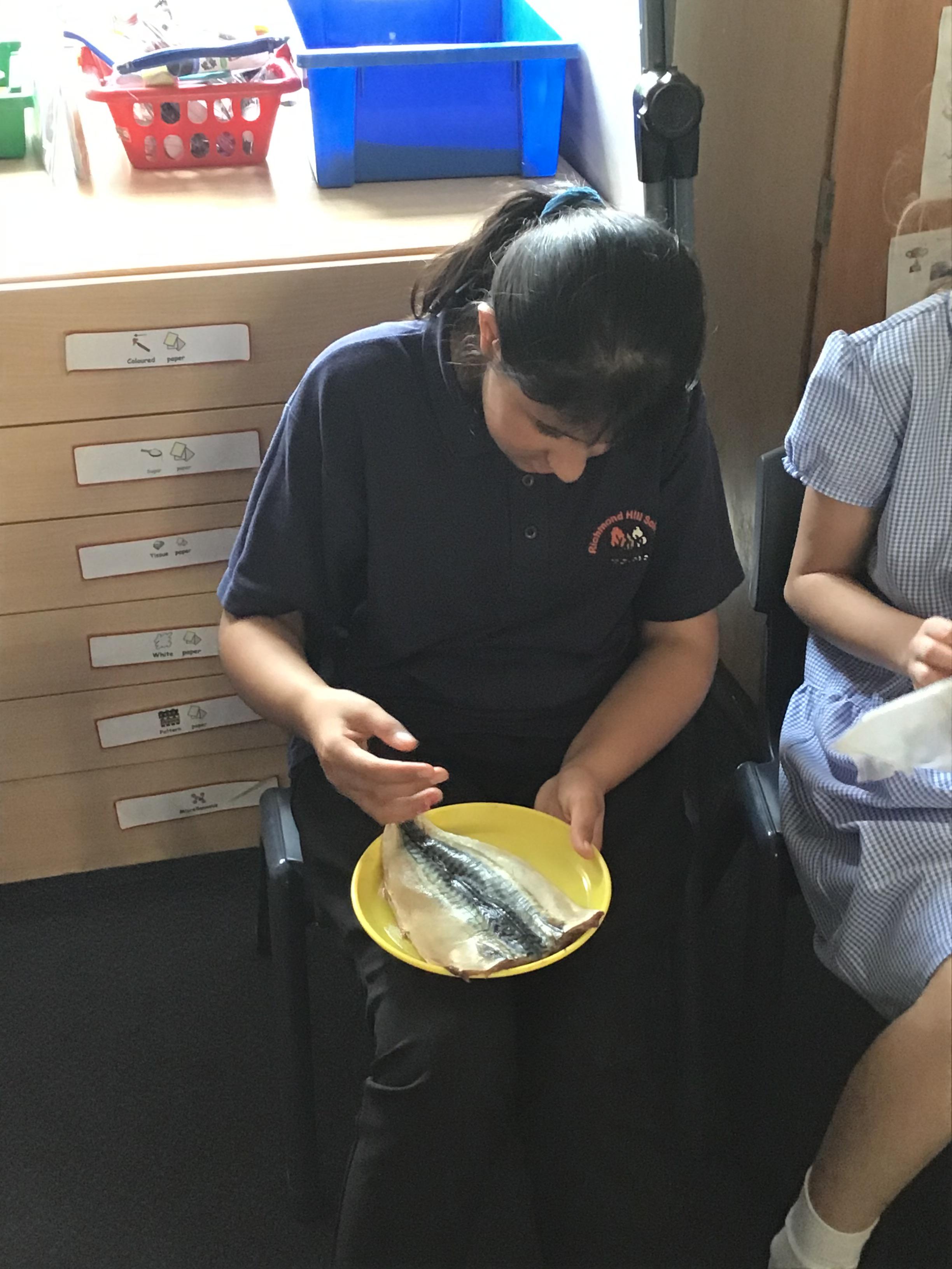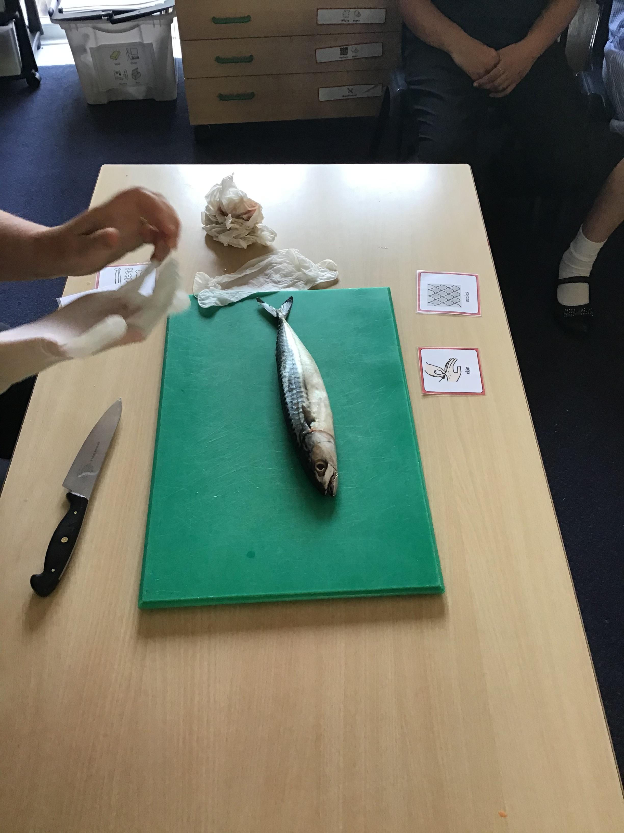 We had fun in Science today. As part of us learning about ourselves, we looked at a fish and discovered it is similar to us, it has skin, bones and blood. The children all were very interested in looking and investigating the fish as you can see from our photos.