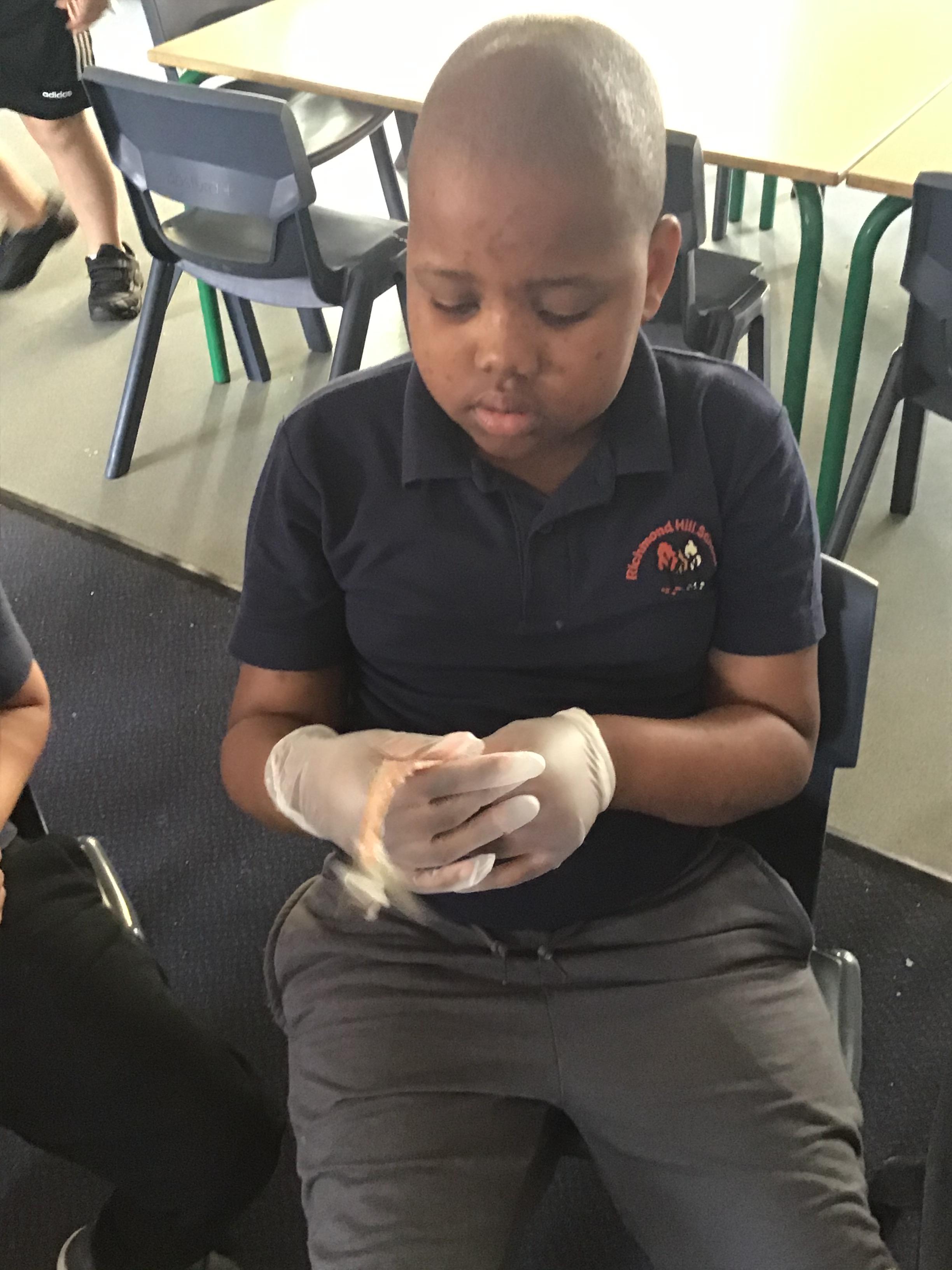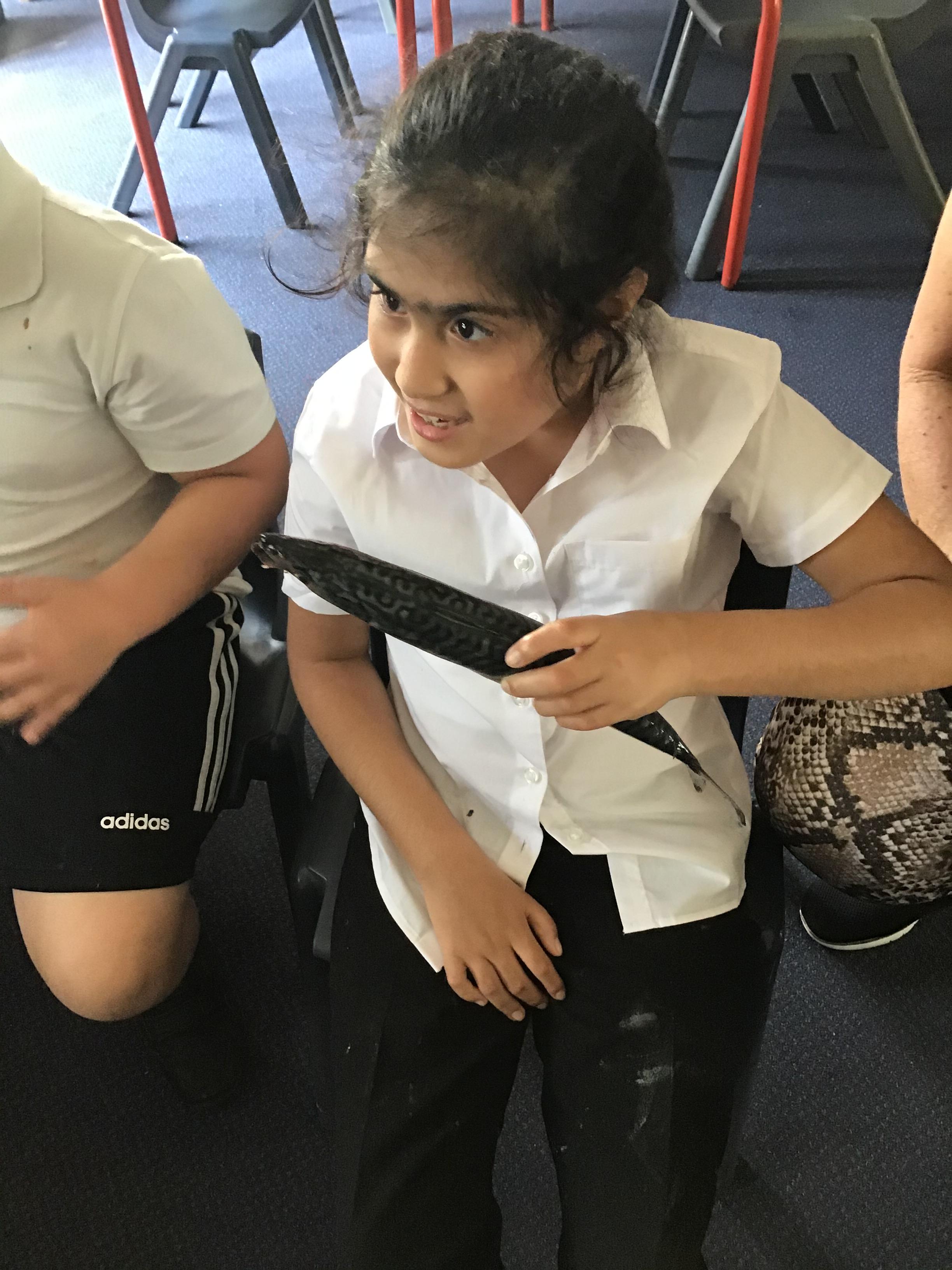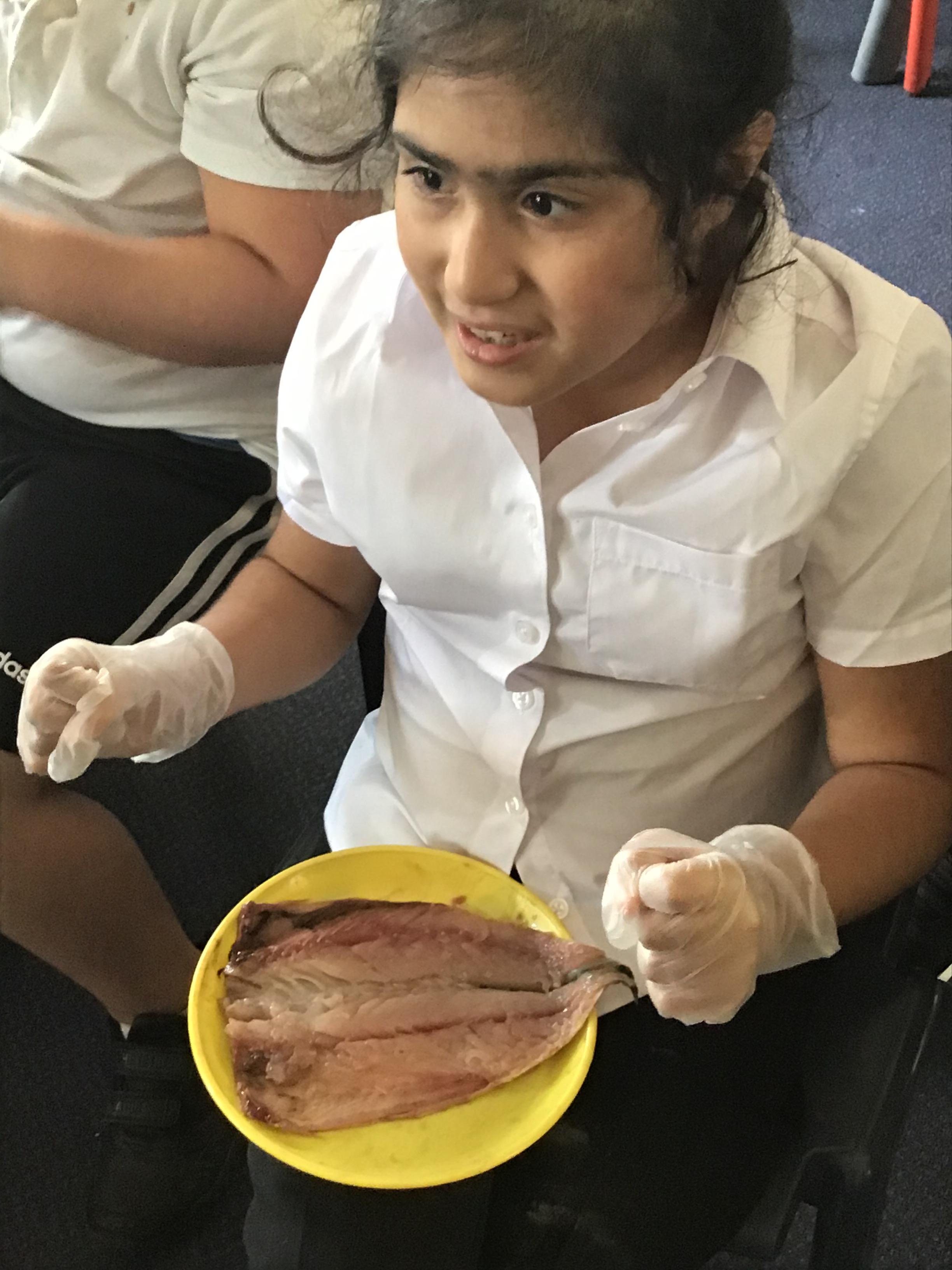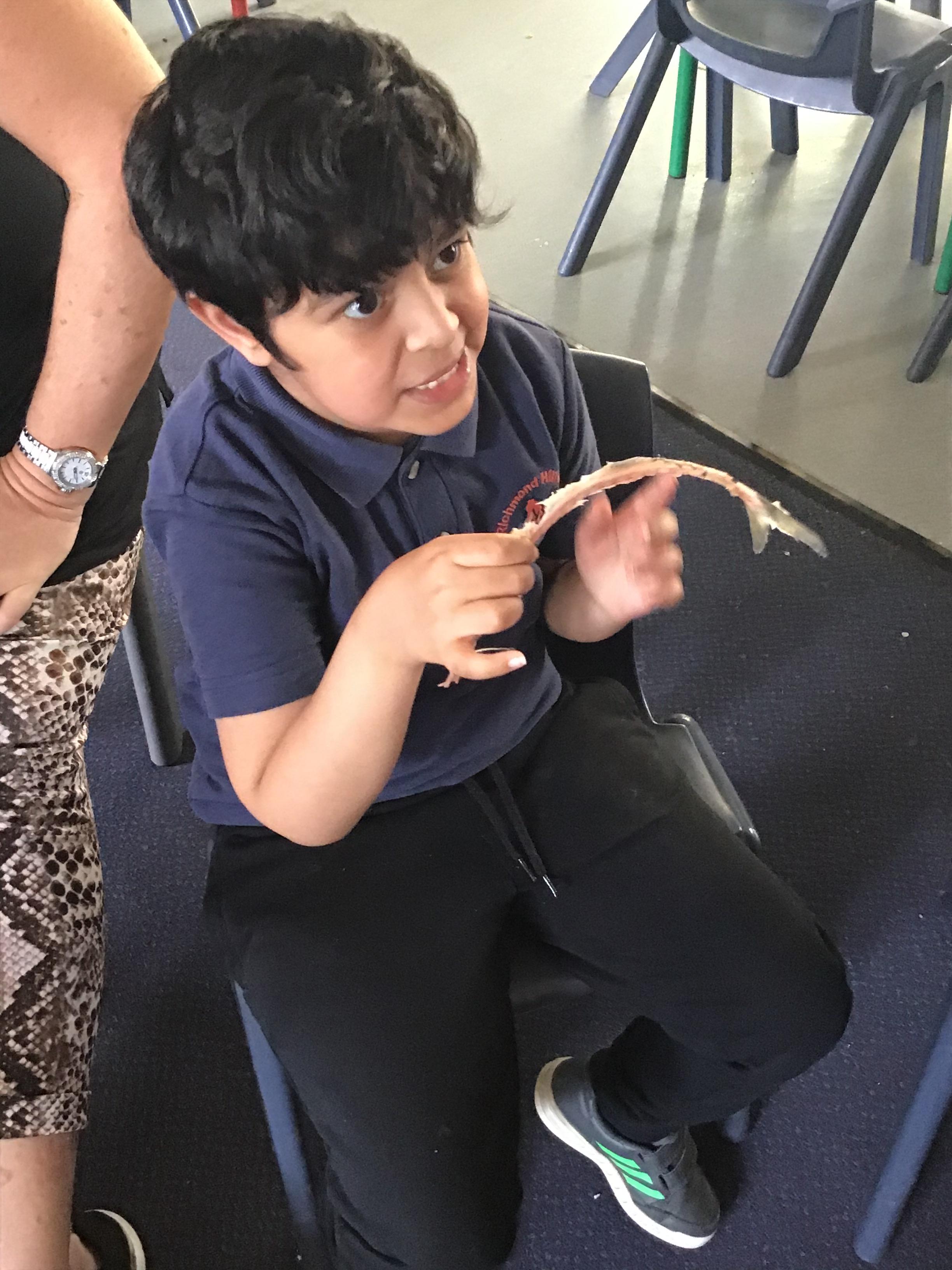 We had fun in Science today. As part of us learning about ourselves, we looked at a fish and discovered it is similar to us, it has skin, bones and blood. The children all were very interested in looking and investigating the fish as you can see from our photos.