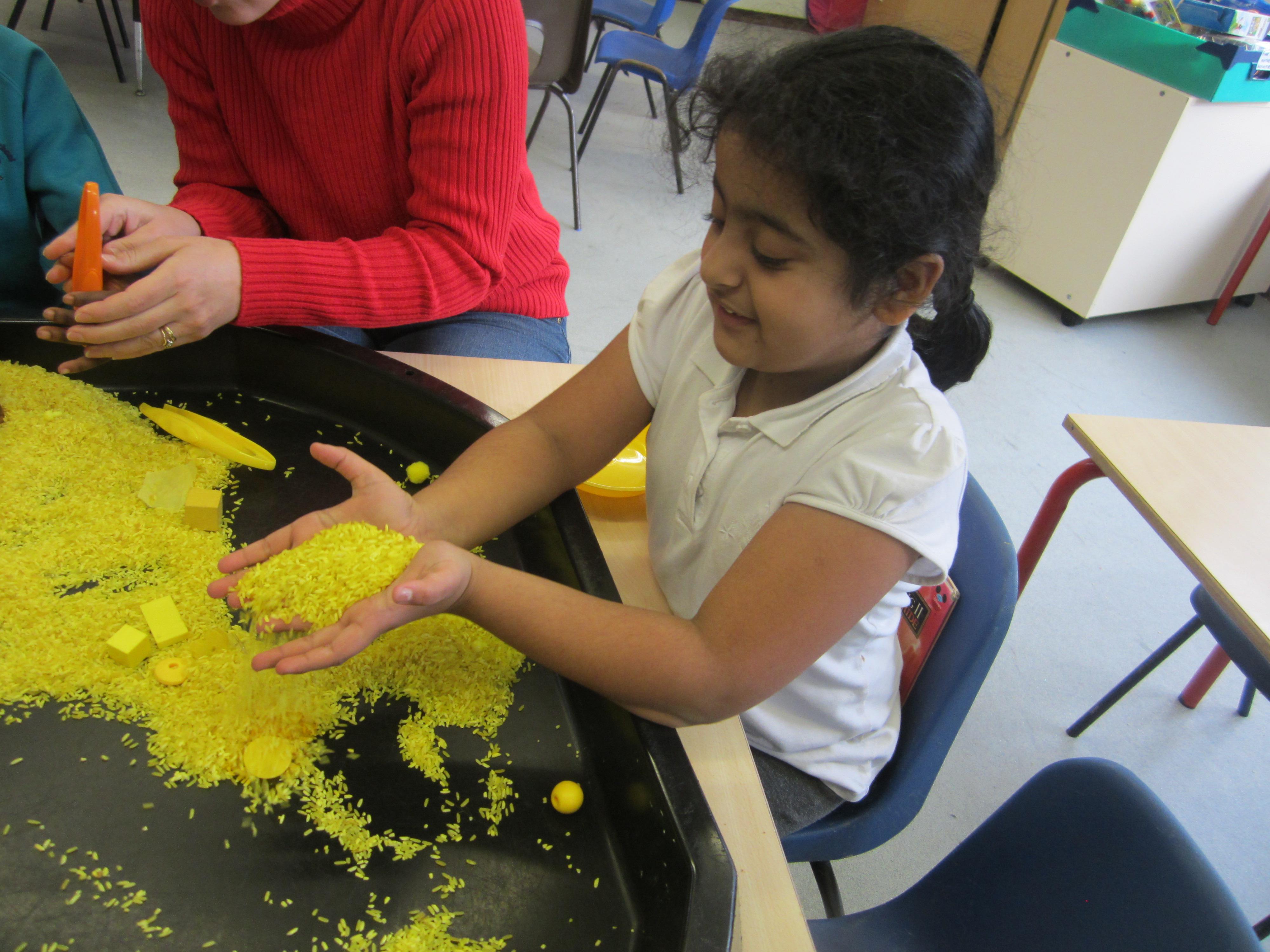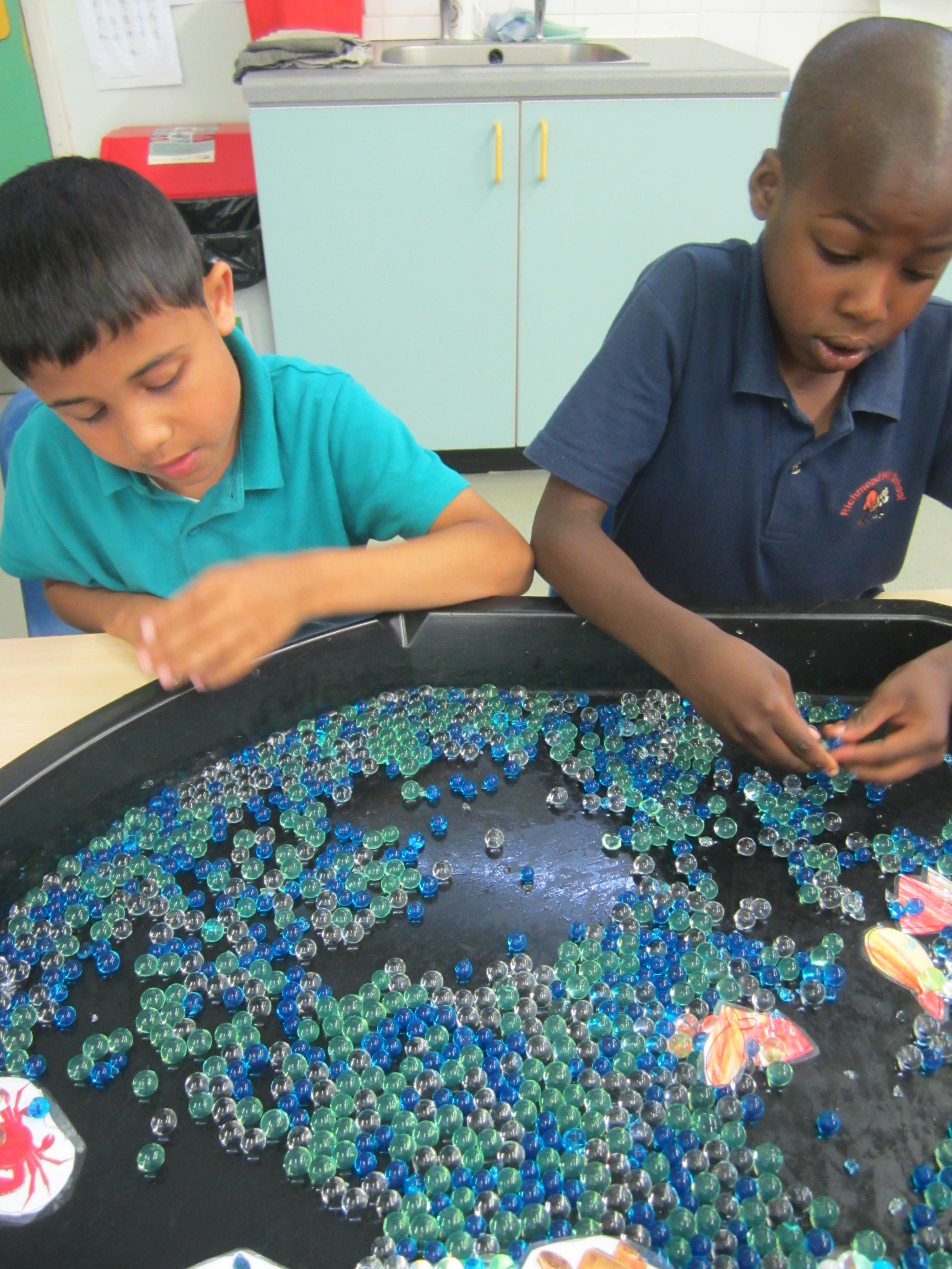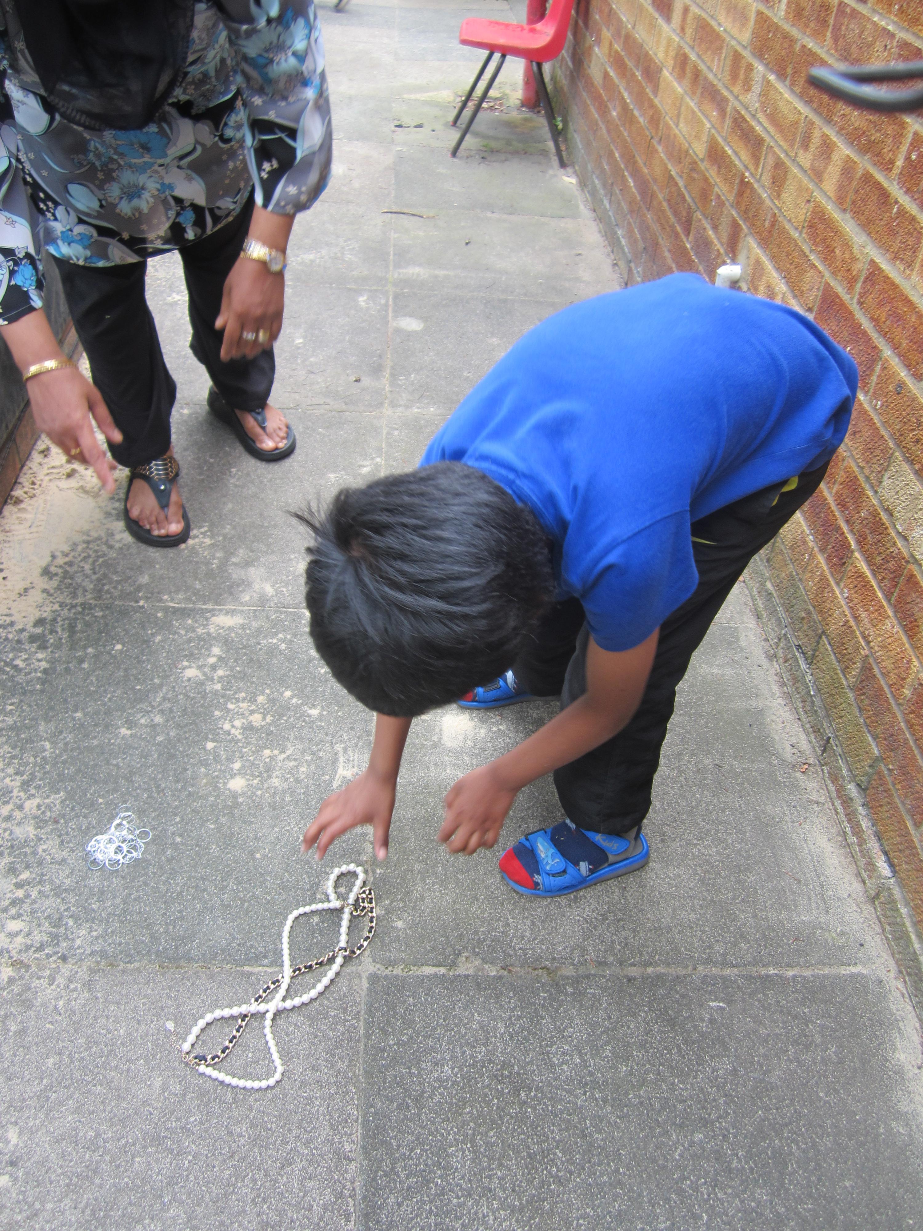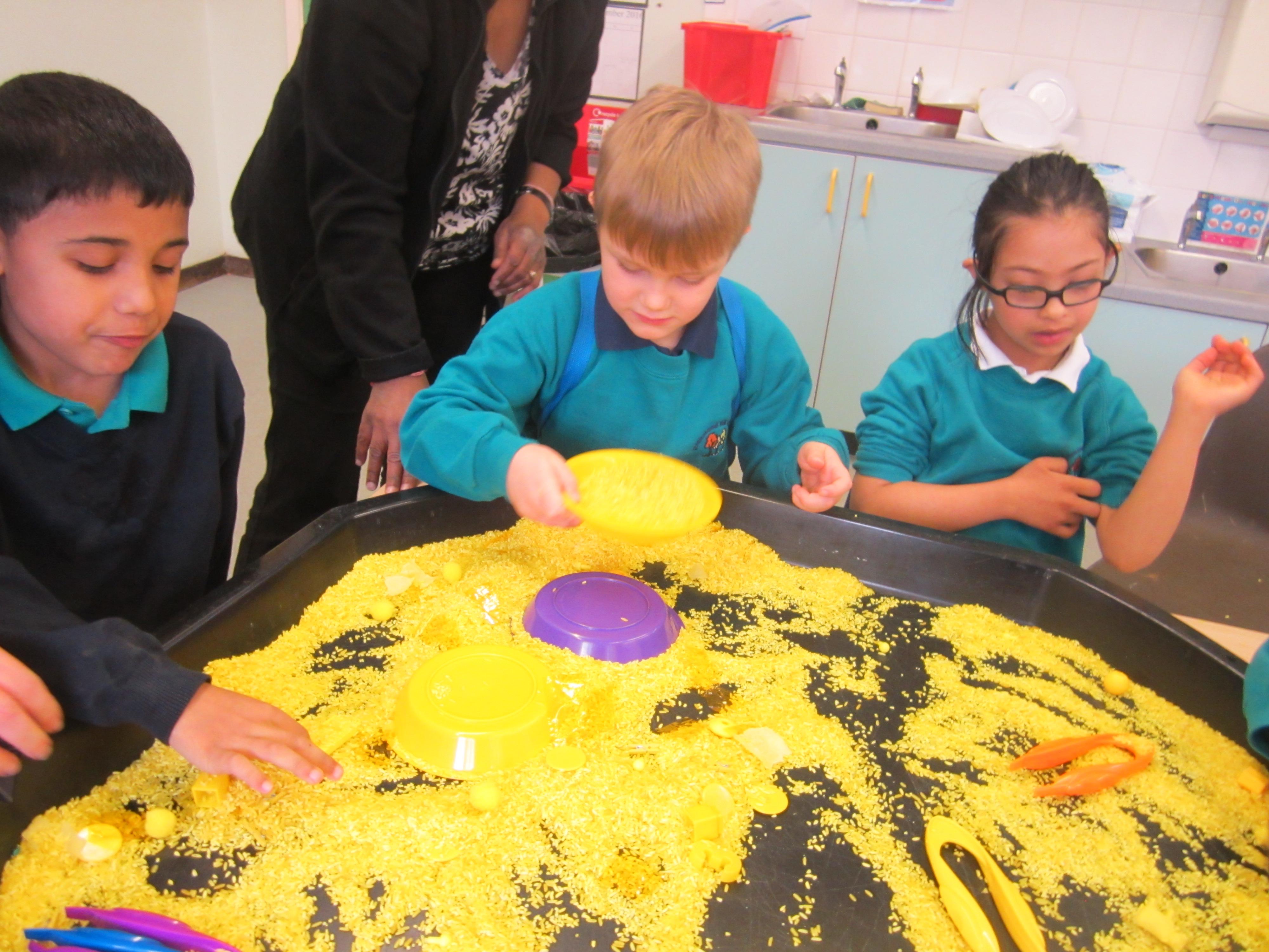 After making our egg box treasure chests, we went on a treasure hunt! The children found all sorts of jewellery hidden in the area outside the classroom, and lots of rings and tiny jewels in our sand tray. They really enjoyed filling up their treasure chests with their finds!